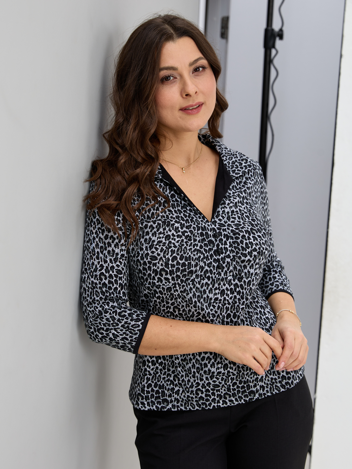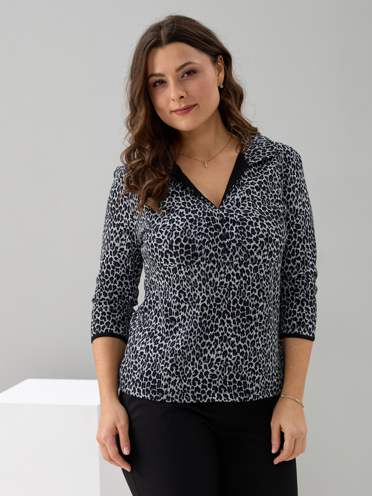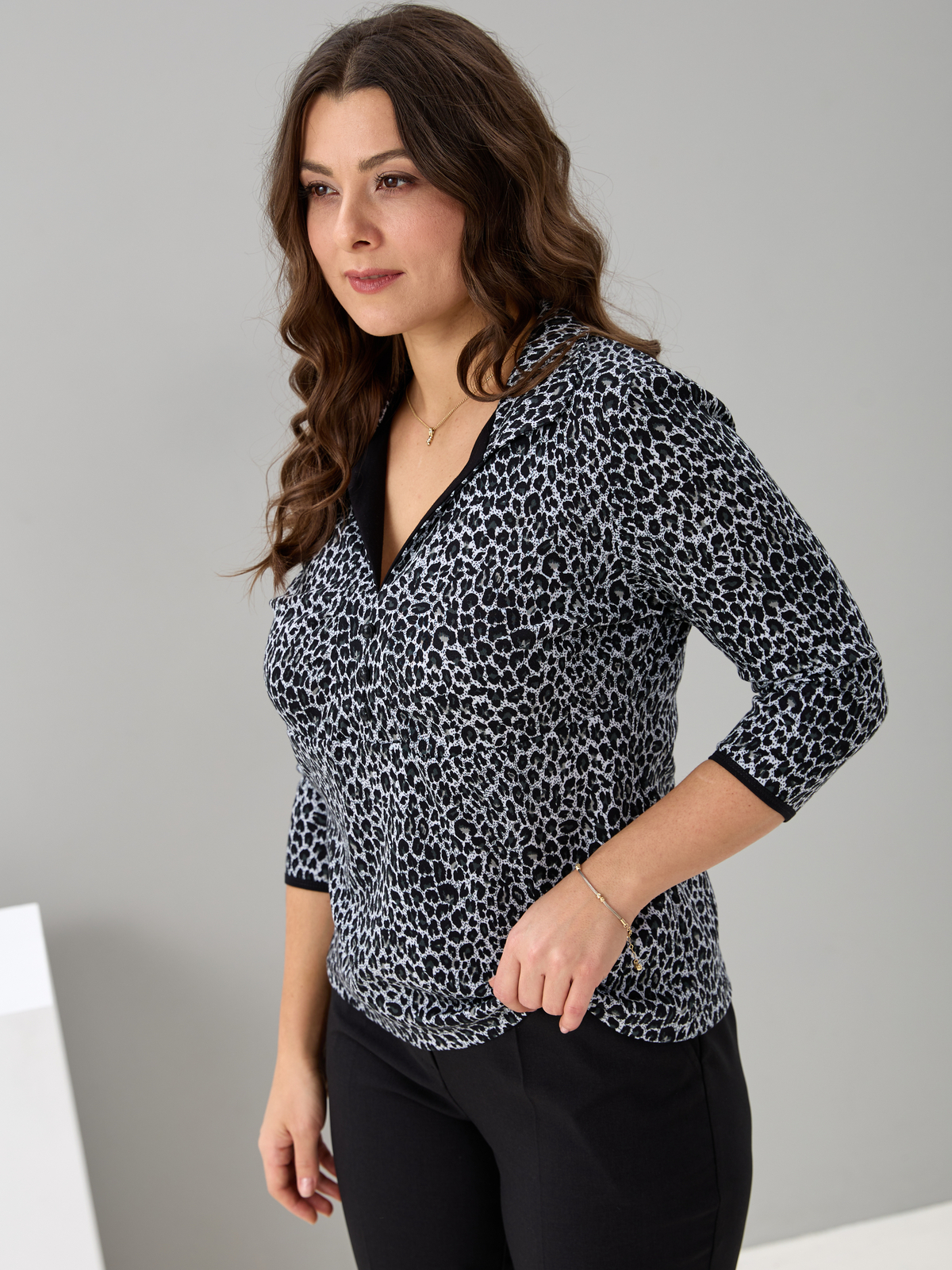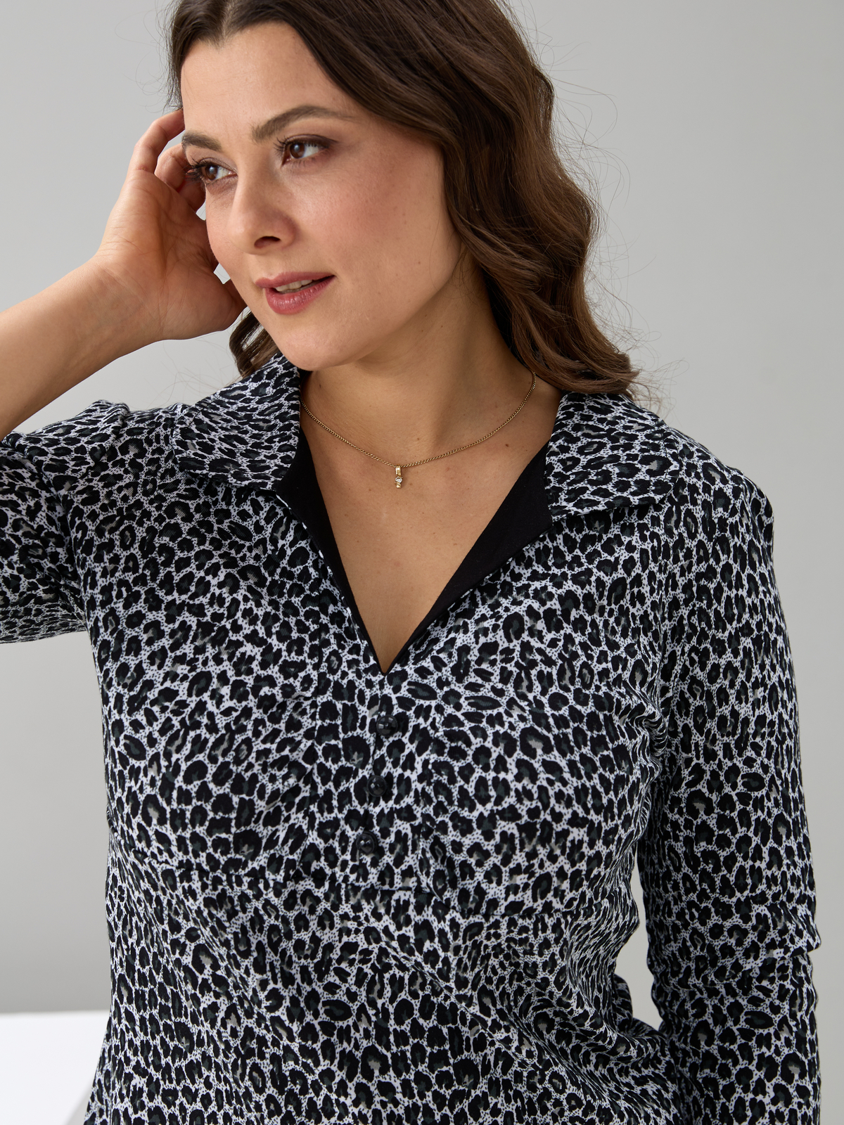 Блузка БЛ-015/серый-леопард
