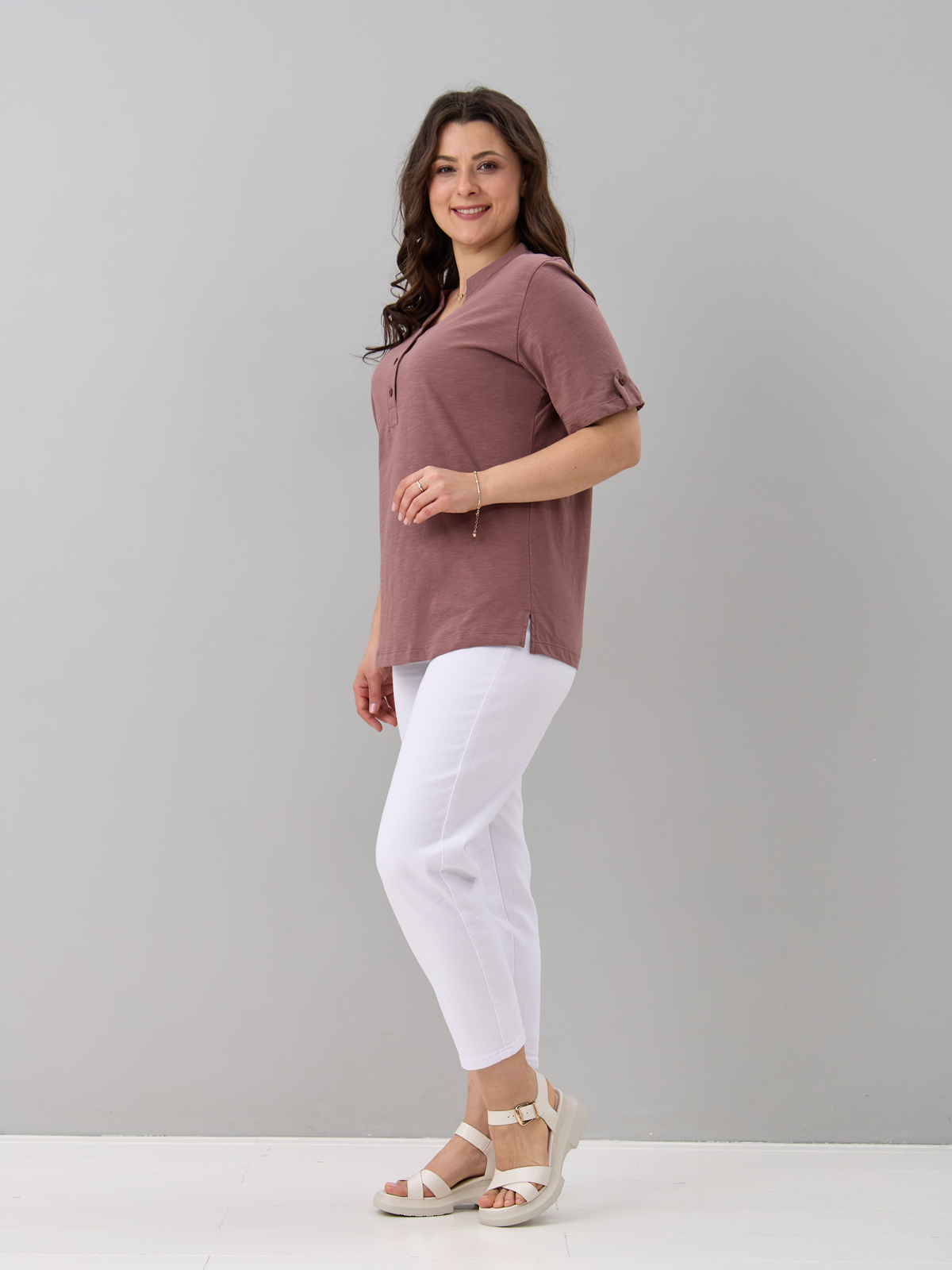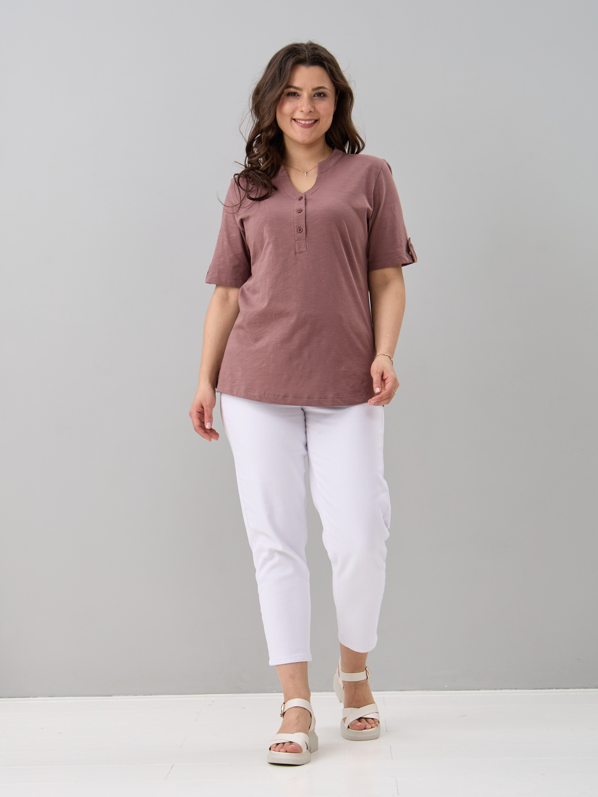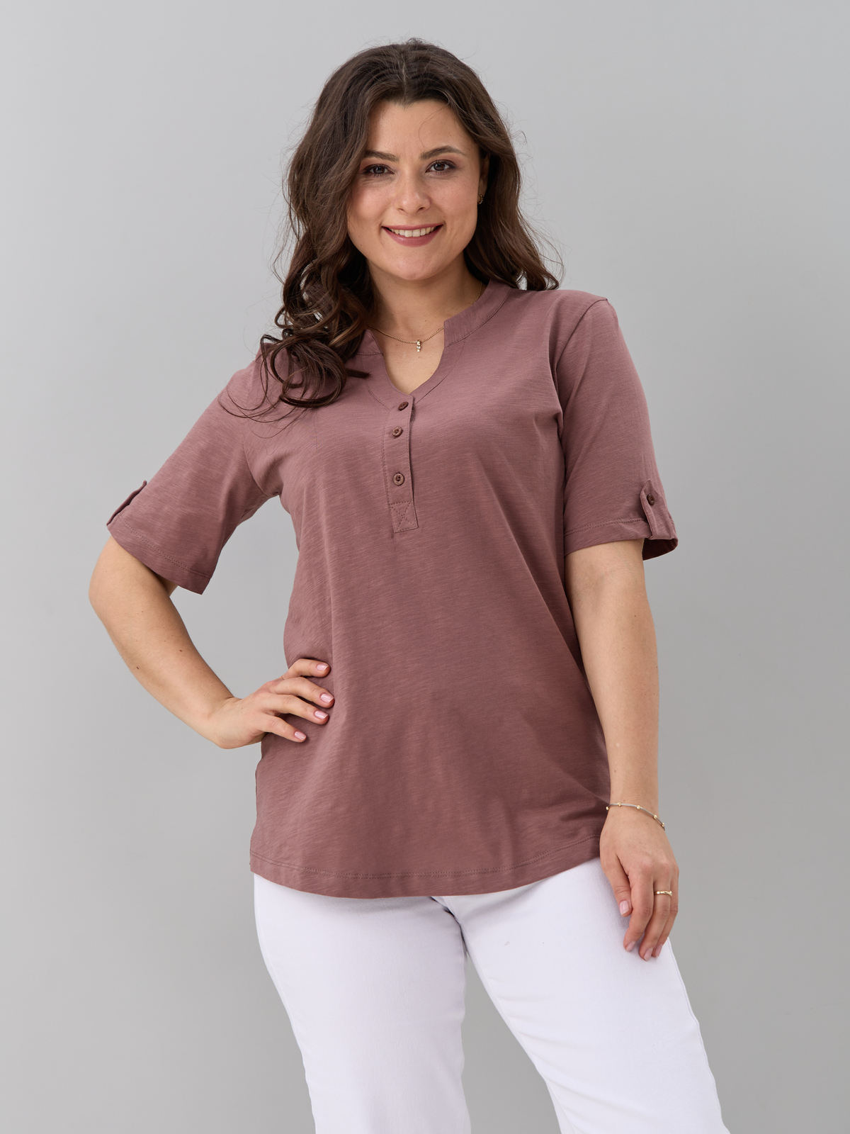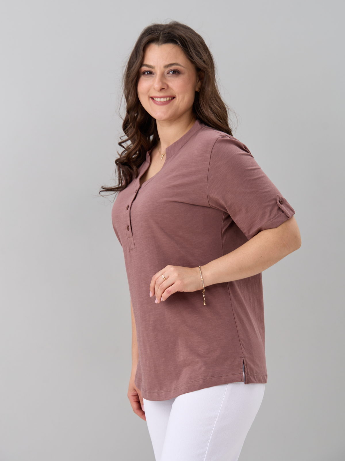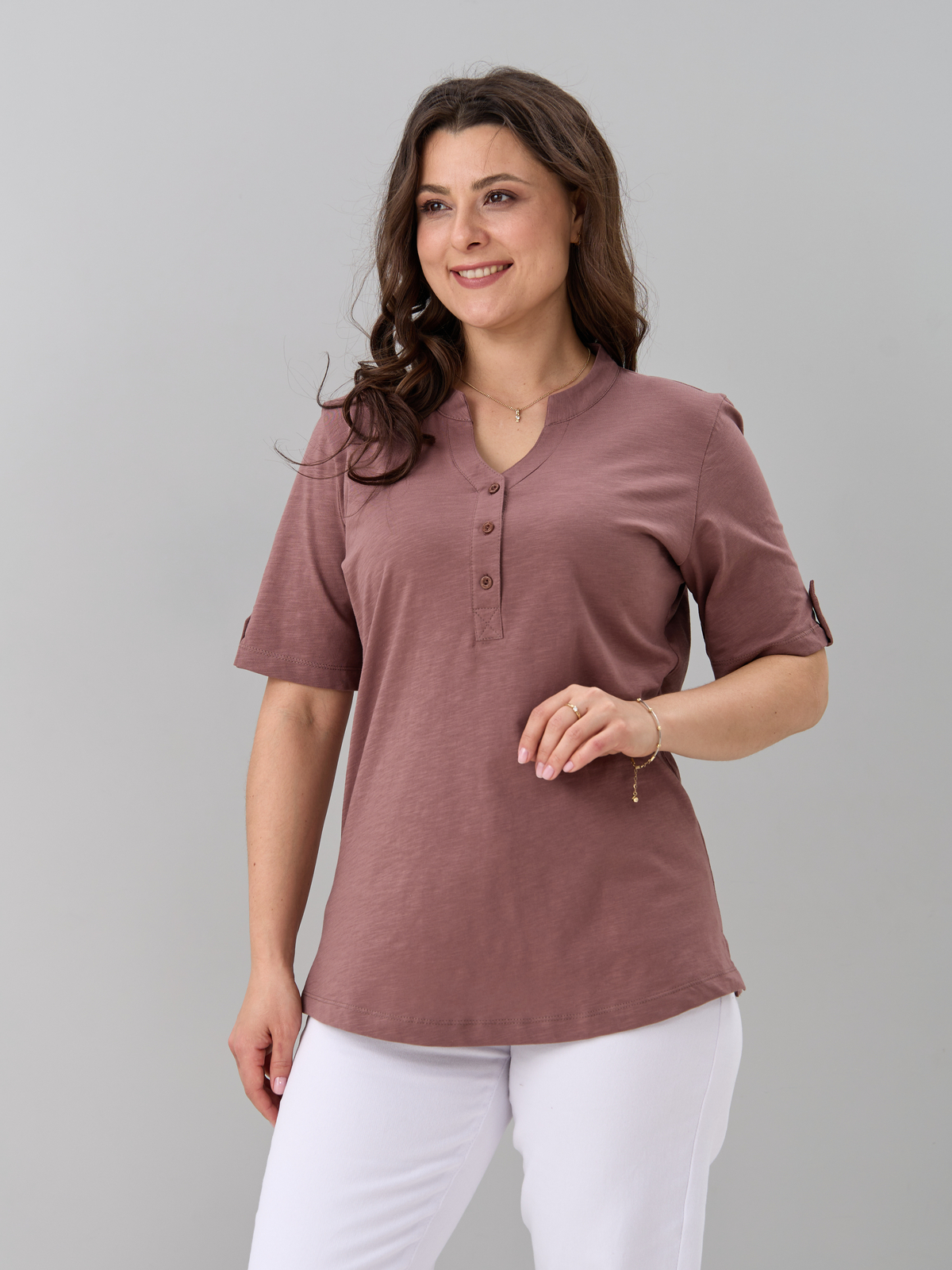 - Блузка женская больших размеров офисная выполнена из 100% хлопка, трикотажного полотна, плетения кулир. Блузка повседневная хлопковая средней длины, с фигурным вырезом горловины и застежкой на пуговицы. Благодаря своей универсальности Вы можете надеть ее на работу, в гости, на отдыхе, даче и даже дома. Блузка с коротким рукавом сочетается с брюками, джинсами, подходит для домашней и повседневной носки. Кроме этого блузка трикотажная с коротким рукавом может играть роль блузки на выход или блузки на работу. Также уникальный крой позволит Вам выбрать свой идеальный размер, который выделит все ваши достоинства. Такая блузка будет отличным подарком для девушки, жены, бабушки, мамы, дочки, подруги, коллеги на новый год, 8 марта, день рождения. Все товары бренда АЛТЕКС отшиты на собственном производстве в России. Благодаря отработанным лекалам и качественному пошиву наши изделия добротные и прекрасно сидят на любой фигуре!