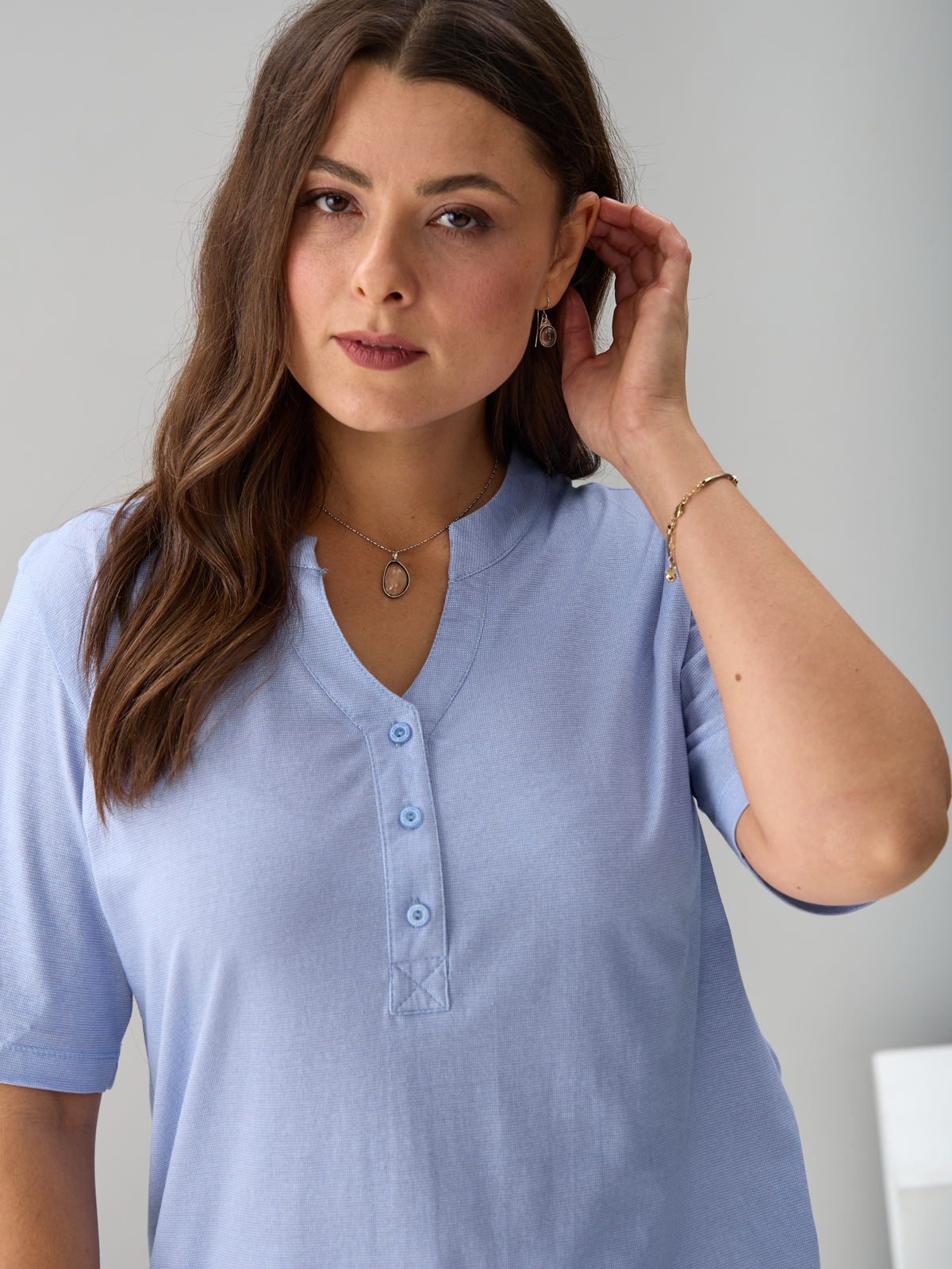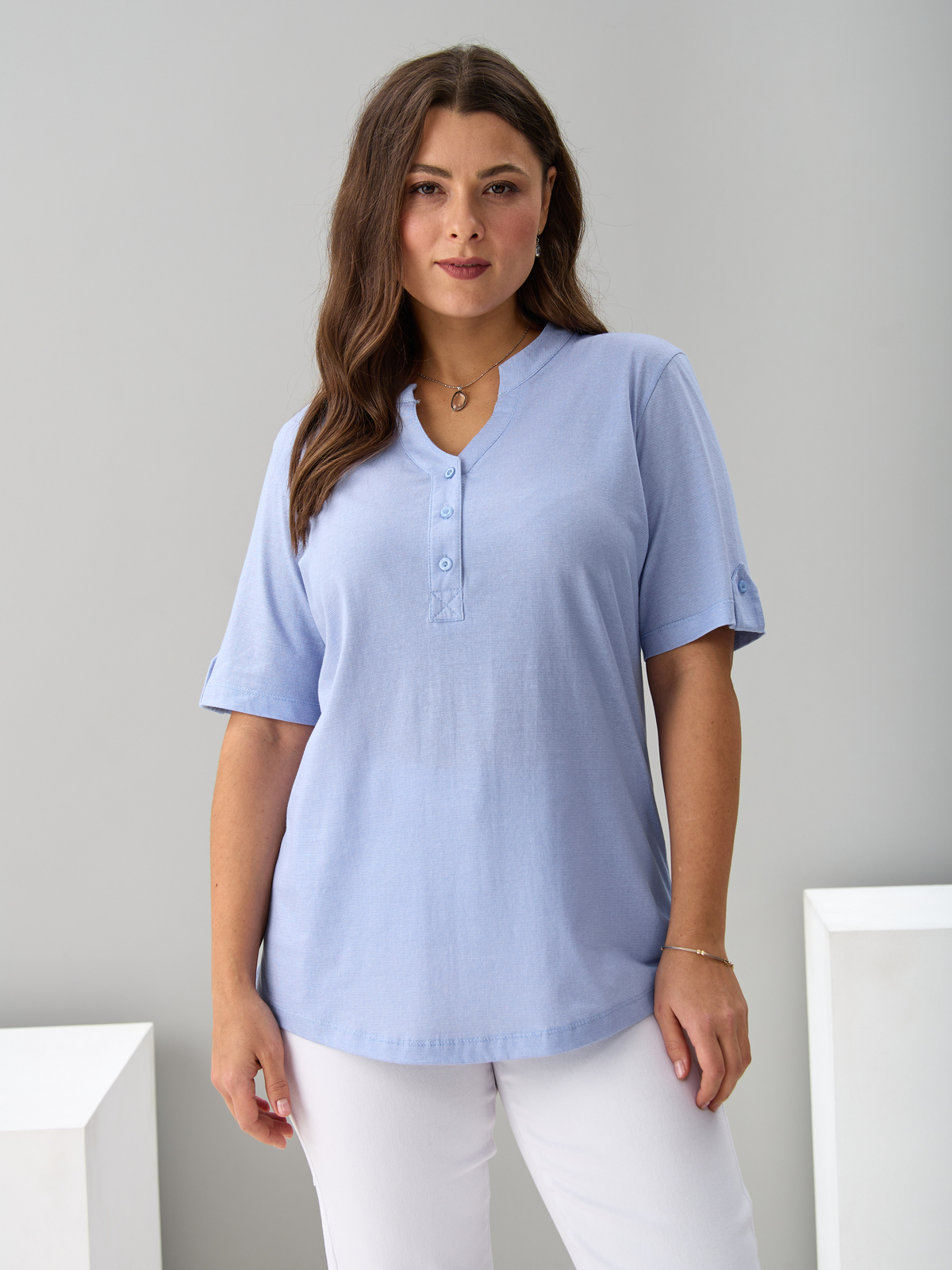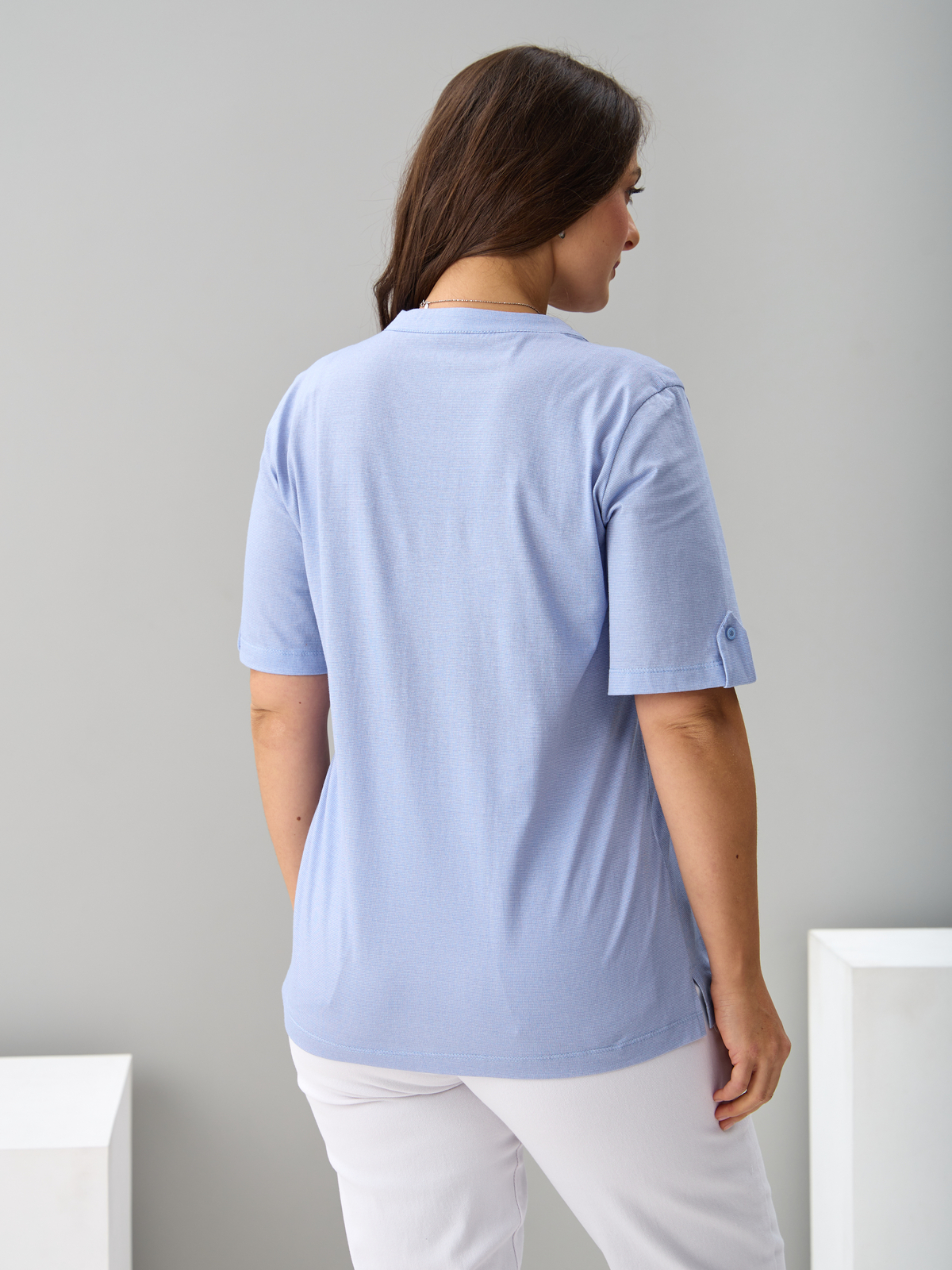 Блузка БЛ-122/рогожкаголубая