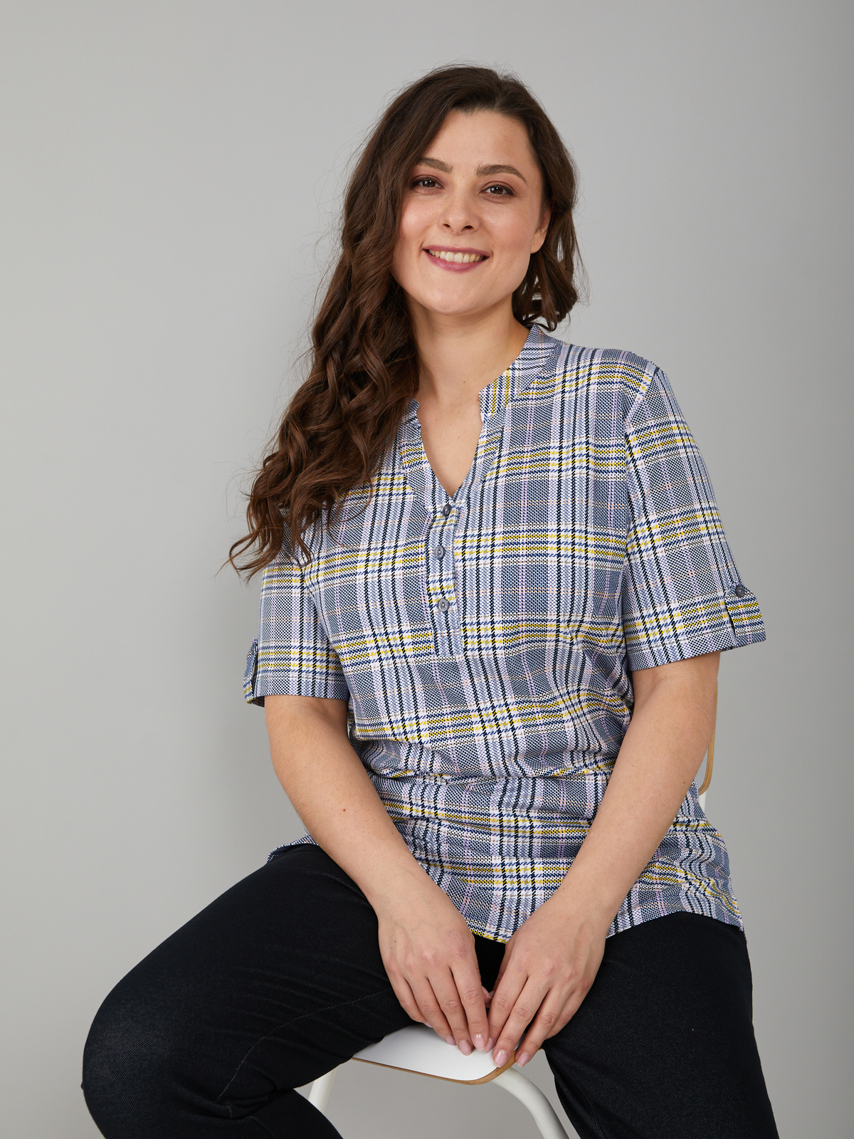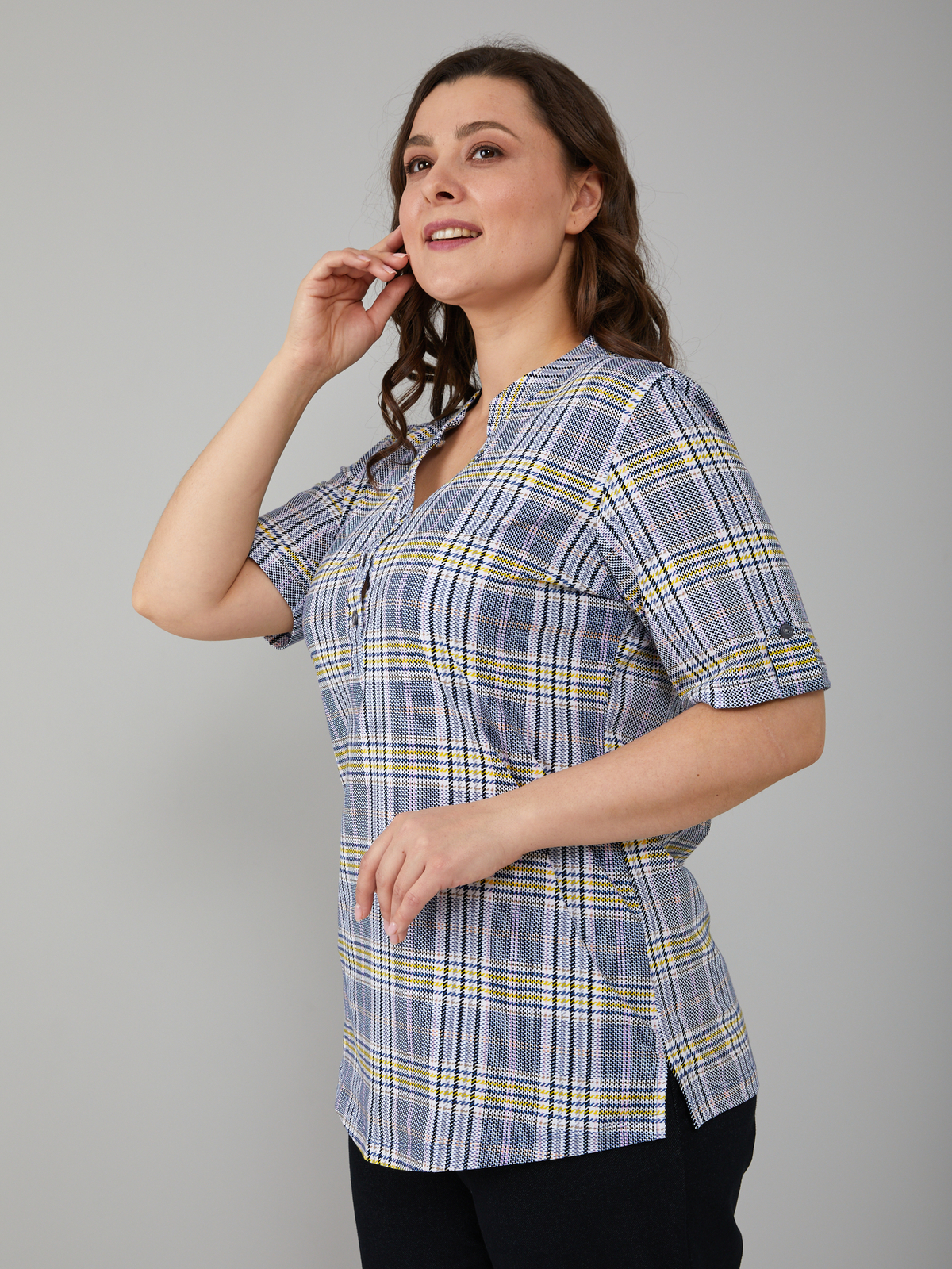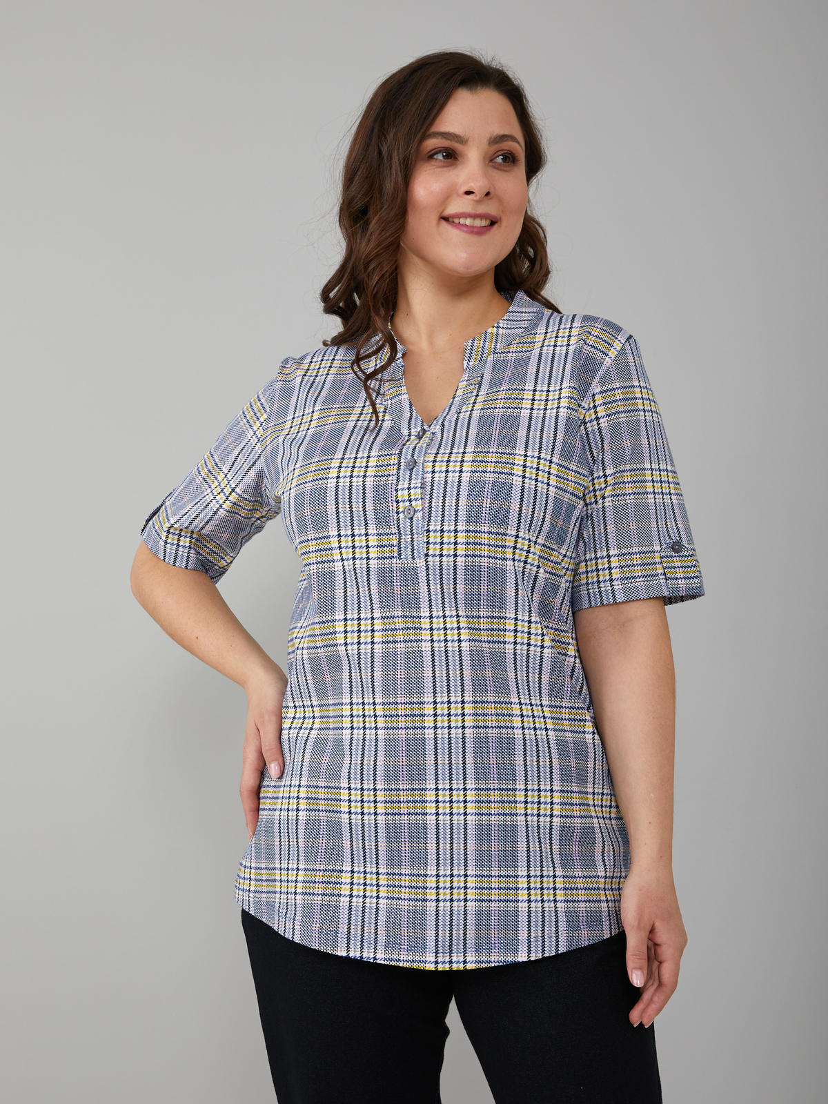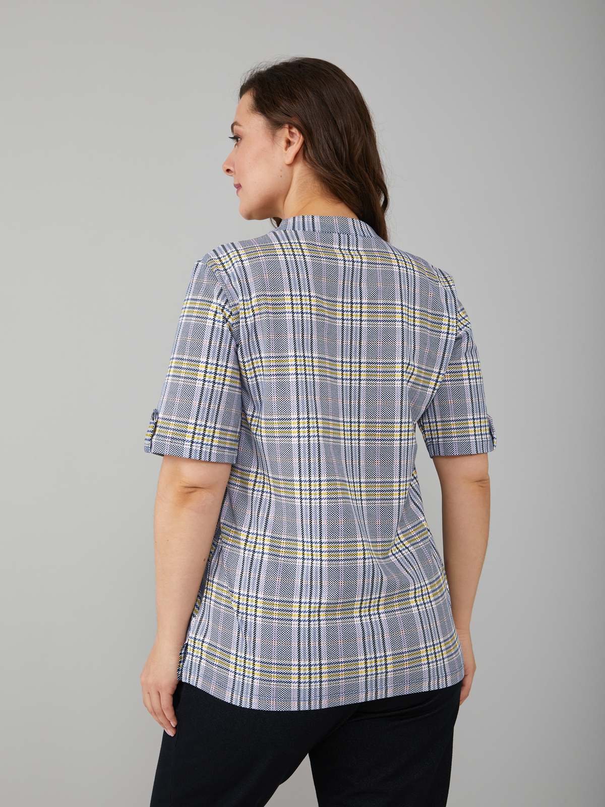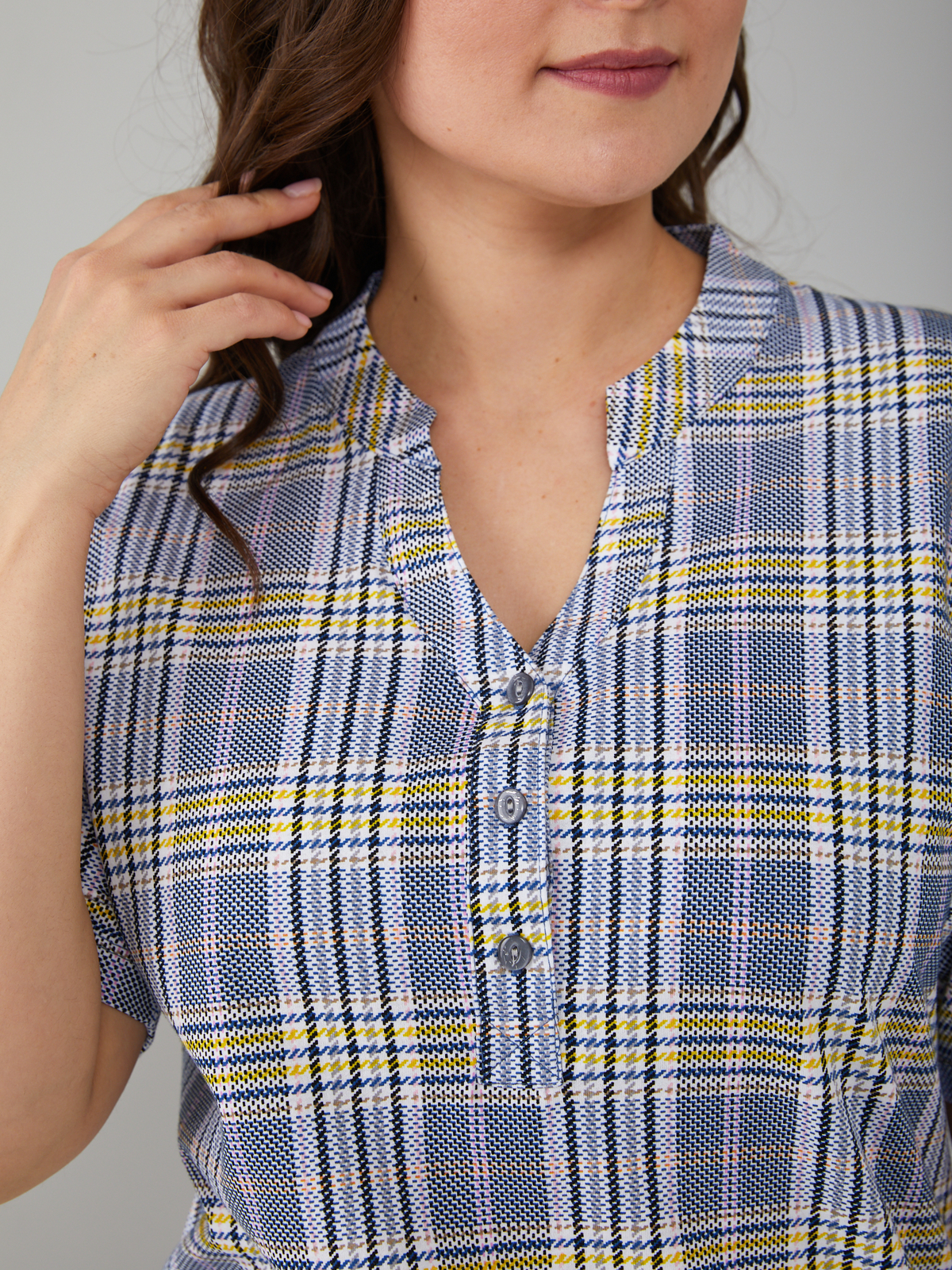 Блузка БЛ-122/синежелтая-клетка