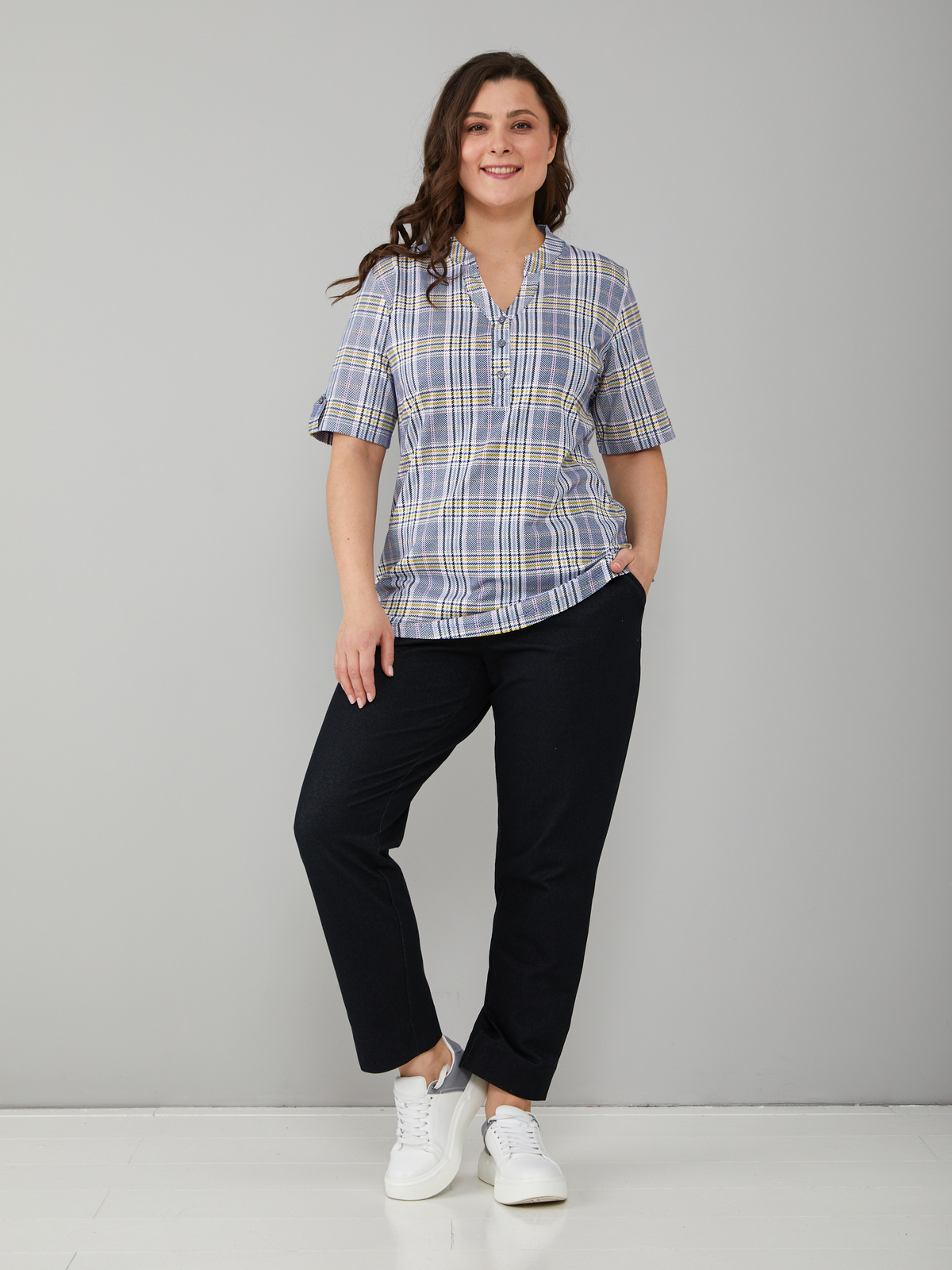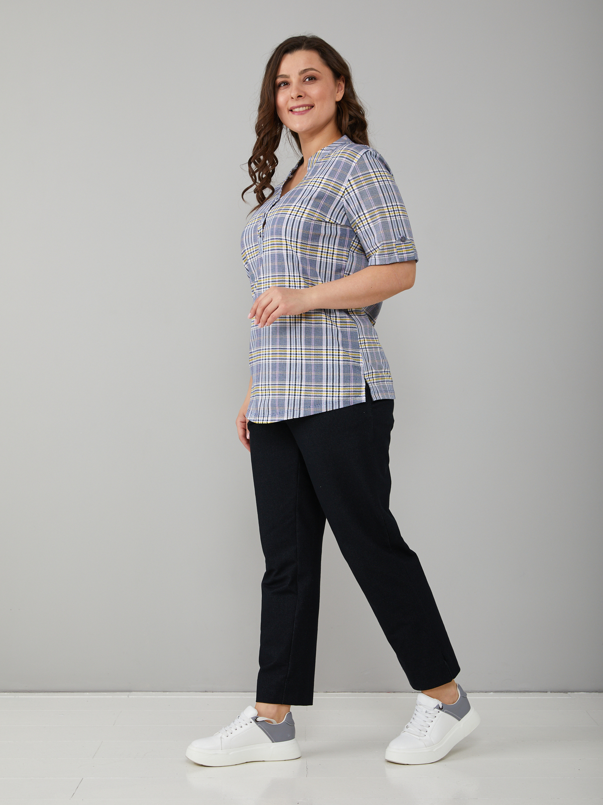 - Блузка женская больших размеров офисная выполнена из 100% хлопка, трикотажного полотна, плетения кулир. Блузка повседневная хлопковая средней длины, с фигурным вырезом горловины и застежкой на пуговицы. Благодаря своей универсальности Вы можете надеть ее на работу, в гости, на отдыхе, даче и даже дома. Блузка с коротким рукавом сочетается с брюками, джинсами, подходит для домашней и повседневной носки. Кроме этого блузка трикотажная с коротким рукавом может играть роль блузки на выход или блузки на работу. Также уникальный крой позволит Вам выбрать свой идеальный размер, который выделит все ваши достоинства. Такая блузка будет отличным подарком для девушки, жены, бабушки, мамы, дочки, подруги, коллеги на новый год, 8 марта, день рождения. Все товары бренда АЛТЕКС отшиты на собственном производстве в России. Благодаря отработанным лекалам и качественному пошиву наши изделия добротные и прекрасно сидят на любой фигуре!