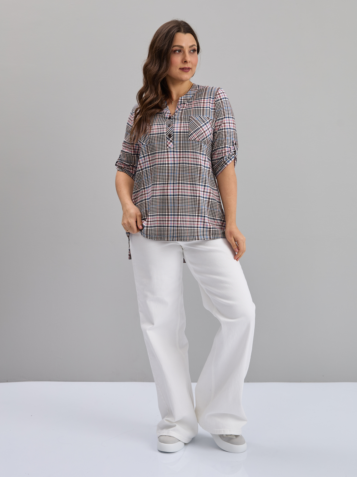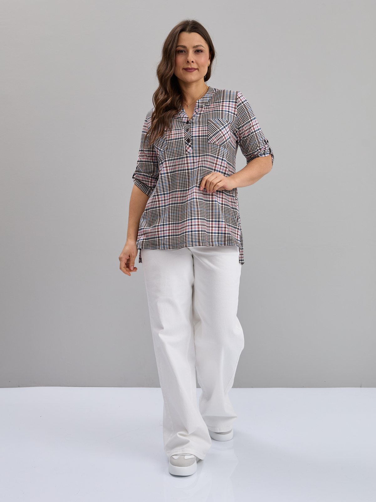 Блузка БЛ-131/коричнево-розоваяклетка