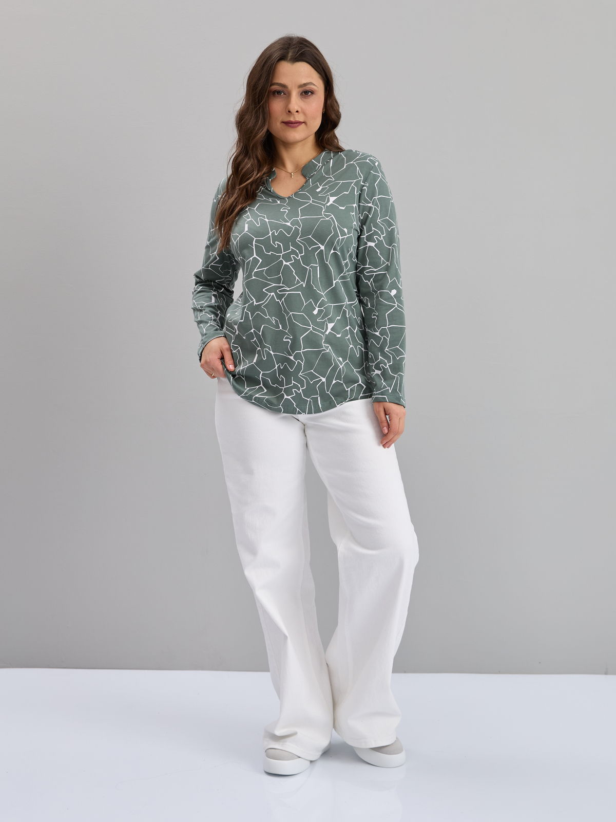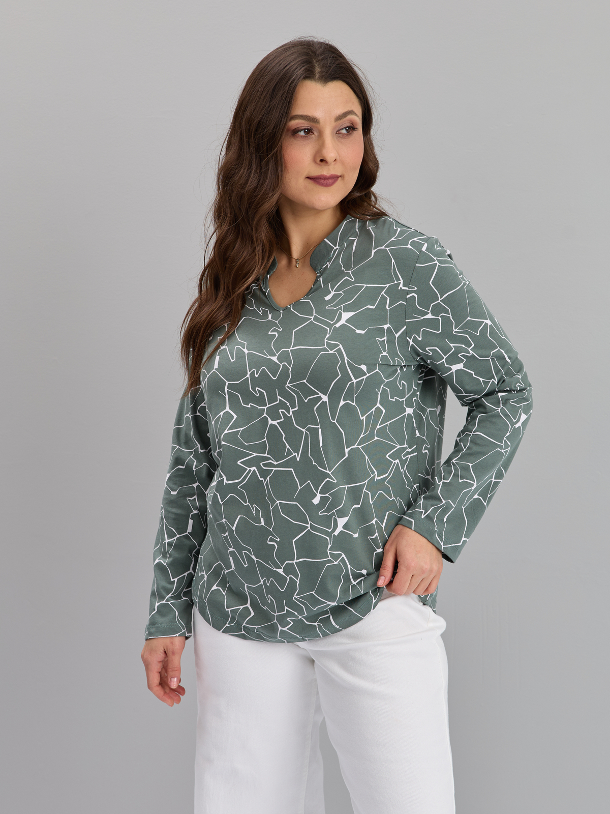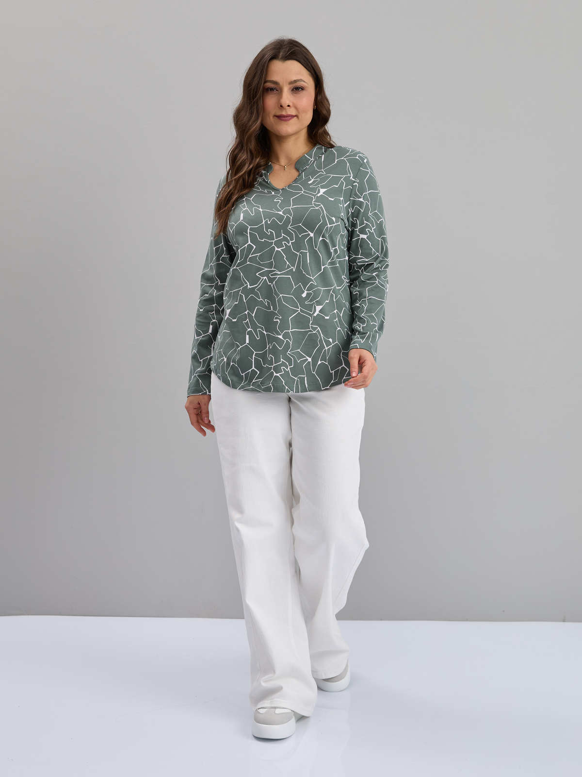 Блузка БЛк-073/полынь-абстракциямолоко