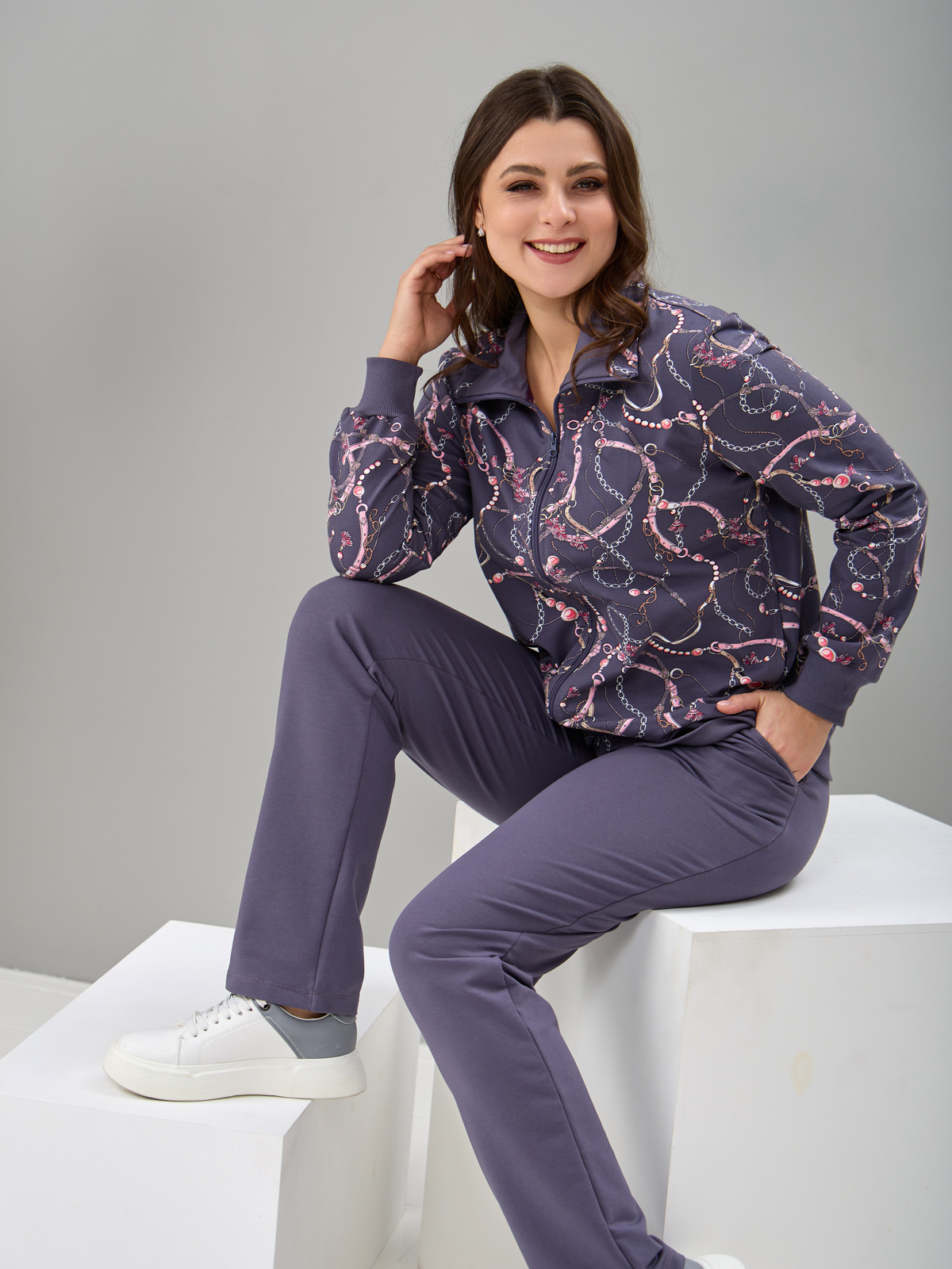 - Брюки женские трикотажные прямые больших размеров с высокой посадкой выполнены из 2