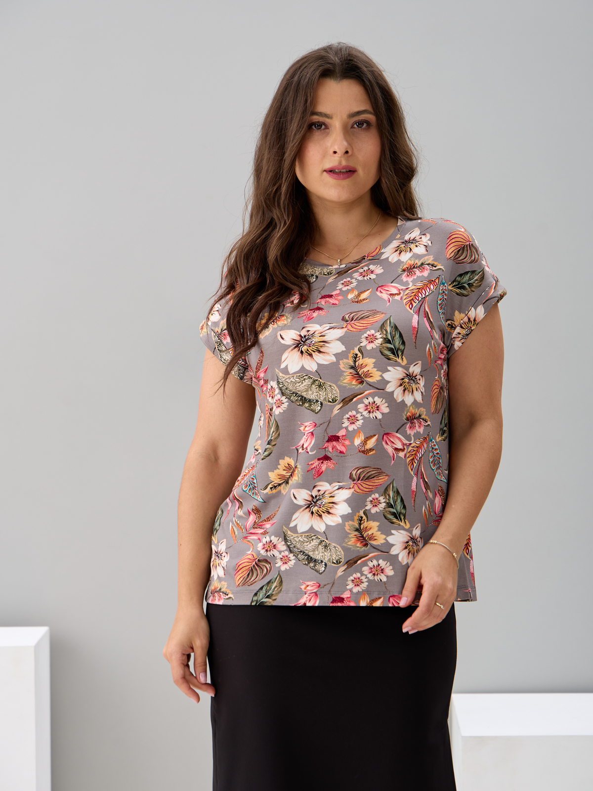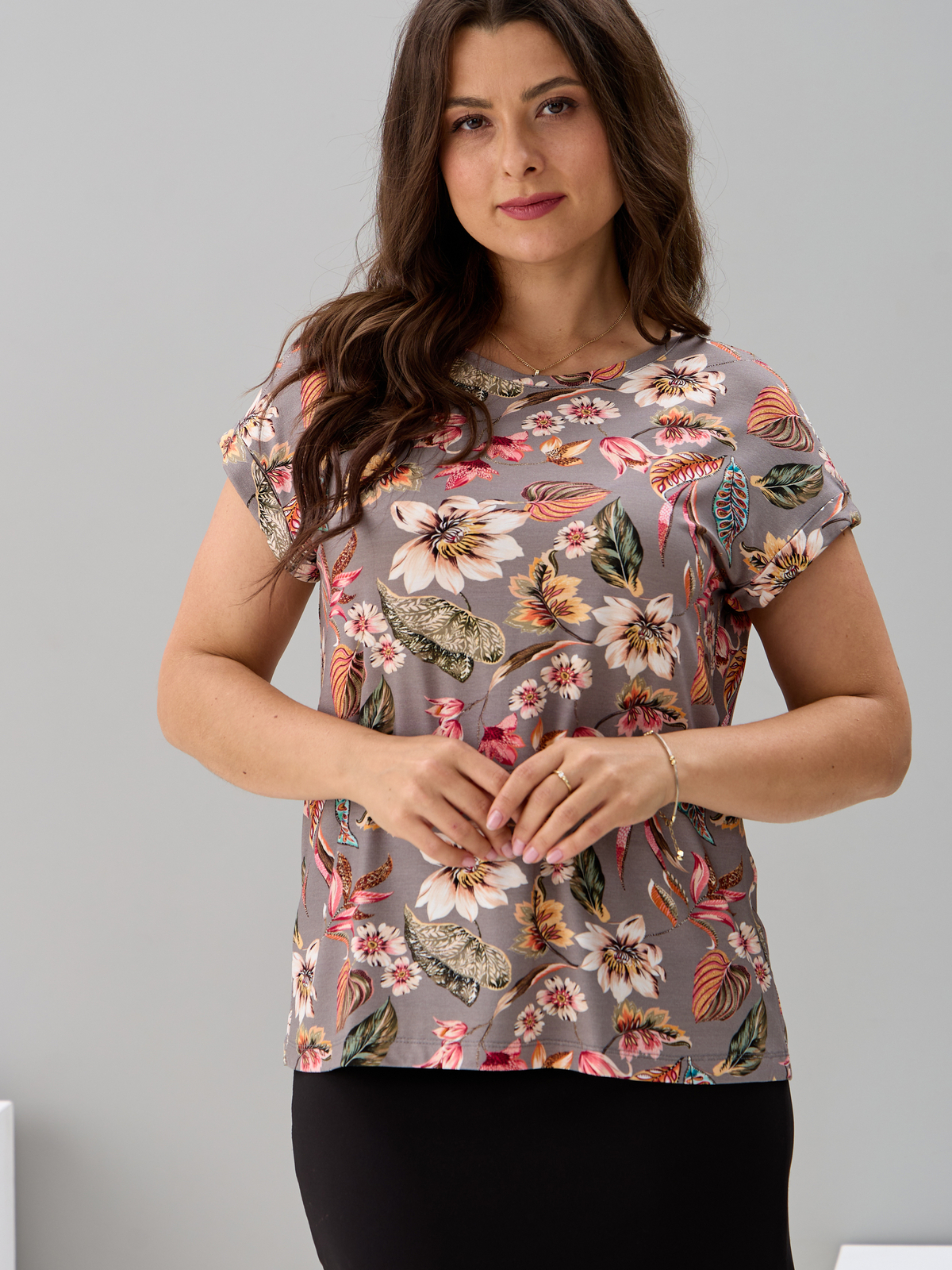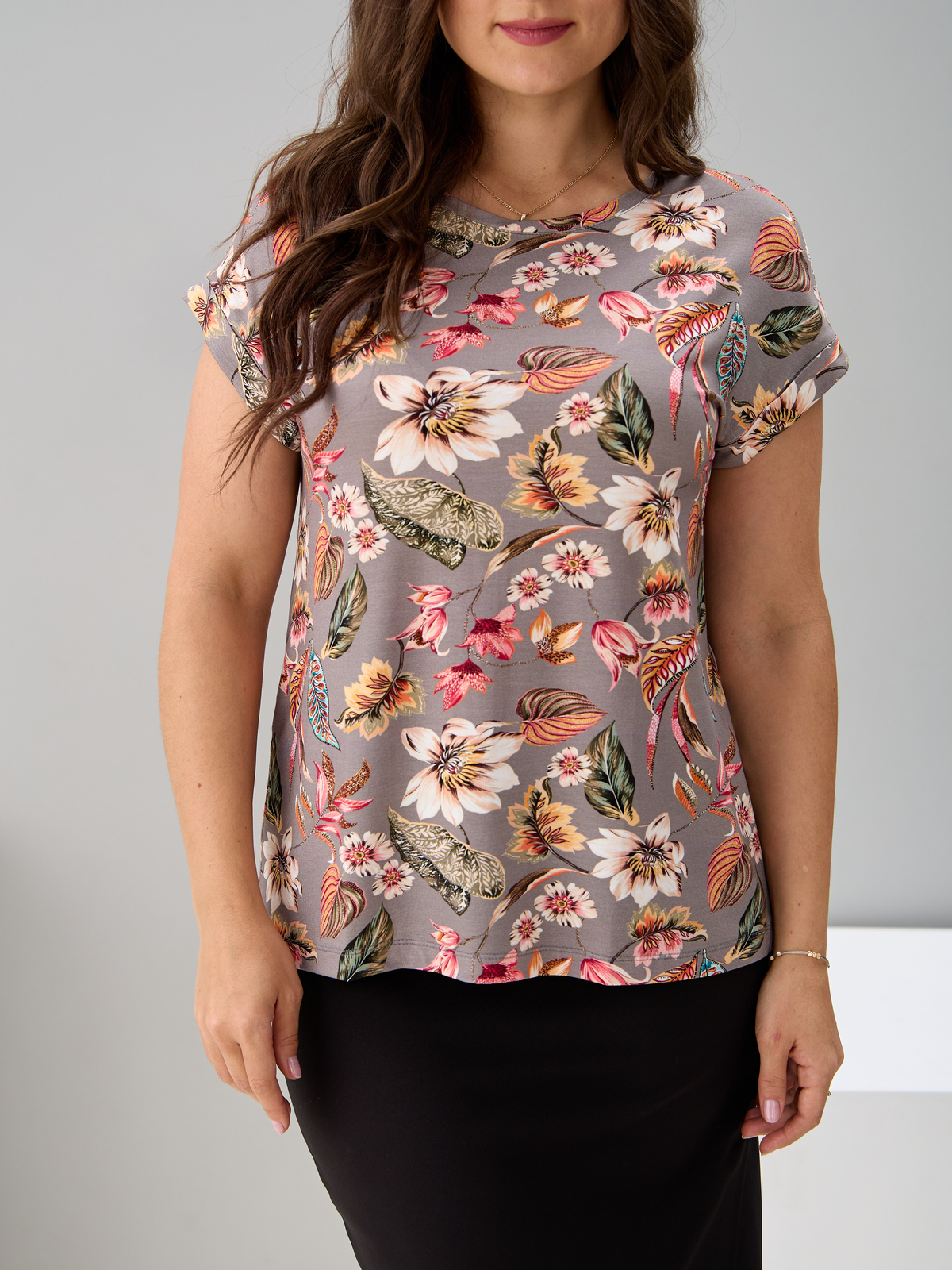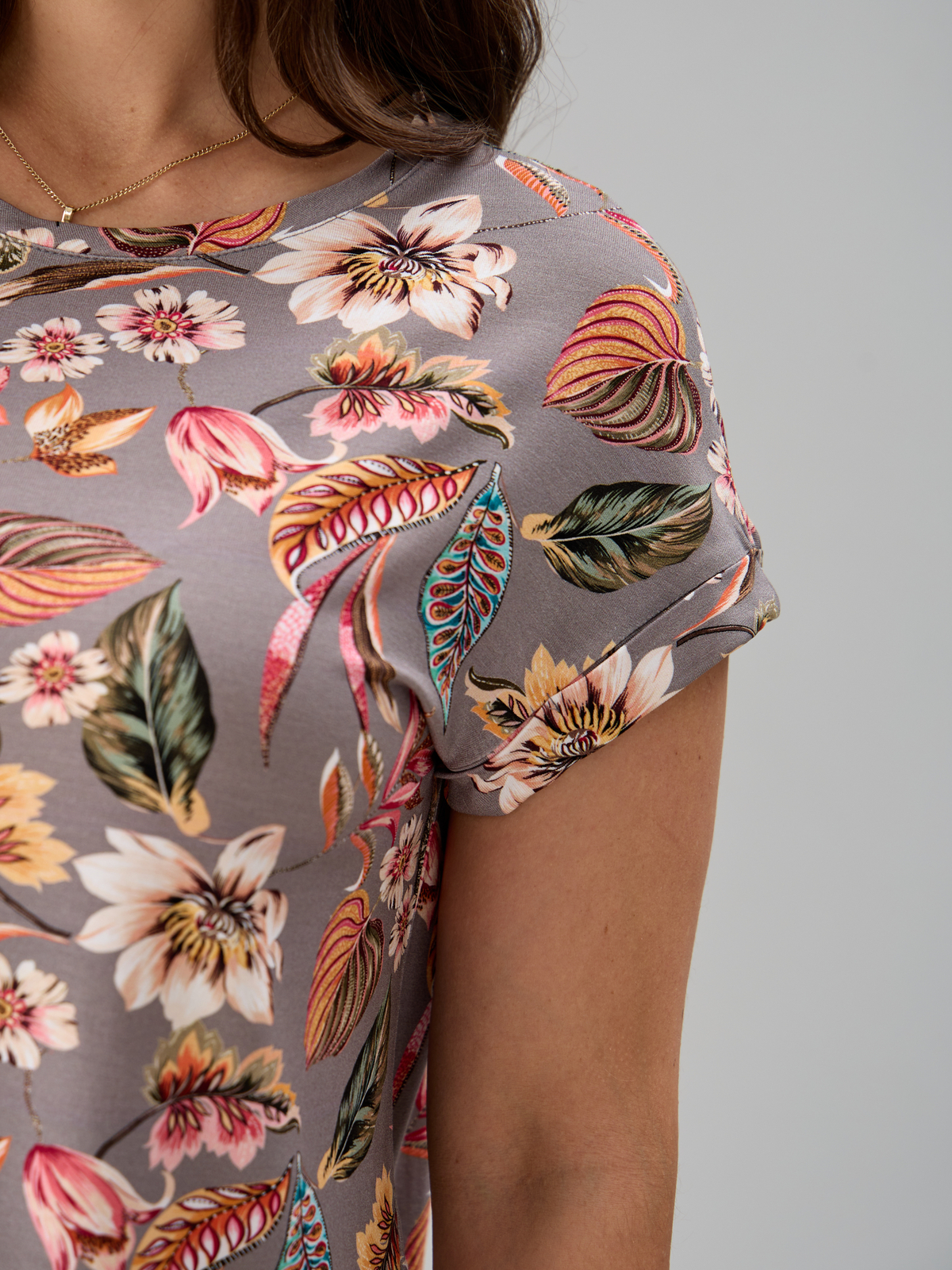 Футболка Фв-104/серый-тропическиелистья