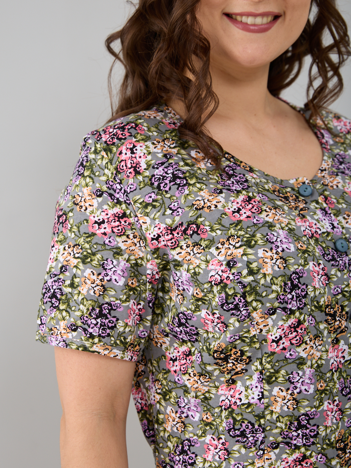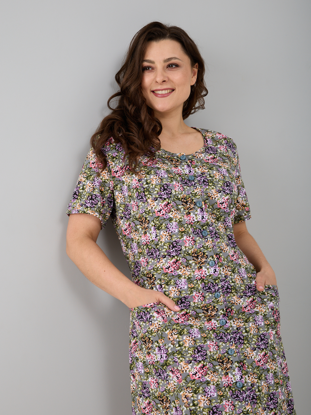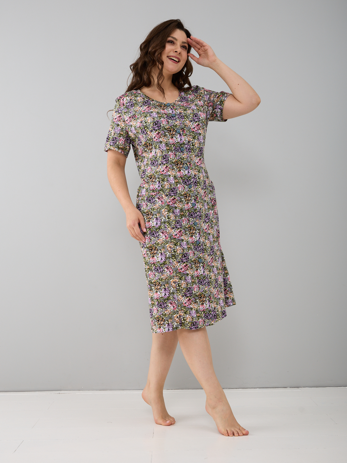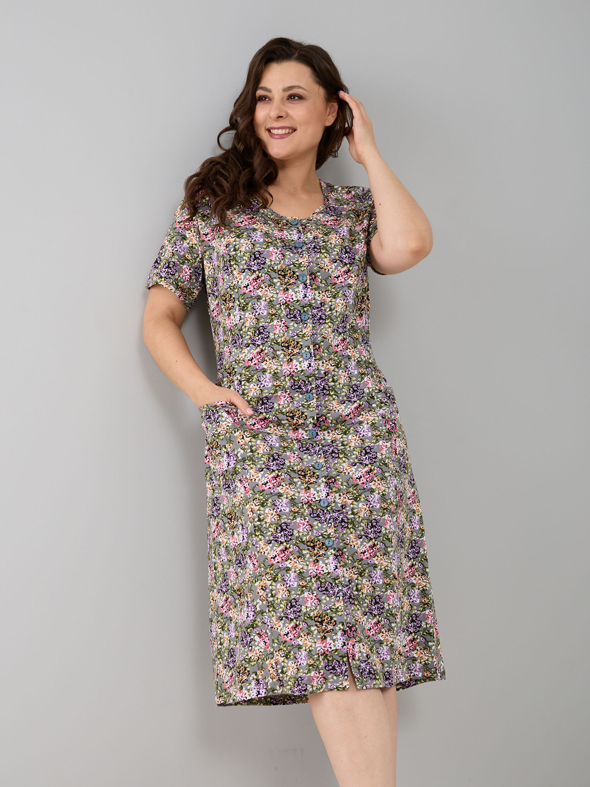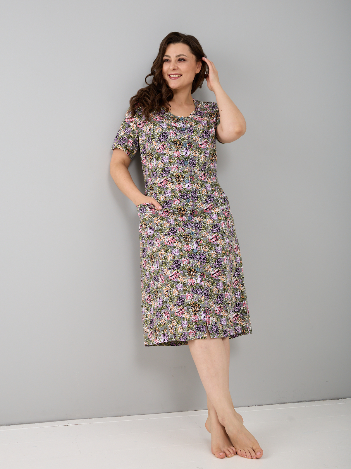 - Элегантный длинный халат ниже колена на пуговицах и с округлым вырезом горловины выполнен из качественного 100% хлопка. Яркая расцветка и удобный дизайн не оставит равнодушным никого, а благодаря большой размерной сетке халат женский хлопковый подойдет даже на самые пышные формы. Очень удобный и уютный халат женский больших размеров позволит Вам чувствовать себя комфортно в любом месте. Наш халат женский для беременных будет одним из самых комфортных элементов вашего гардероба. Домашнее платье позволит Вам чувствовать себя комфортно и легко, благодаря своей натуральной и дышащей ткани, это отличная одежда для дома и дачи. Халат на пуговицах женский для дома имеет большую размерную сетку и каждая может найти свой идеальный размер. Домашнее платье для женщин