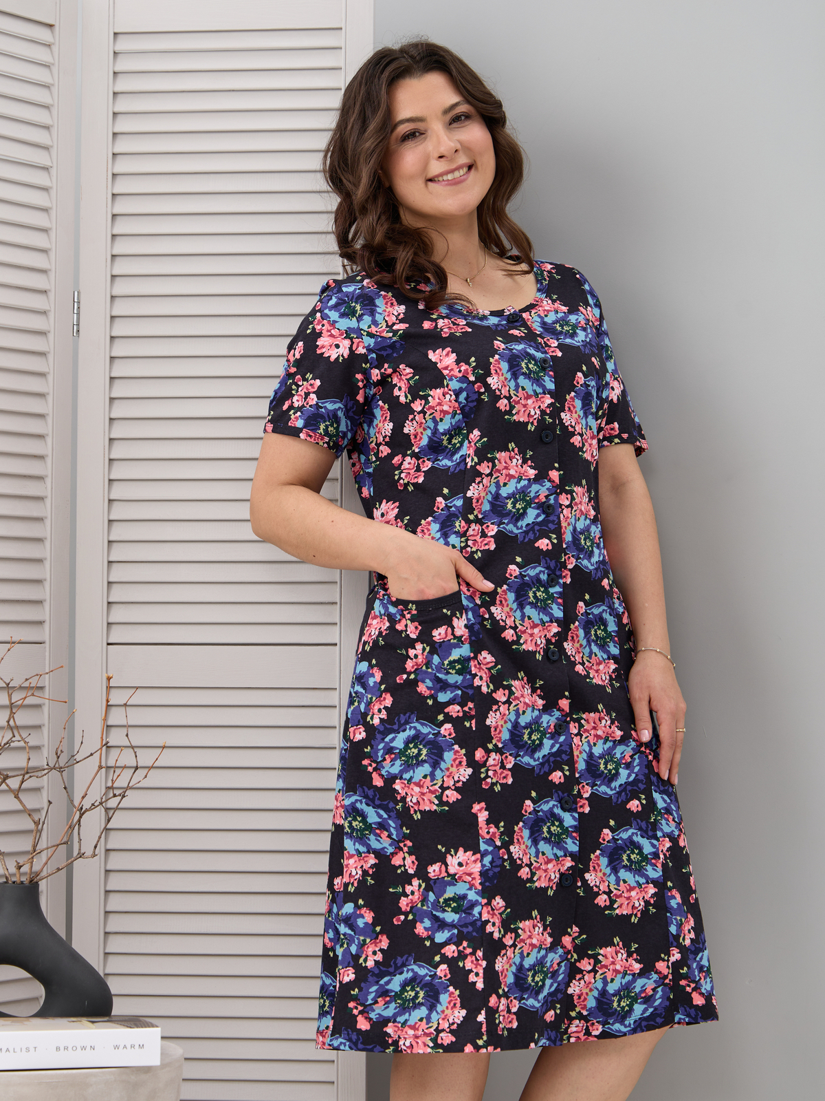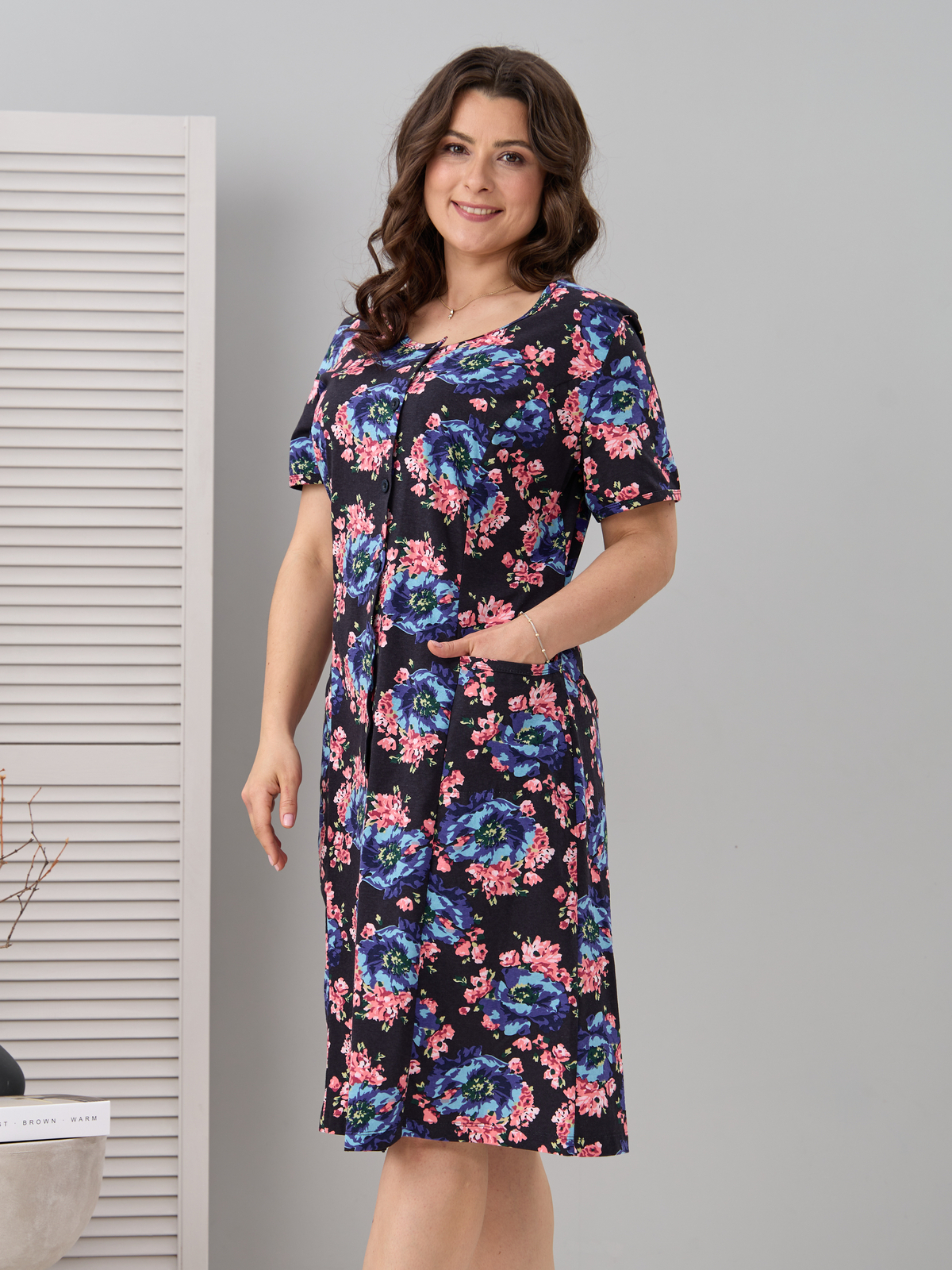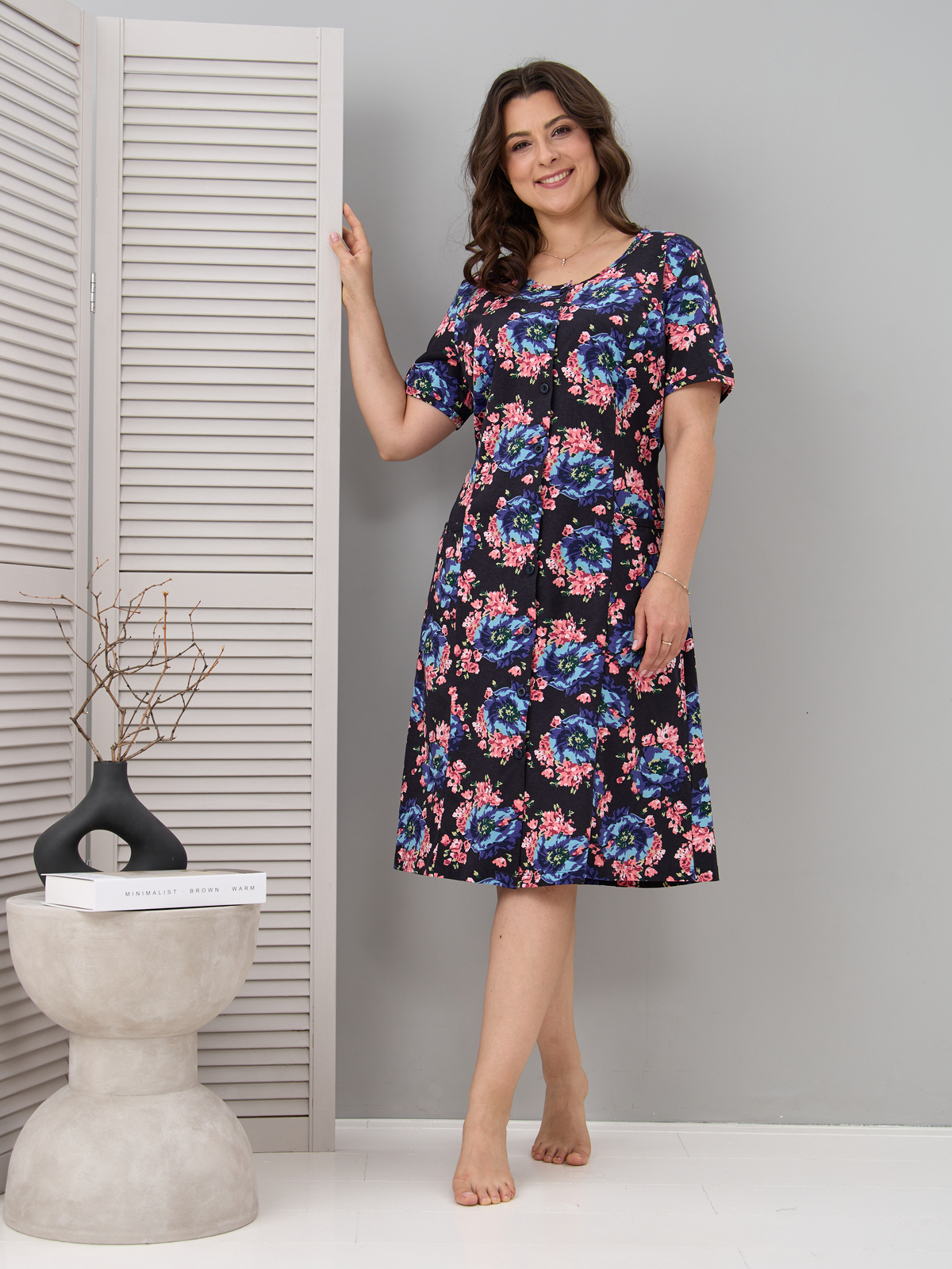Элегантный длинный халат ниже колена на пуговицах и с округлым вырезом горловины выполнен из качественного 100% хлопка. Яркая расцветка и удобный дизайн не оставит равнодушным никого, а благодаря большой размерной сетке халат женский хлопковый подойдет даже на самые пышные формы. Очень удобный и уютный халат женский больших размеров позволит Вам чувствовать себя комфортно в любом месте. Наш халат женский для беременных будет одним из самых комфортных элементов вашего гардероба. Домашнее платье позволит Вам чувствовать себя комфортно и легко, благодаря своей натуральной и дышащей ткани, это отличная одежда для дома и дачи. Халат на пуговицах женский для дома имеет большую размерную сетку и каждая может найти свой идеальный размер. Домашнее платье для женщин - лучший подарок для мамы, бабушки, дочки, тещи, жены, сестры, тети, коллеги на день рождения, 8 марта, новый год. Все товары бренда АЛТЕКС отшиты на собственном производстве в России. Используем только ткани высокого качества. Благодаря отработанным лекалам и качественному пошиву наши изделия добротные и прекрасно сидят на любой фигуре!