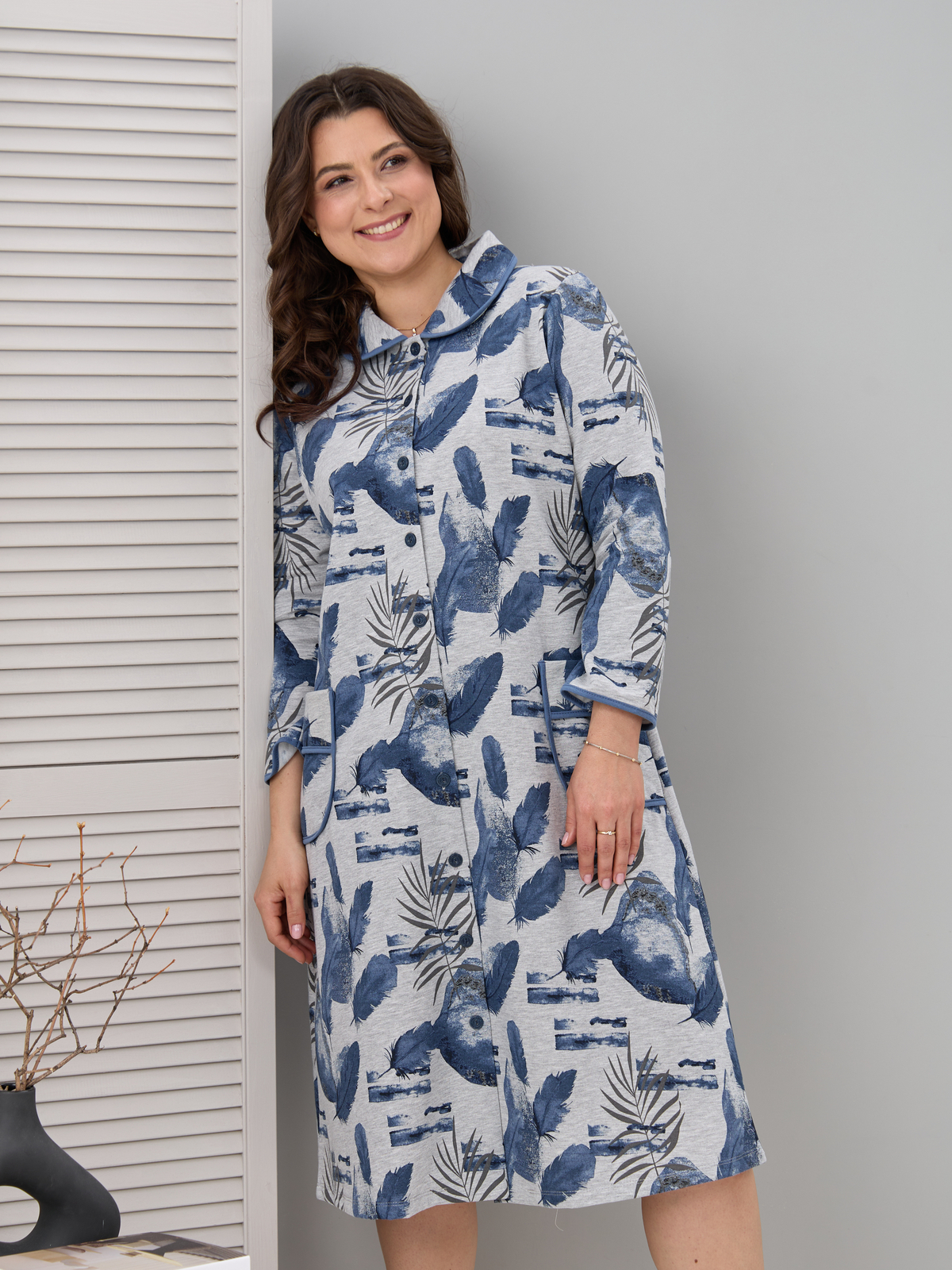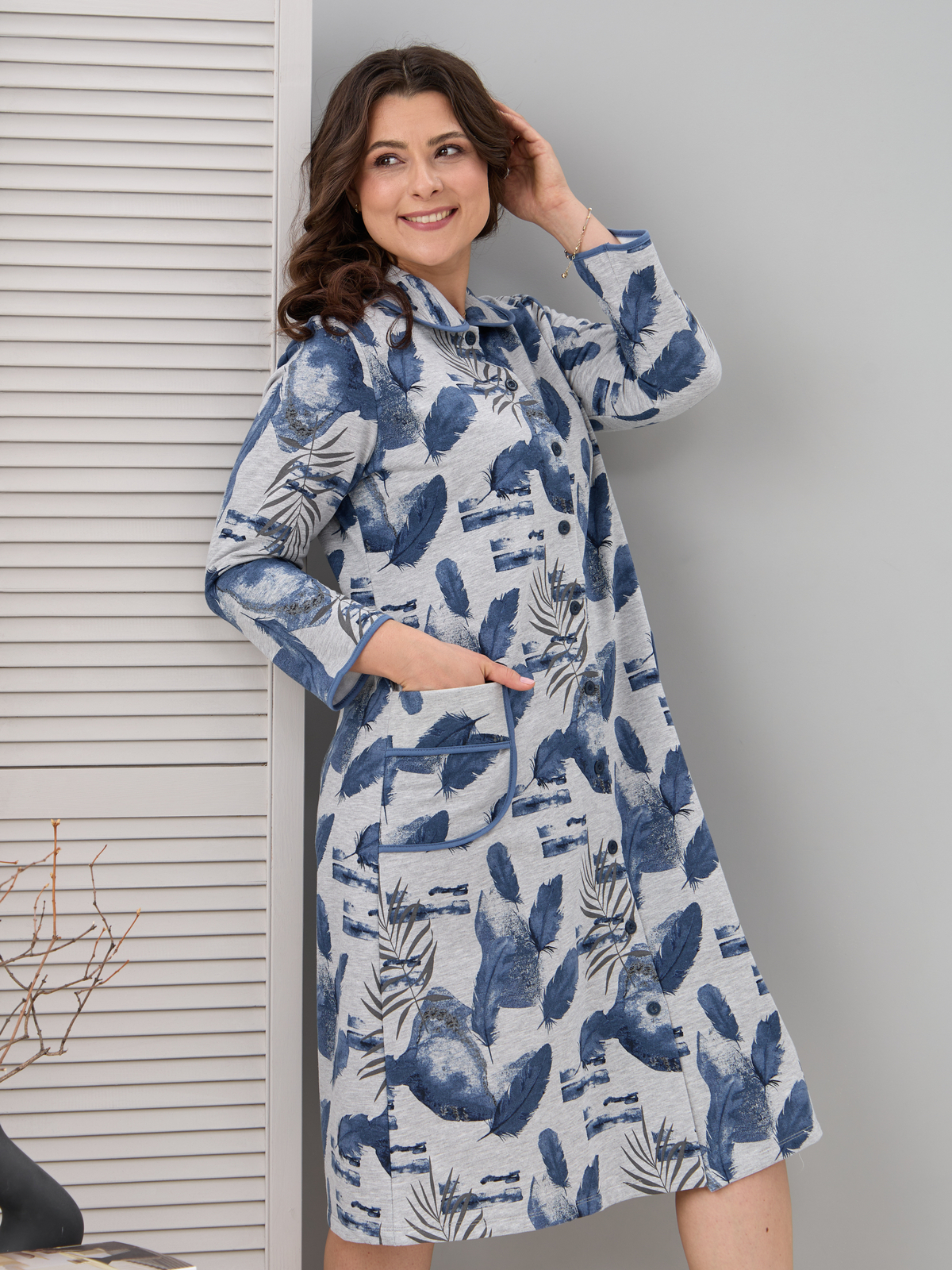 Халат Х-152Р/серыймеланж-перья