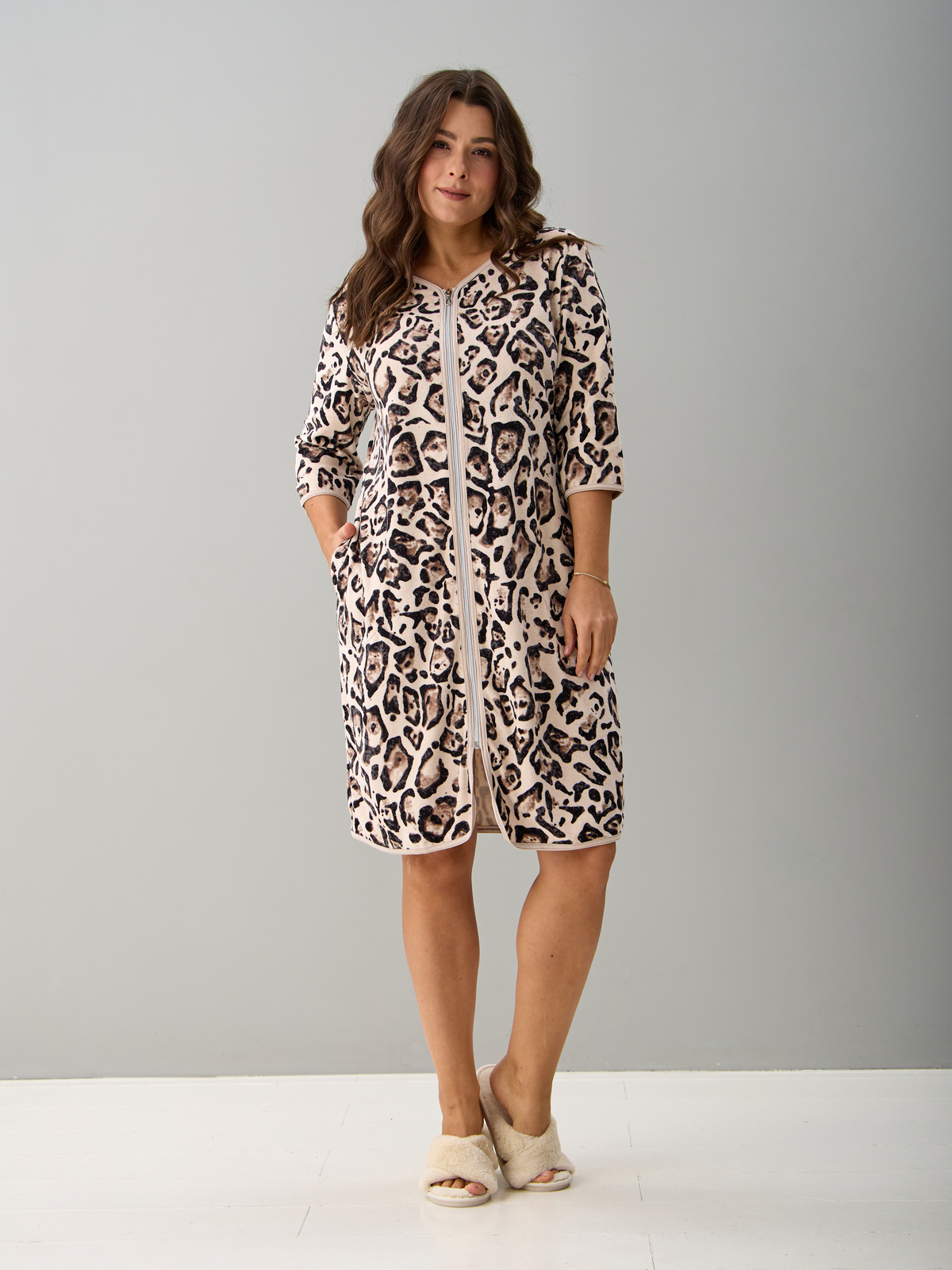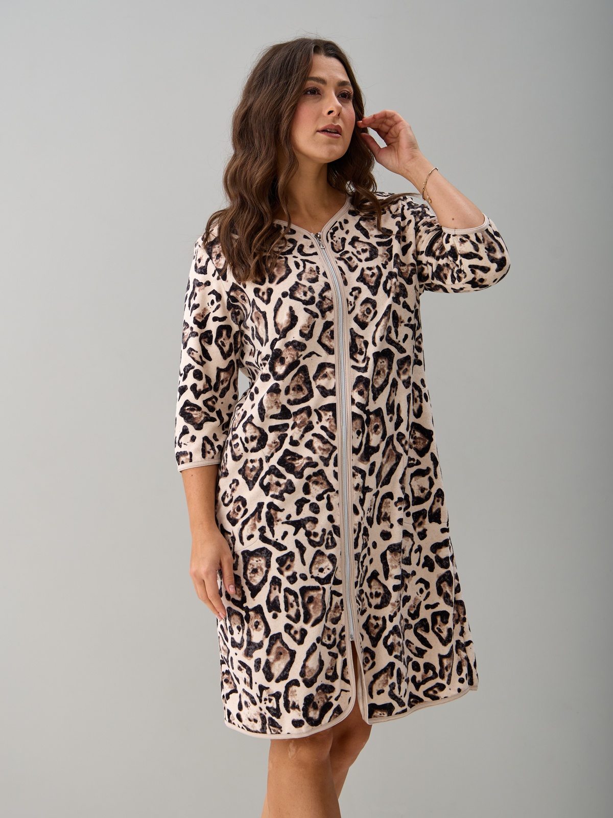 Халат Хм-562/бежевый-акварельлеопард