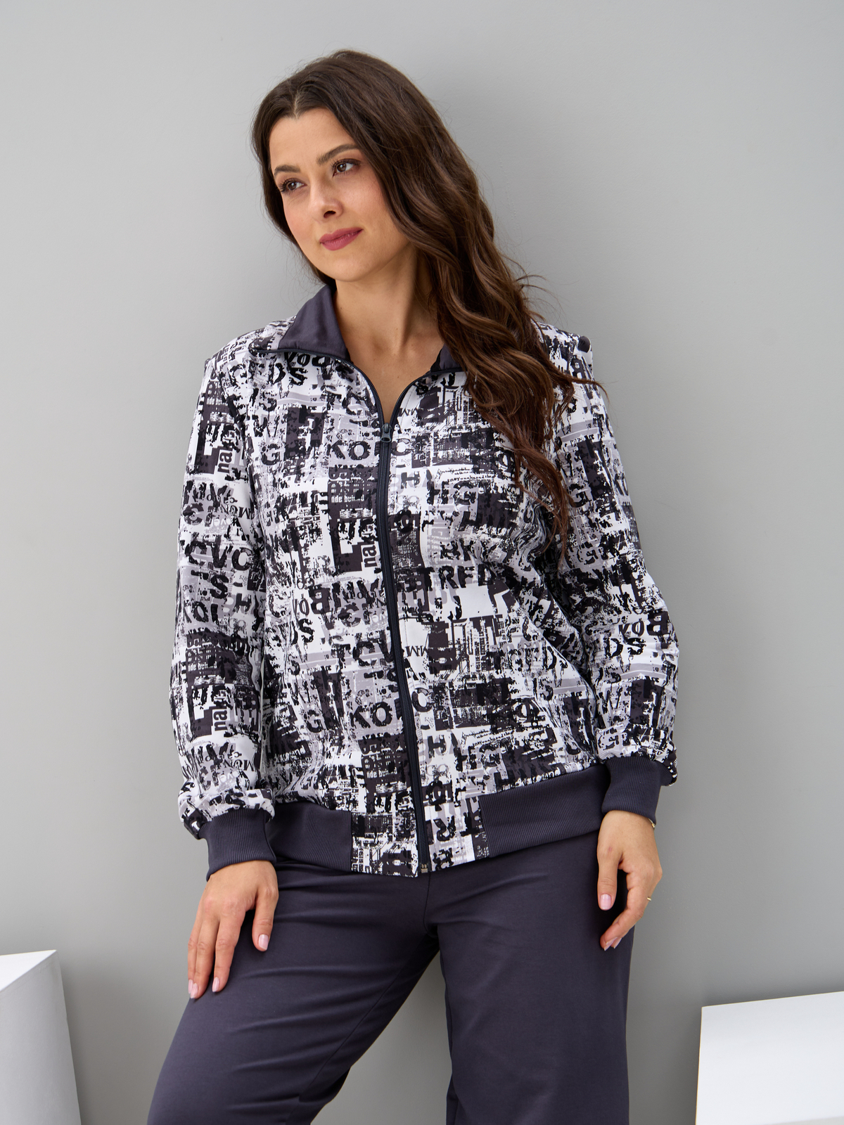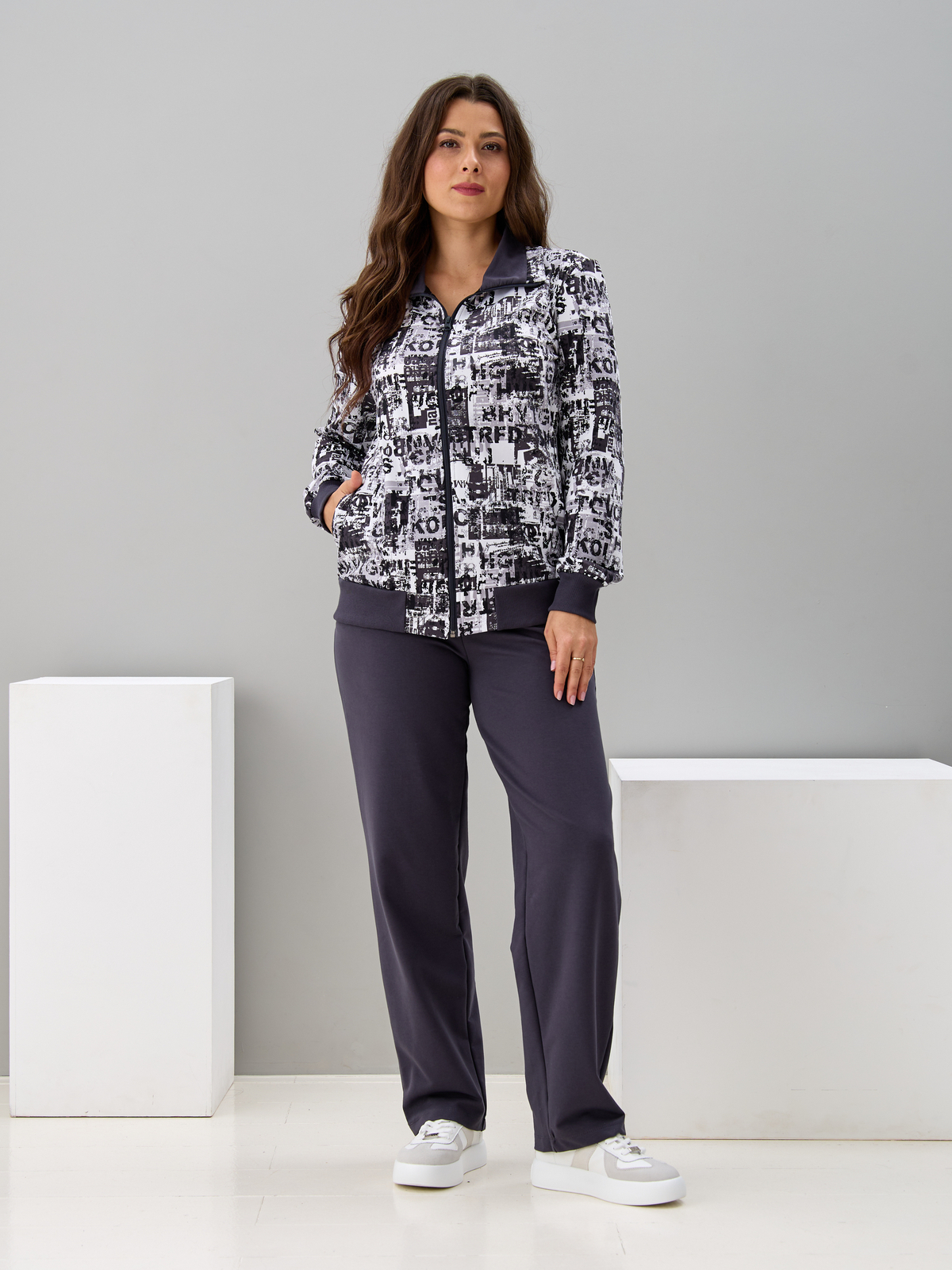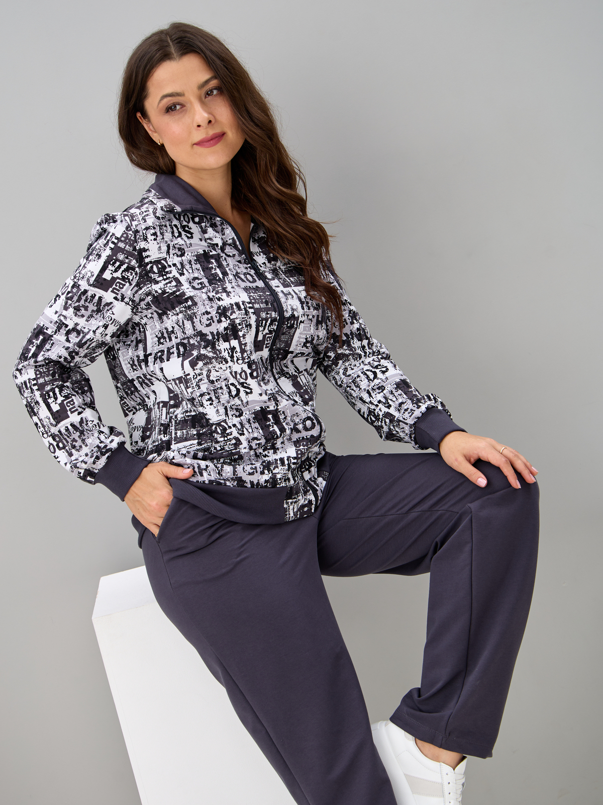 Костюм с брюками КБ-184/белый-антрацитгазета