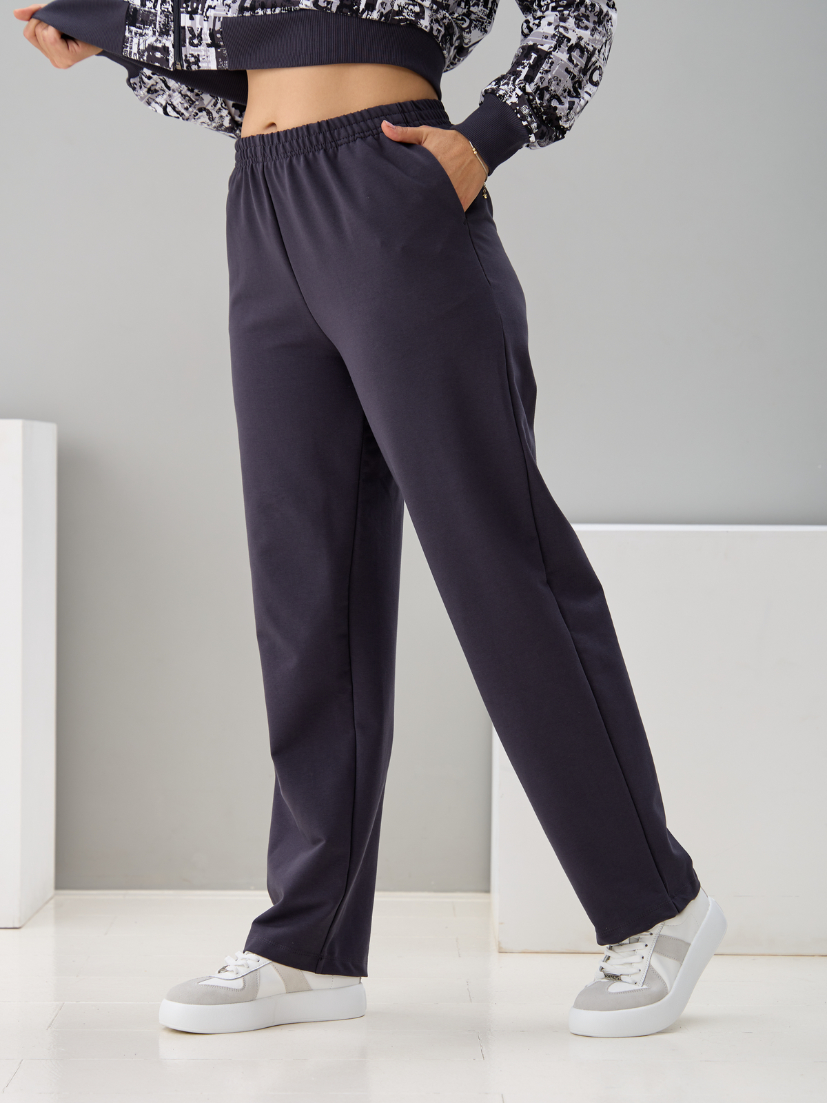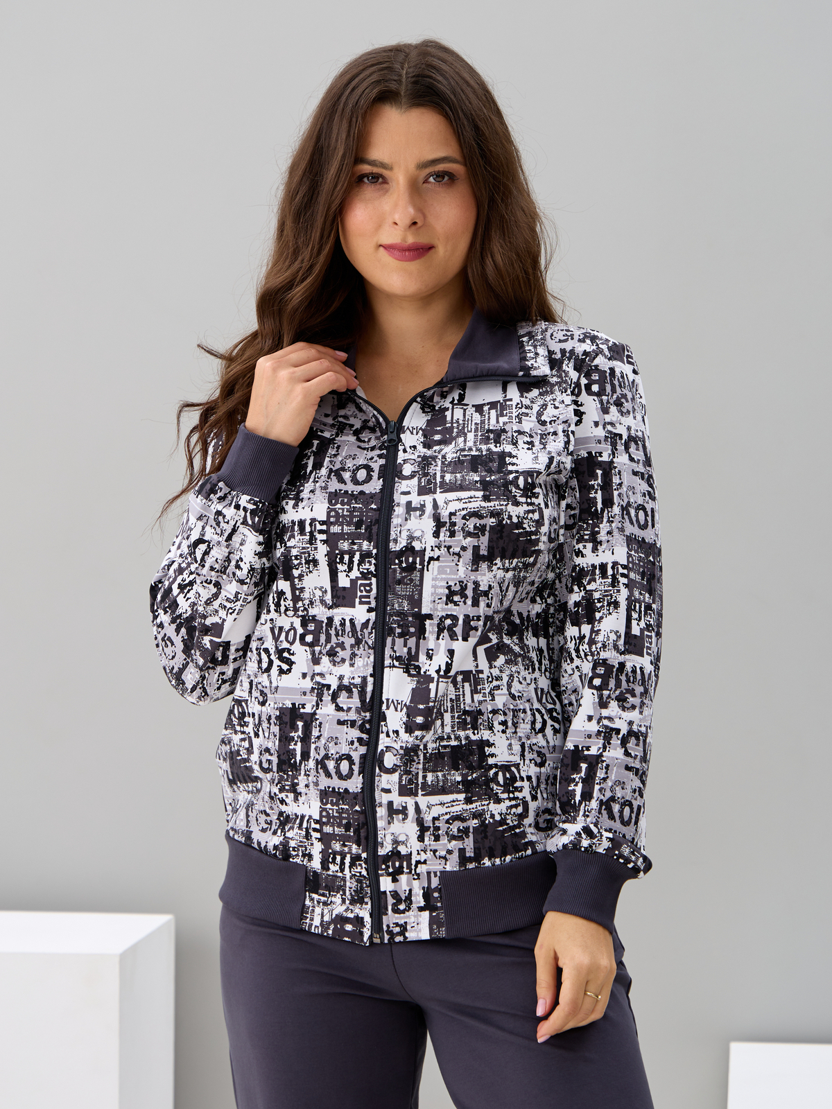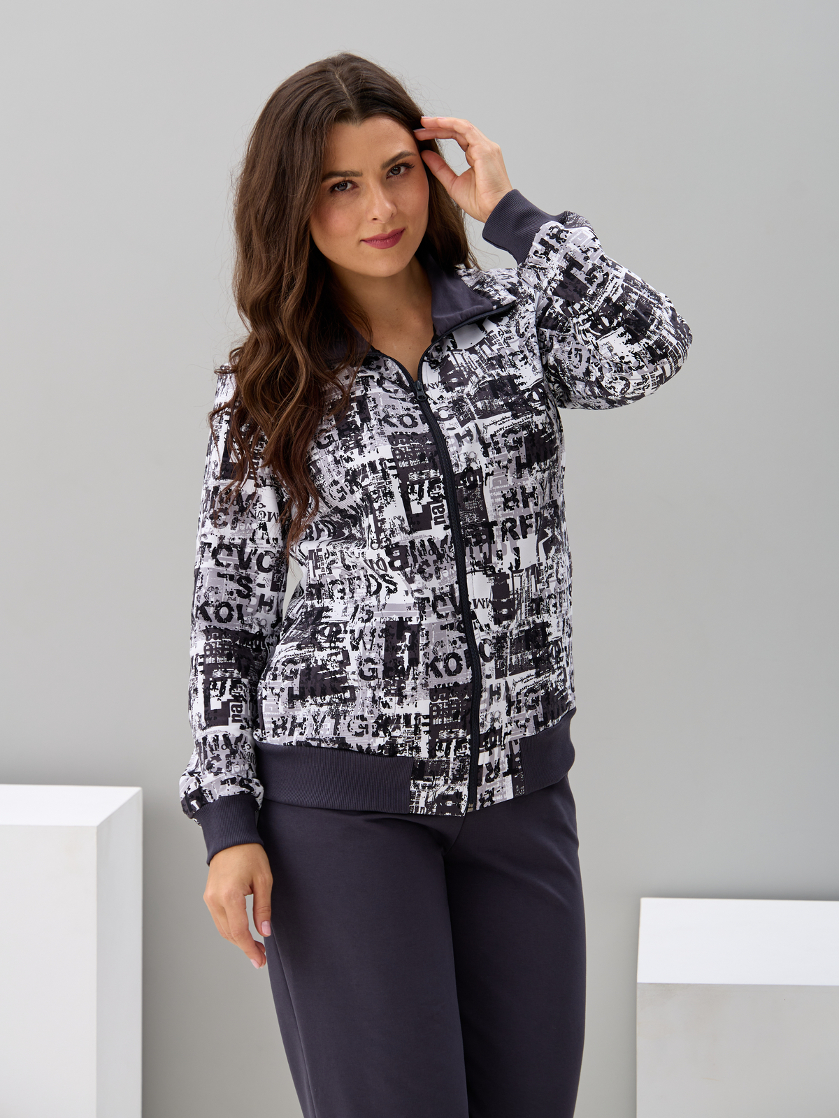 Костюм с брюками КБ-184/белый-антрацитгазета