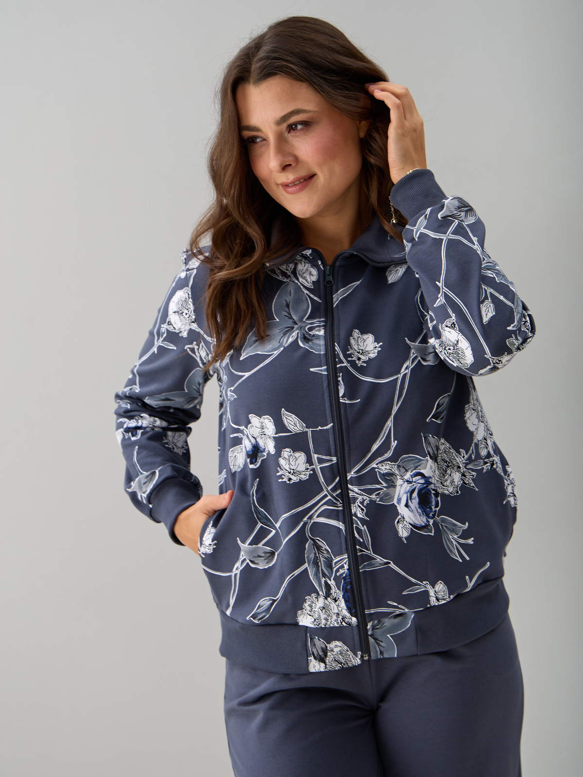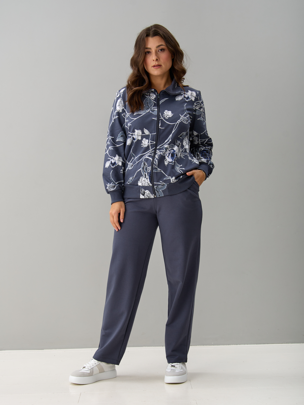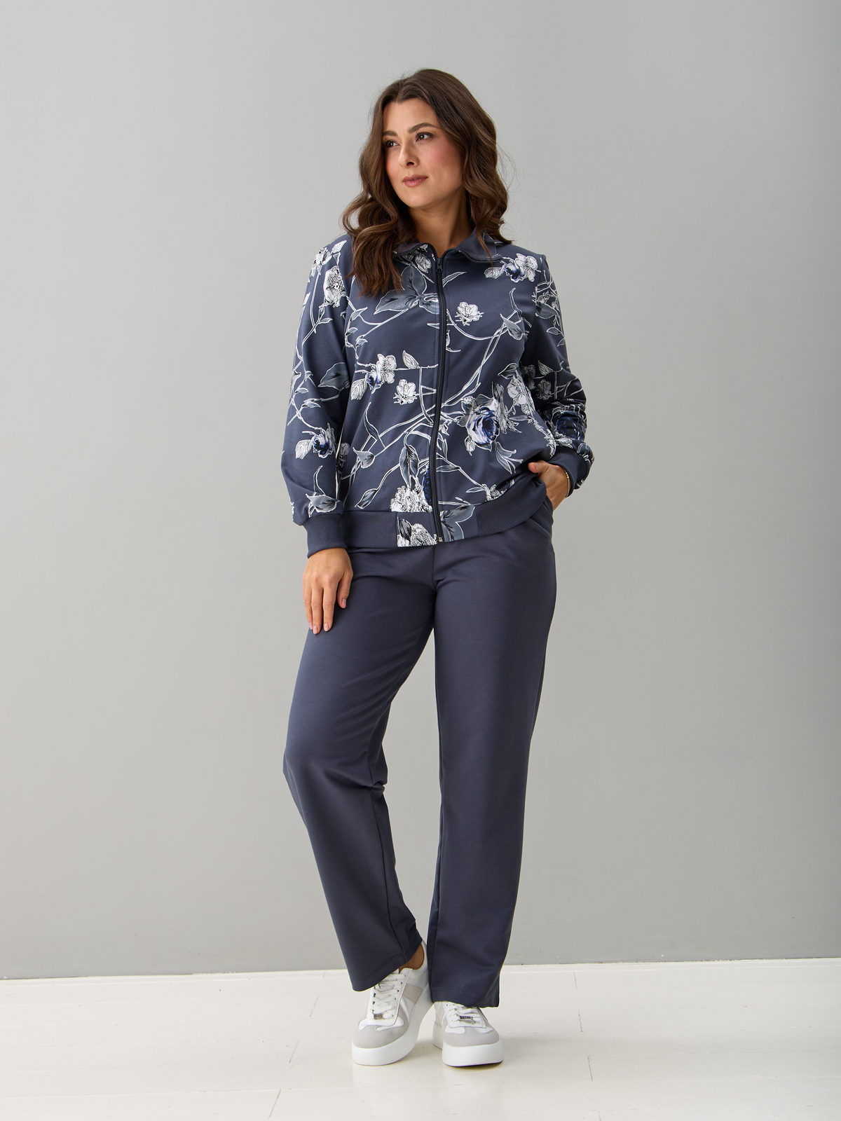 Костюм с брюками КБ-184/графит-плетистаяроза