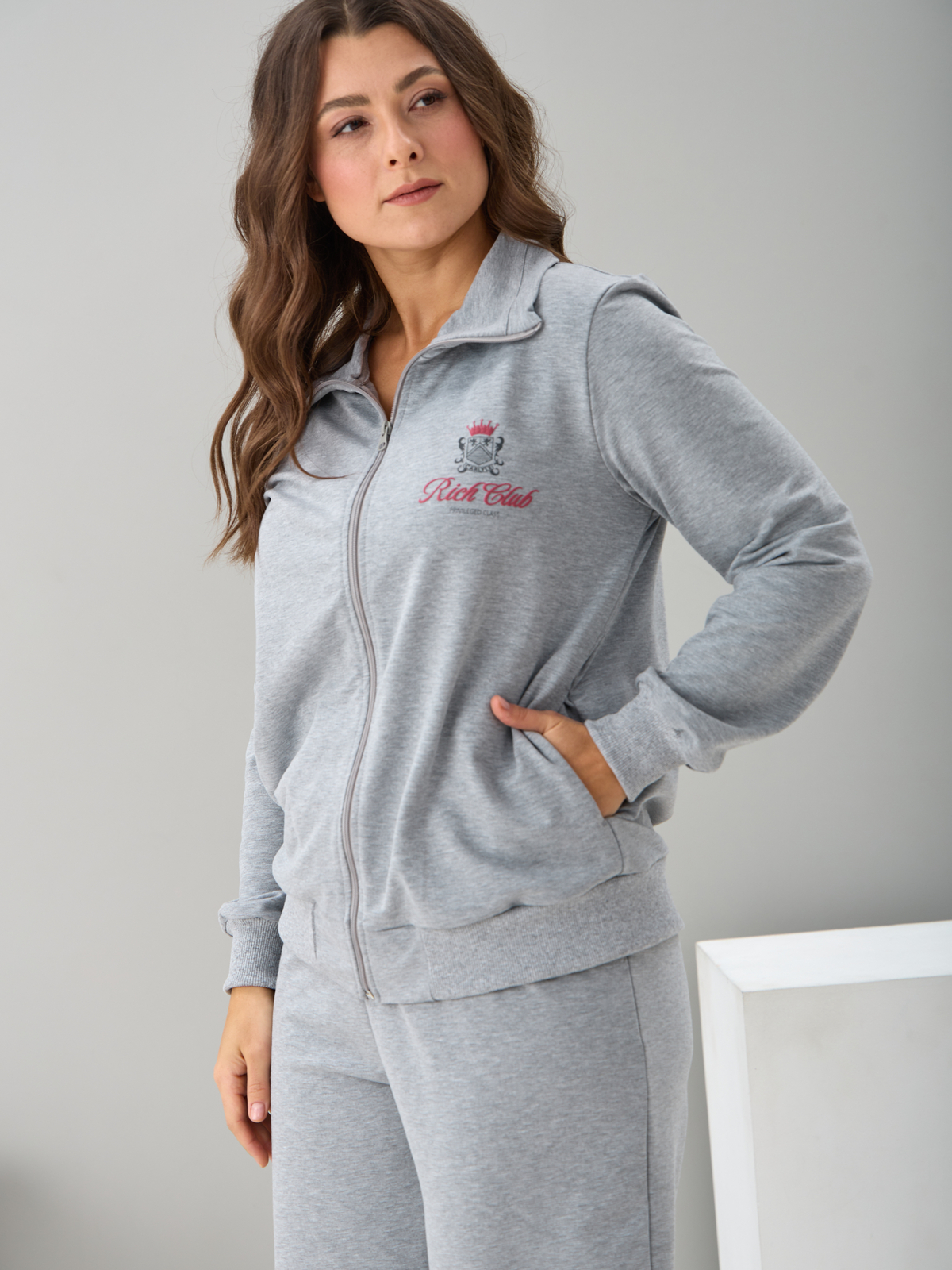 Костюм с брюками КБ-384/серый-меланж-п