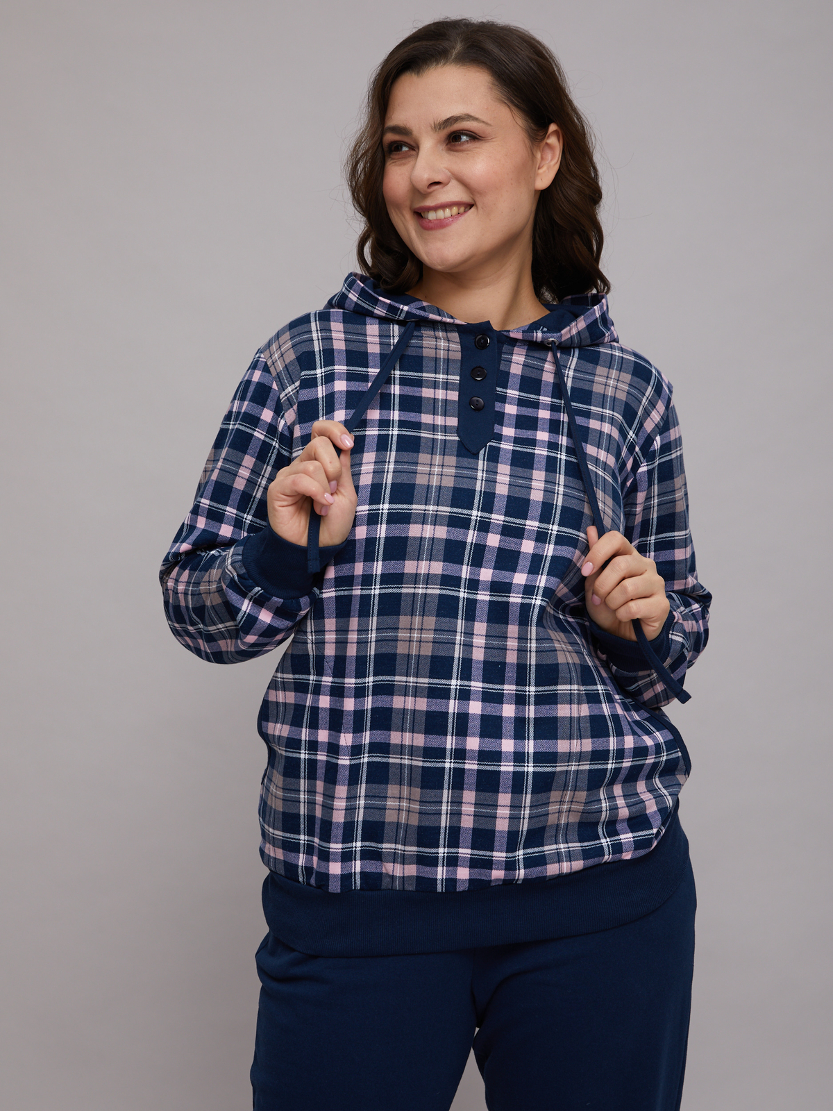 Костюм с брюками КБ-77/синерозовая-клетка