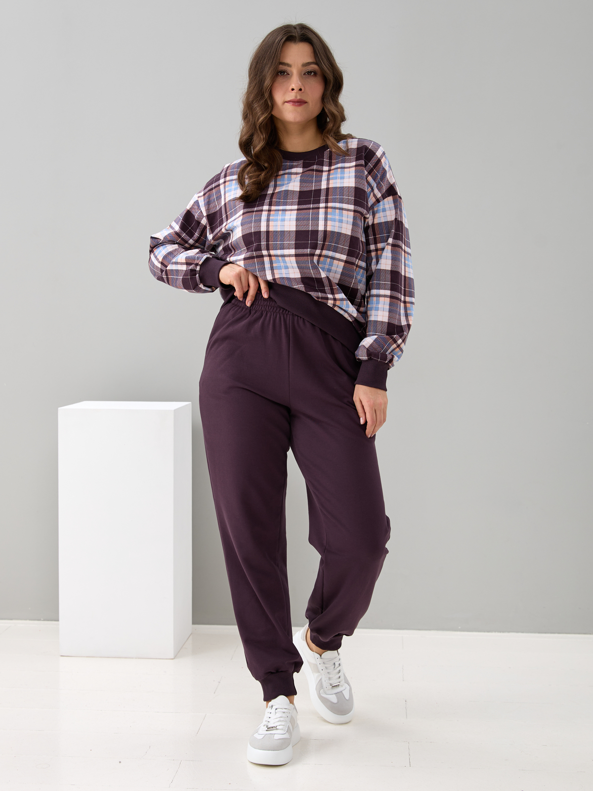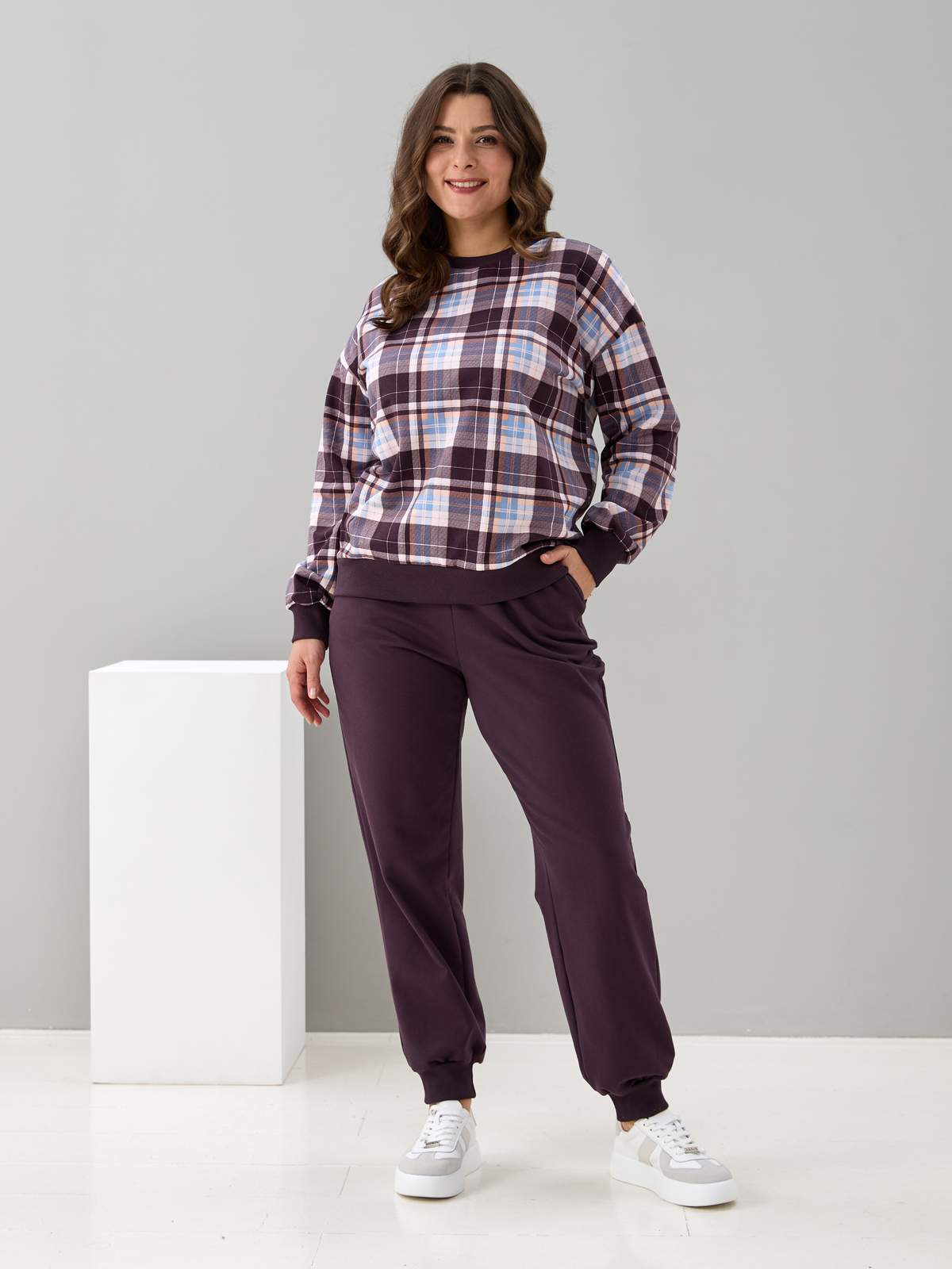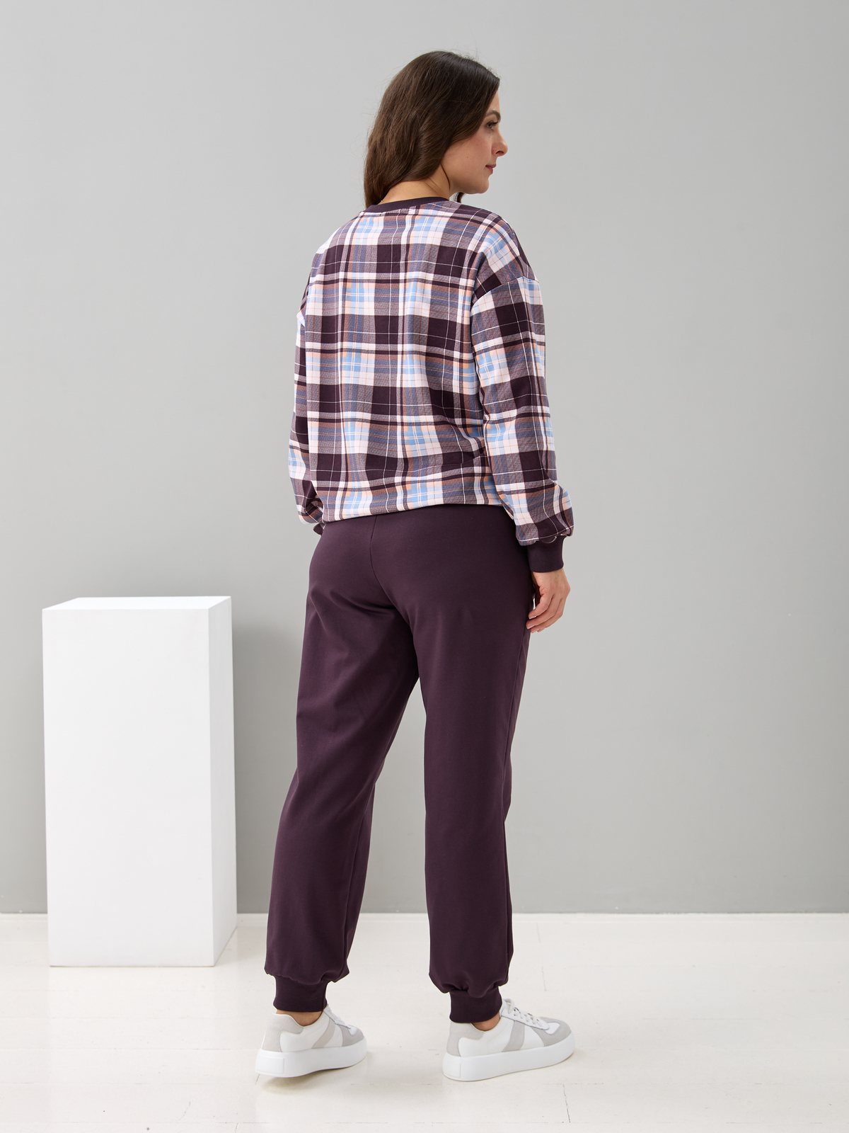 Костюм с брюками КБ-90М/клеткашоколад-бежголубой