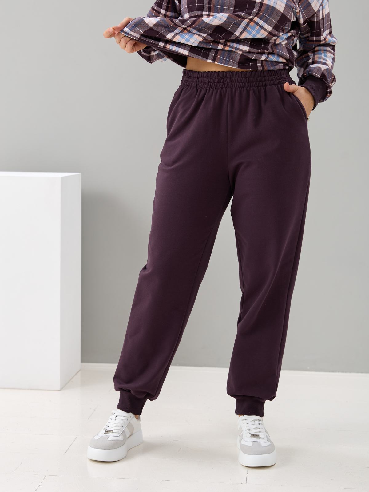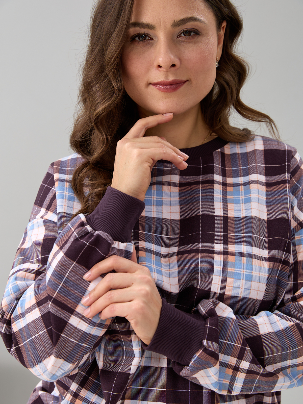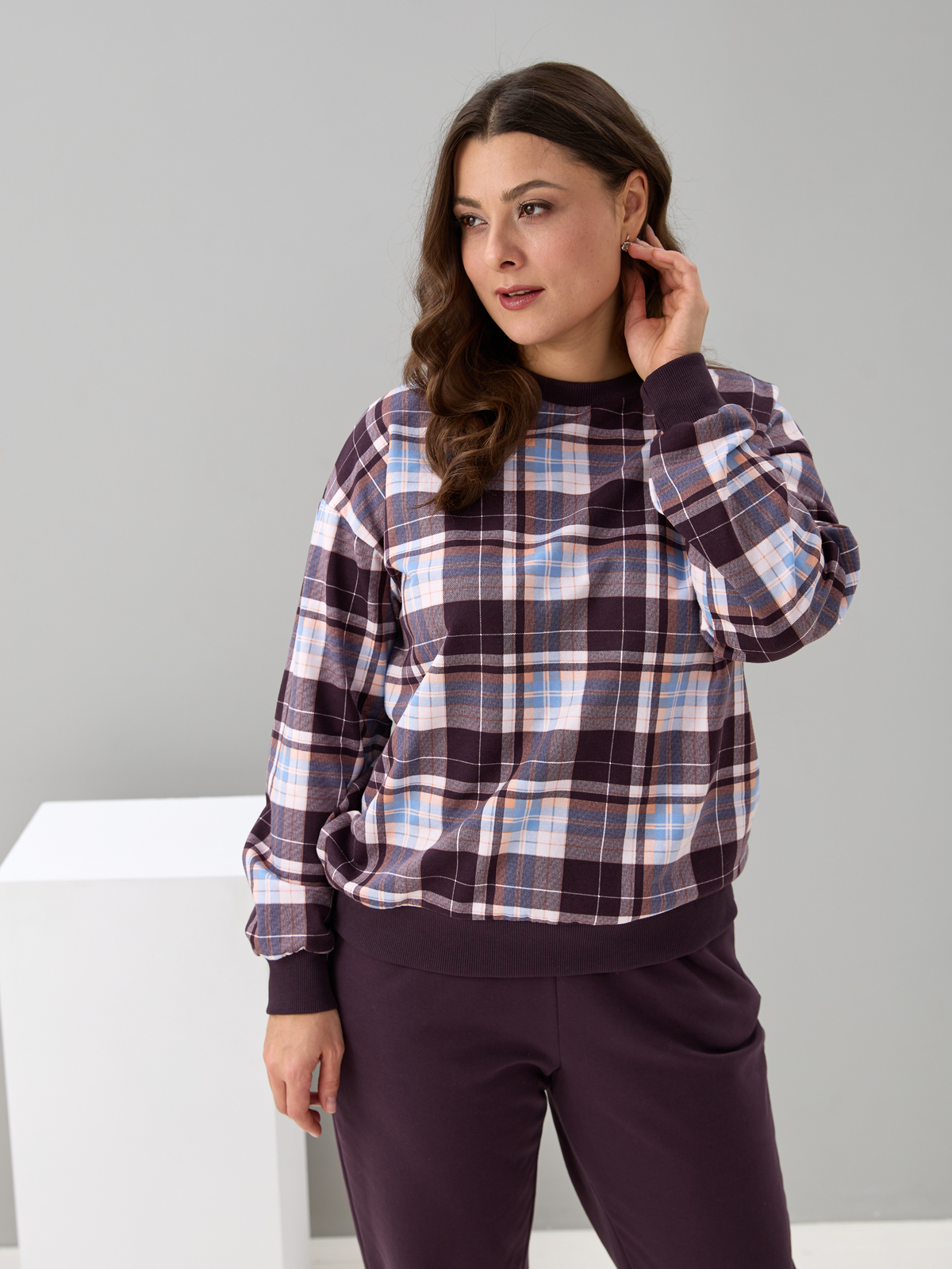 Костюм с брюками КБ-90М/клеткашоколад-бежголубой