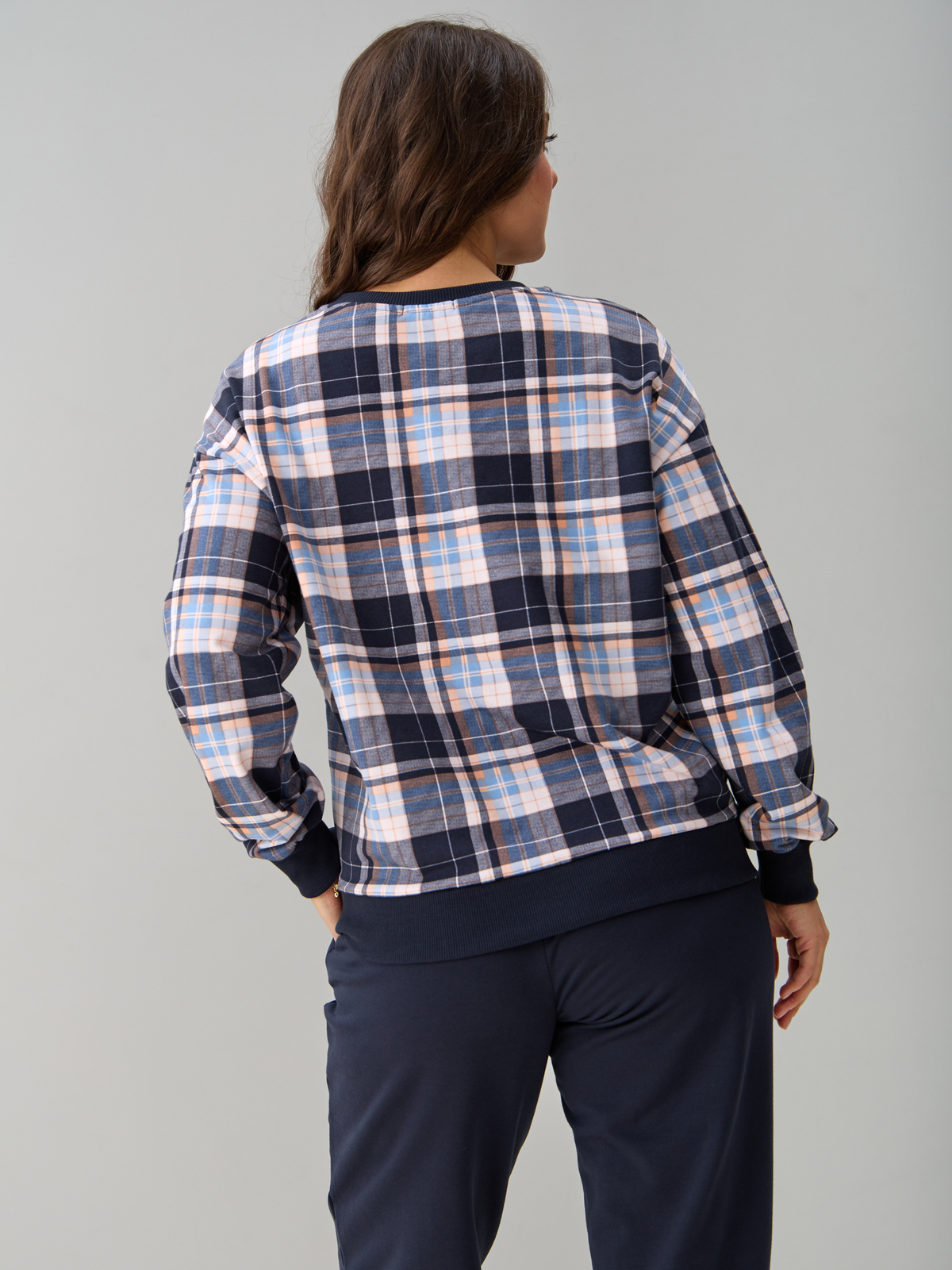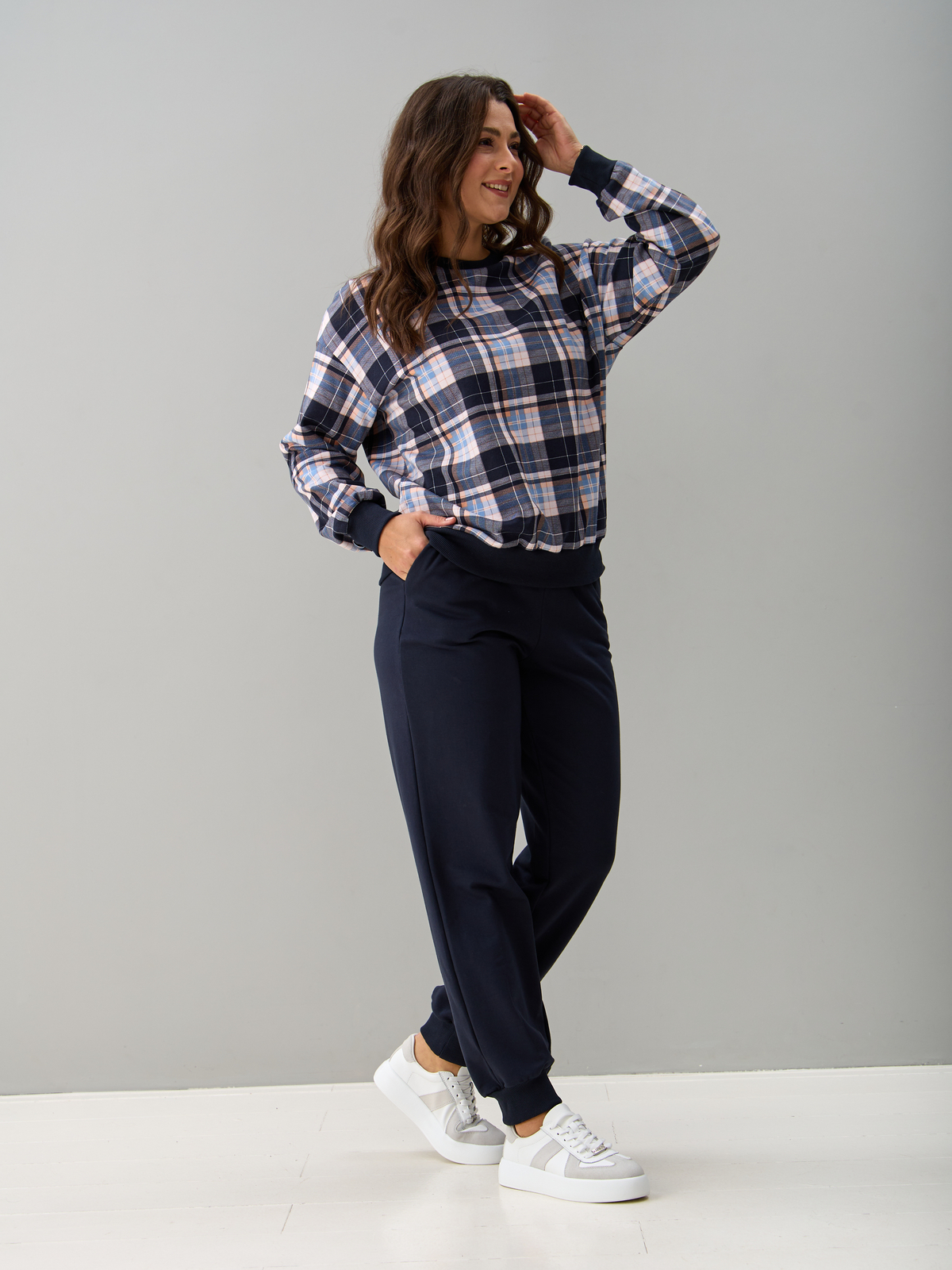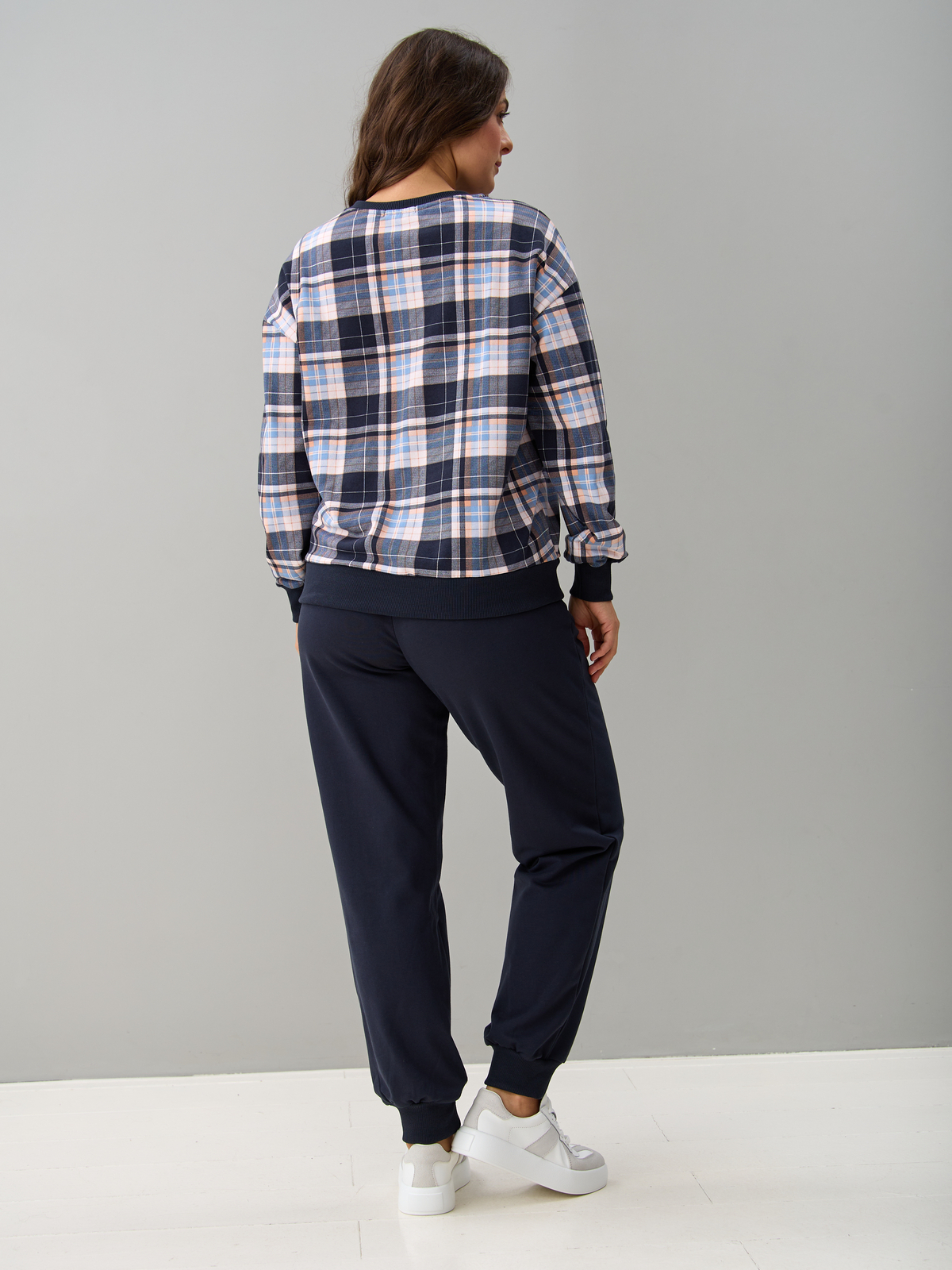 Костюм с брюками КБ-90М/клеткасиний-бежголубой