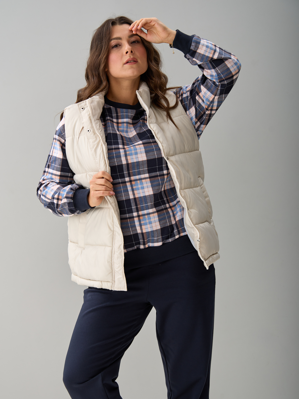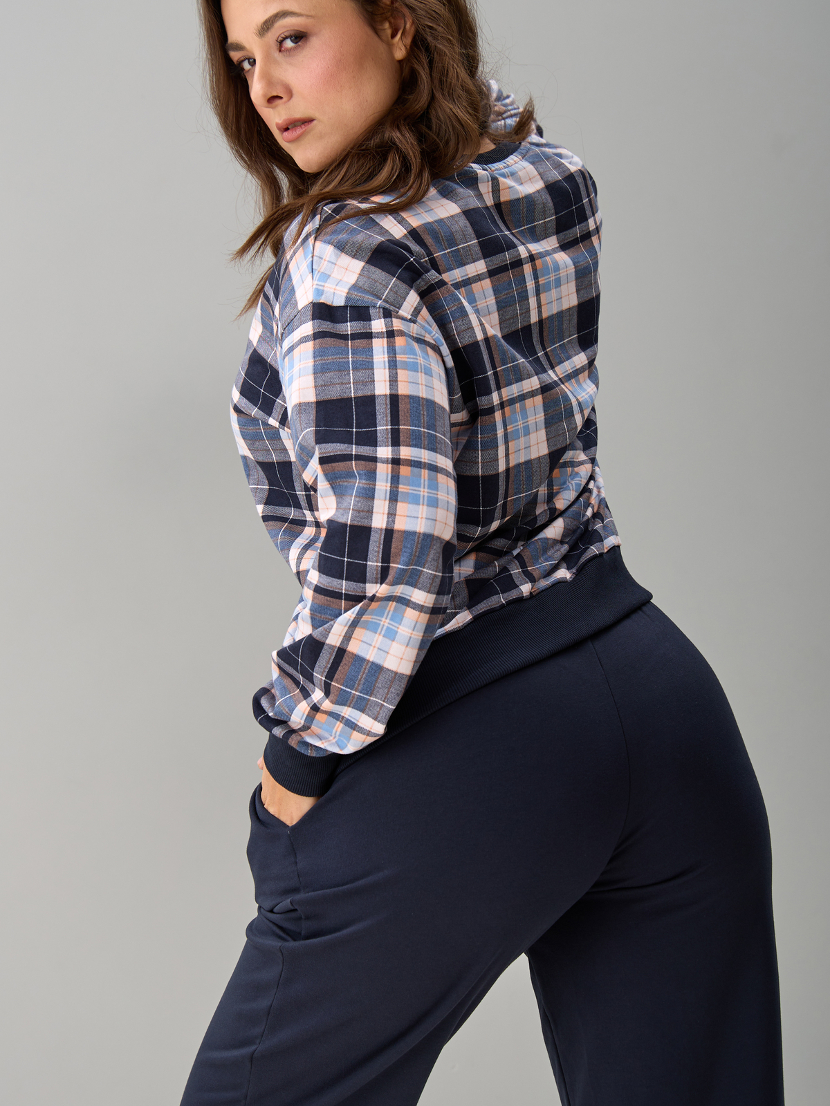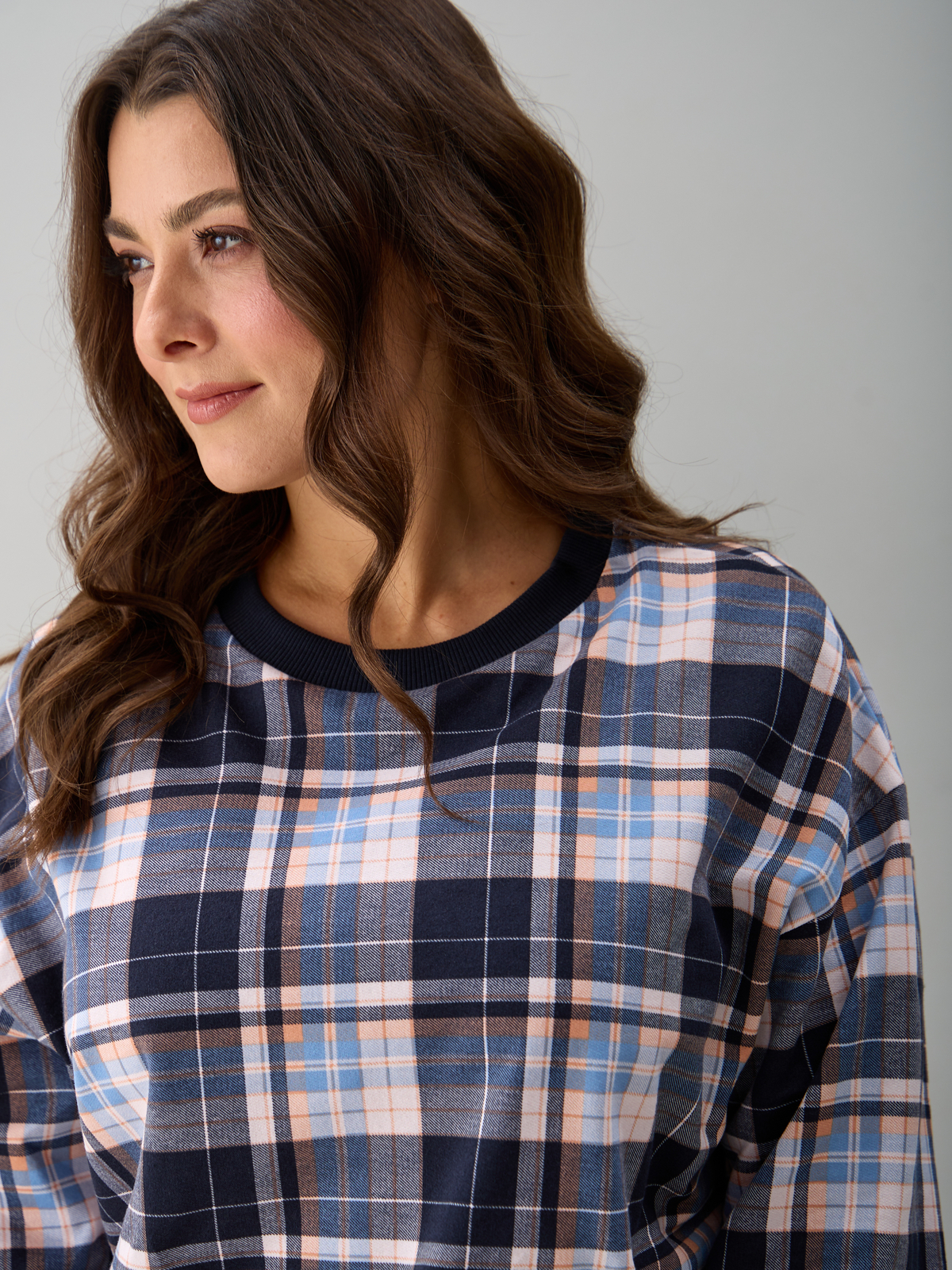 Костюм с брюками КБ-90М/клеткасиний-бежголубой