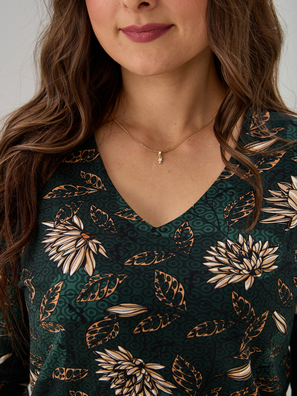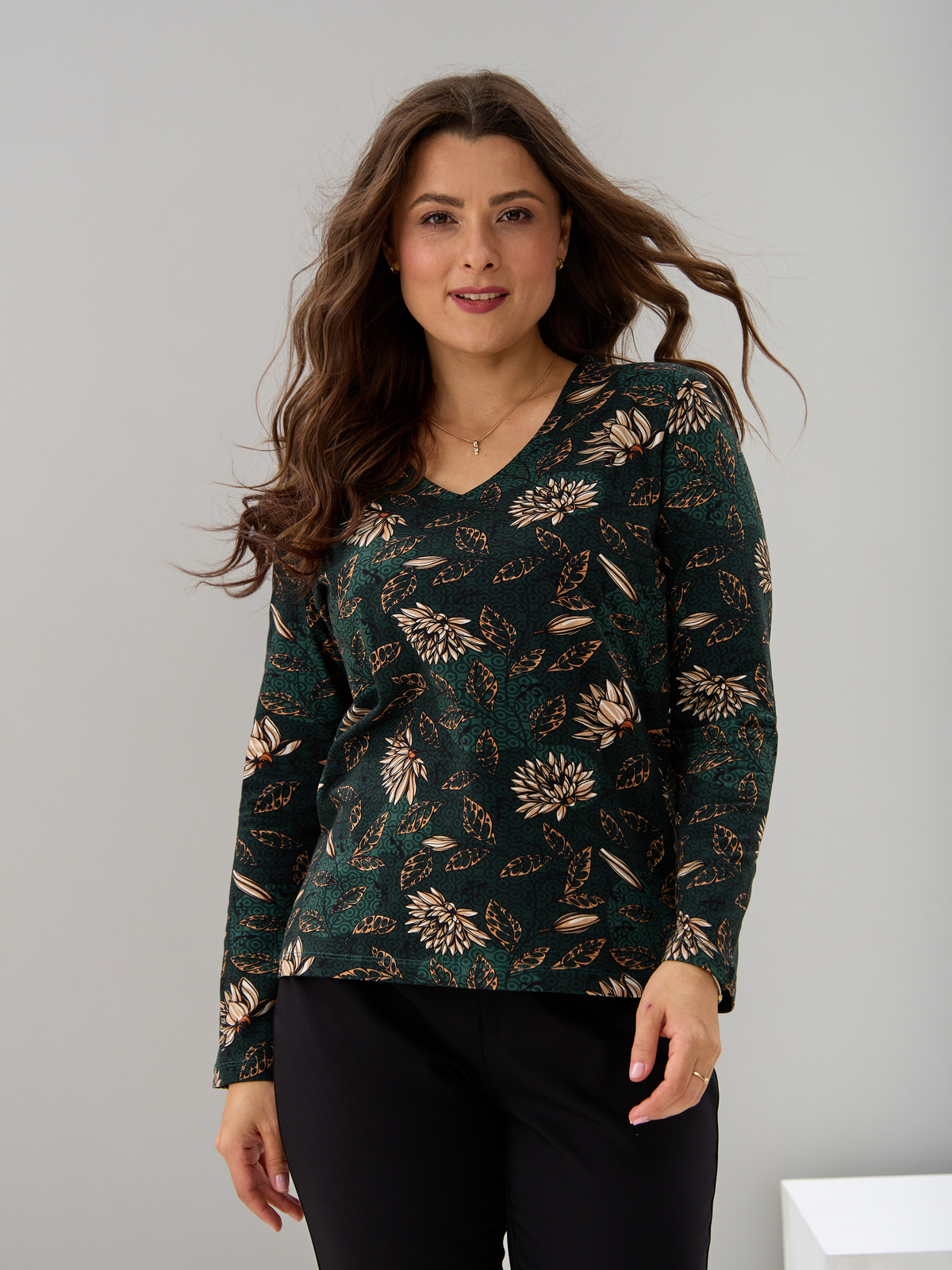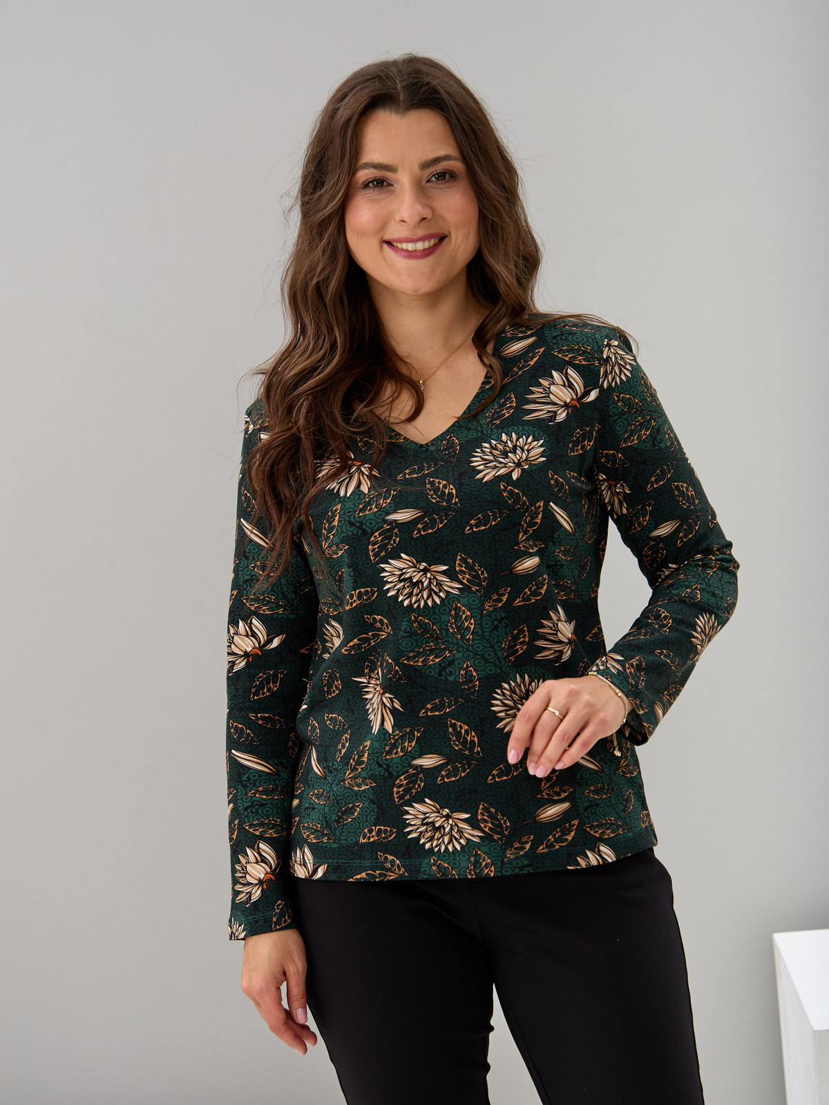 Лонгслив ЛНкл-080/изумрудный-хризантемы