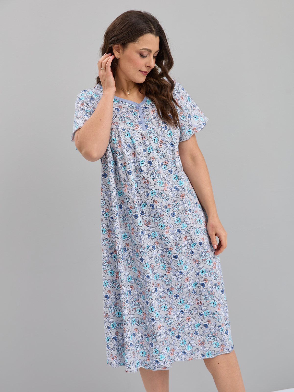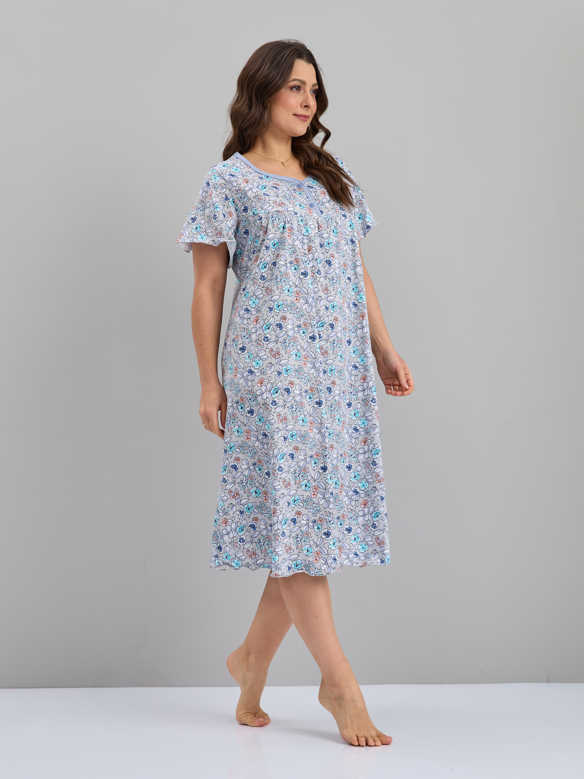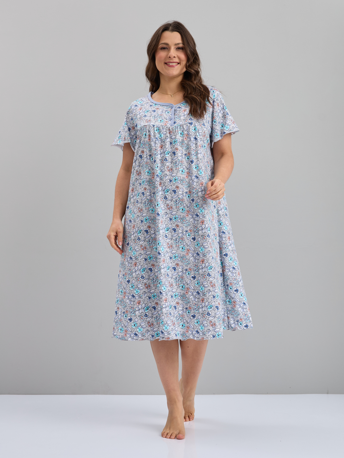 Ночная сорочка С-015/серый-ментолцветы