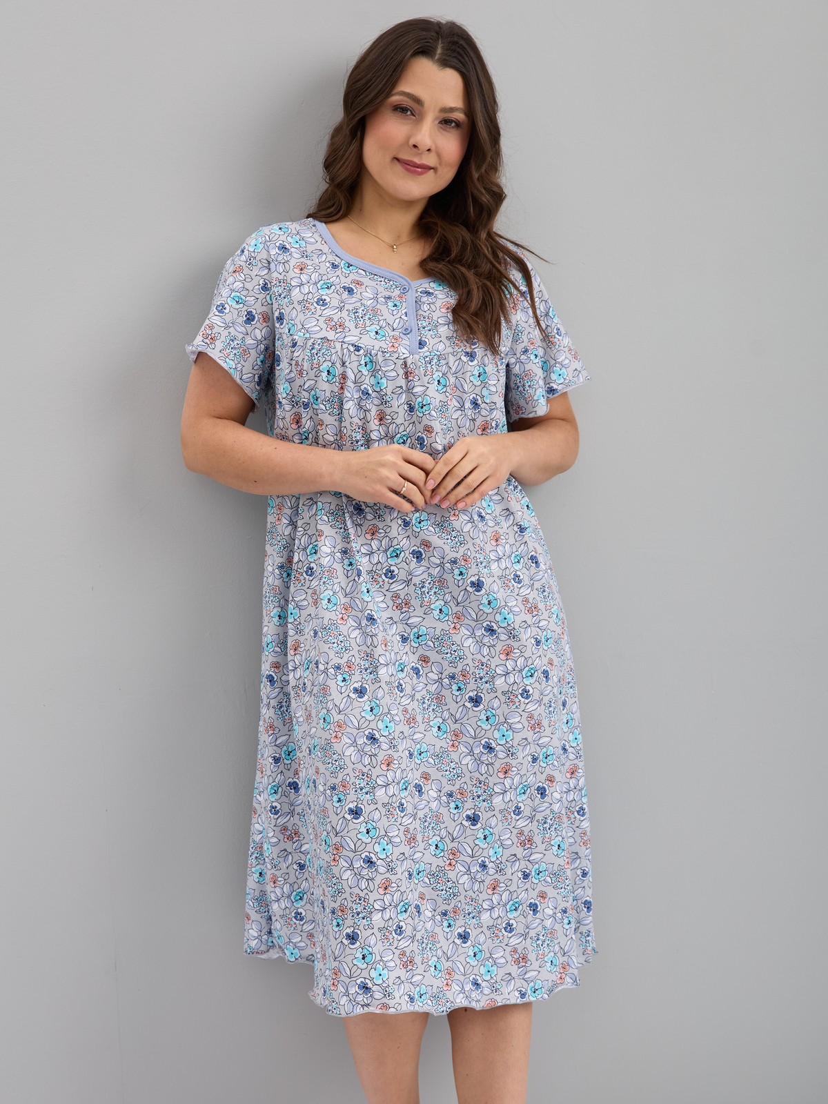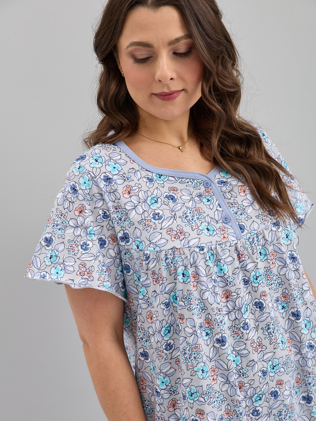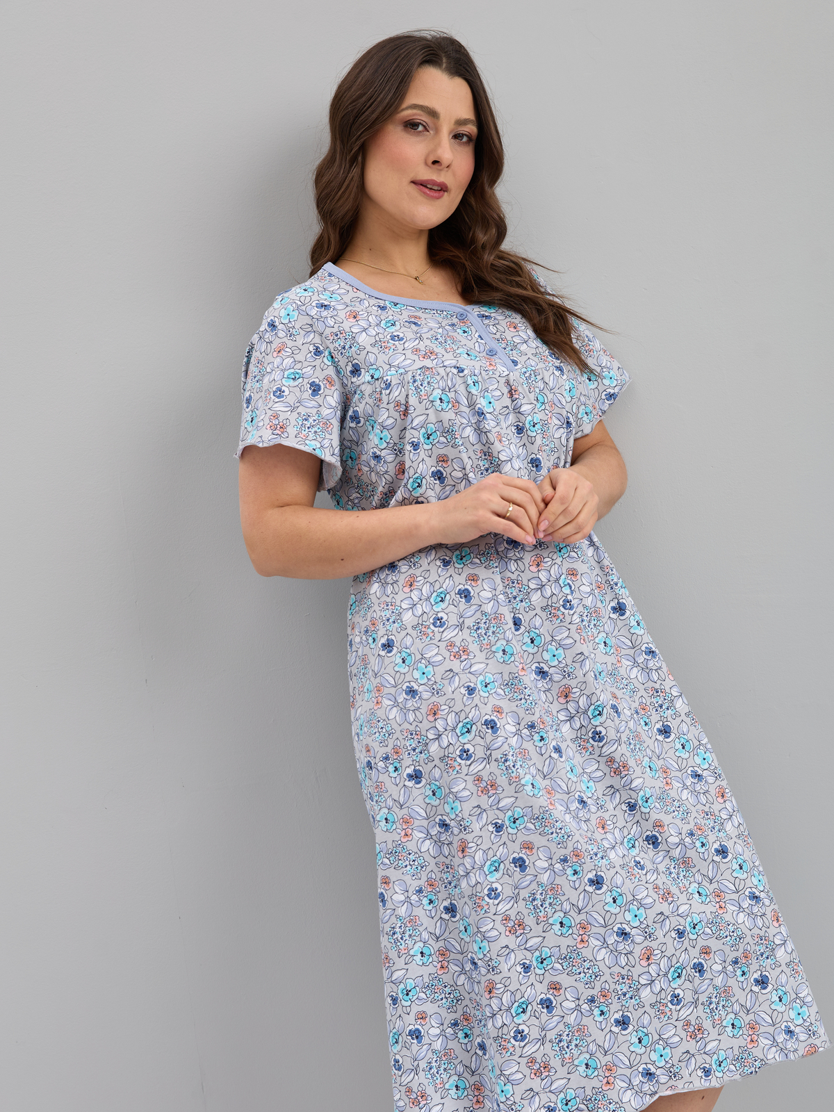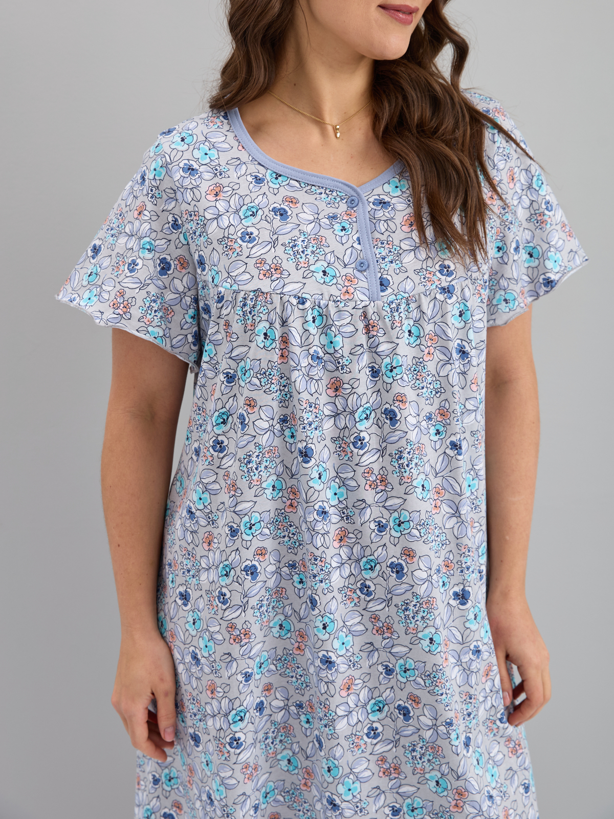 Ночная сорочка С-015/серый-ментолцветы