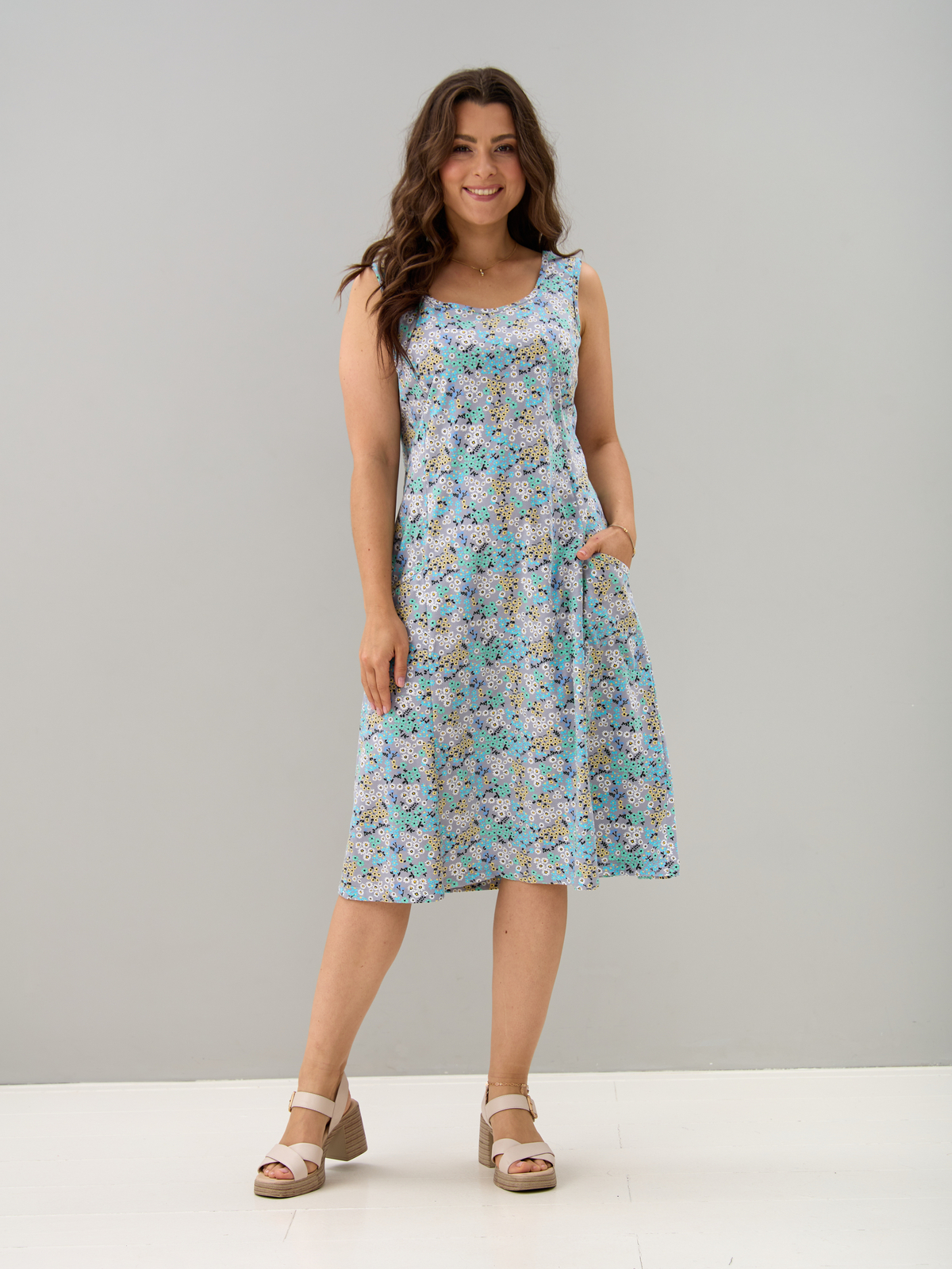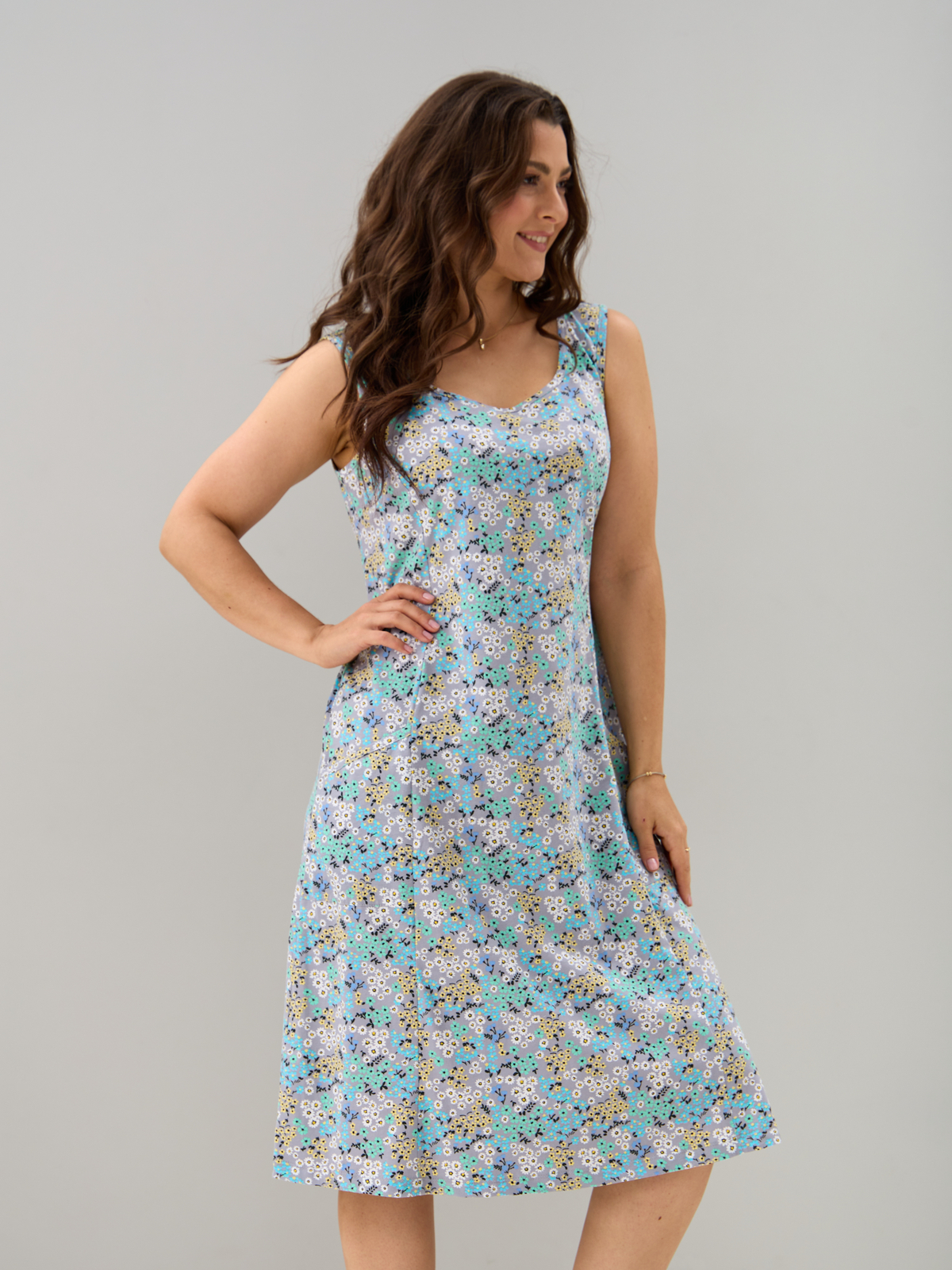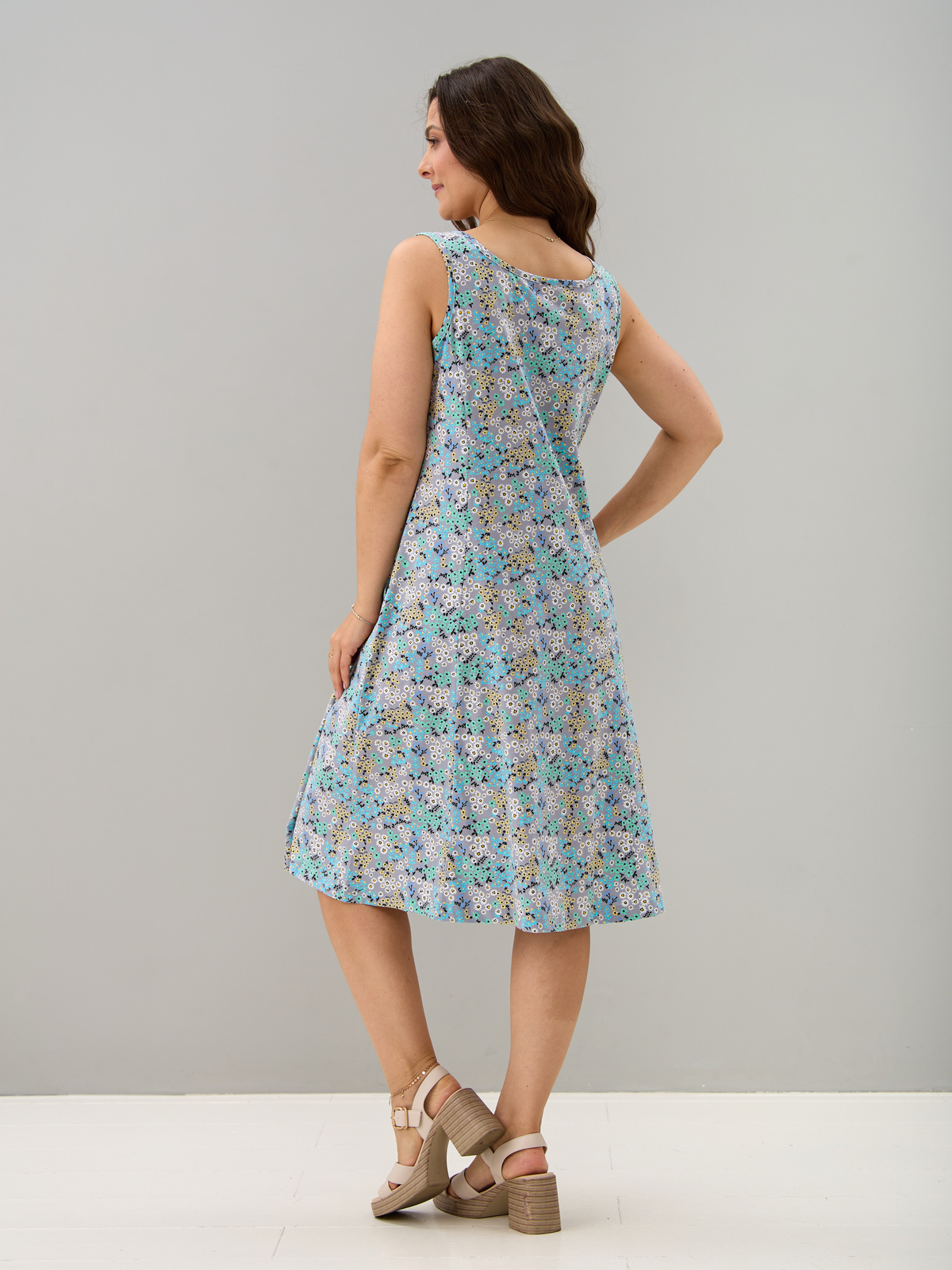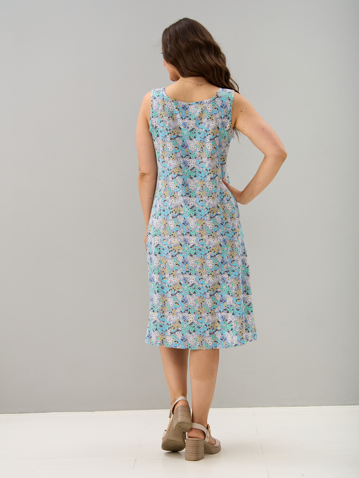 Платье П-012/серый-ромашкинезабудки