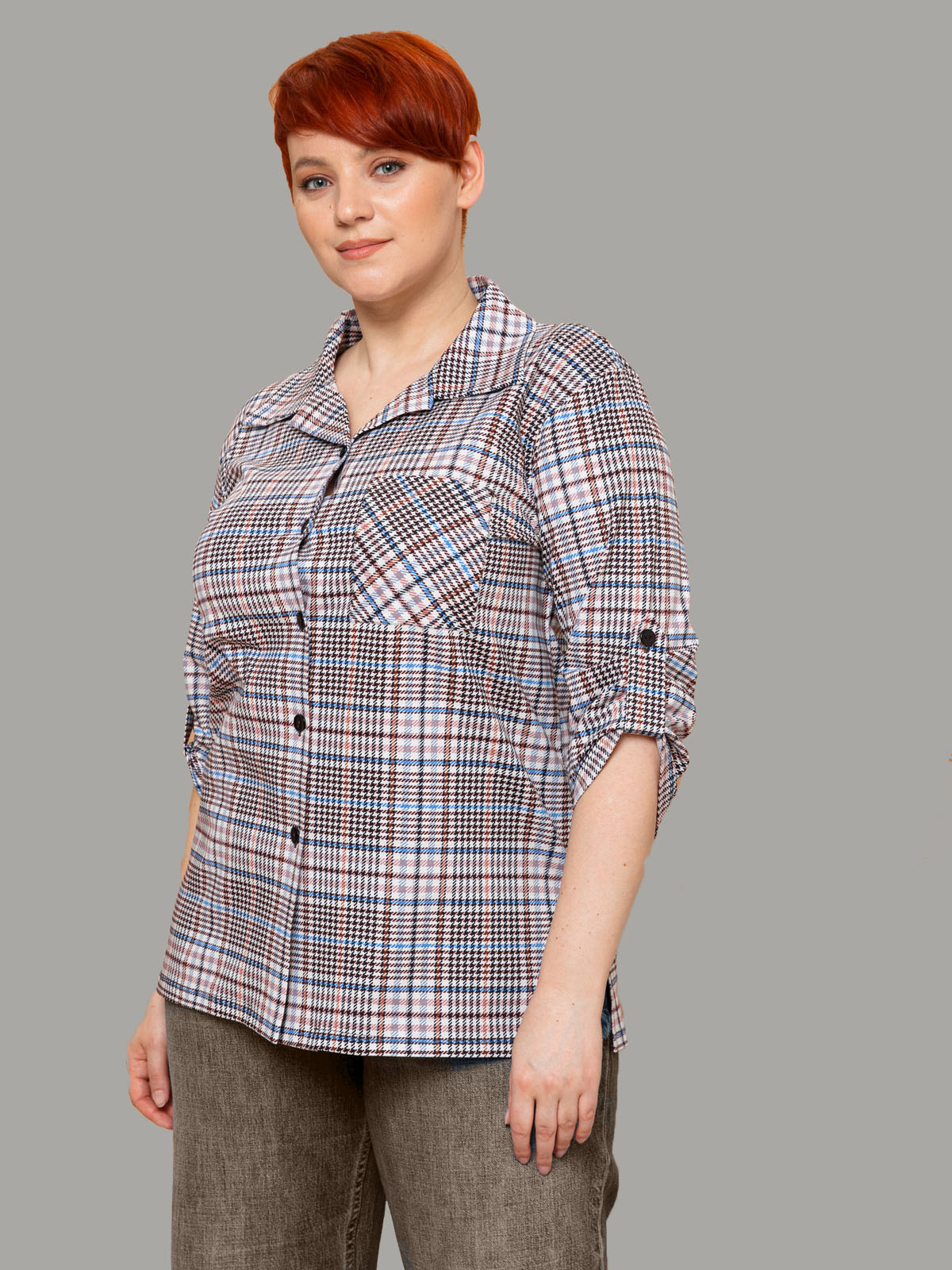 - Рубашка женская повседневная офисная выполнена из 100% хлопка, трикотажного полотна. Такая блузка женская больших размеров в офис будет отлично комбинироваться с юбками, джинсами, штанами и шортами. Рубашка больших размеров для беременных в клетку отделана отложным воротником, к полочке пришита планка на сквозной застежке, у рубашки рукав 3/4. Благодаря своей универсальности Вы можете надеть ее на работу, в гости, на отдыхе, даче и даже дома. Также уникальный крой позволит Вам выбрать свой идеальный размер, который выделит все ваши достоинства. Такая блузка женская больших размеров повседневная будет отличным подарком для девушки, жены, бабушки, мамы, дочки, подруги, коллеги на новый год, 8 марта, день рождения. Все товары бренда АЛТЕКС отшиты на собственном производстве в России. Благодаря отработанным лекалам и качественному пошиву наши изделия добротные и прекрасно сидят на любой фигуре!