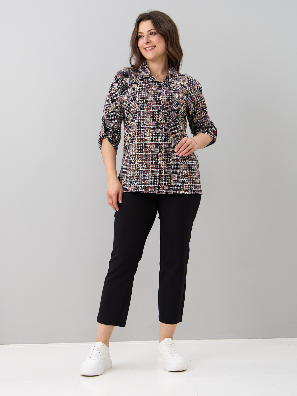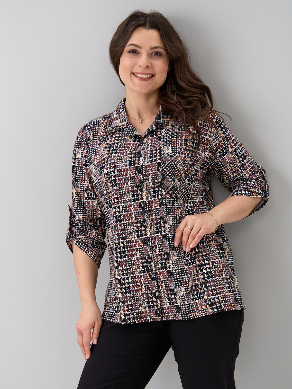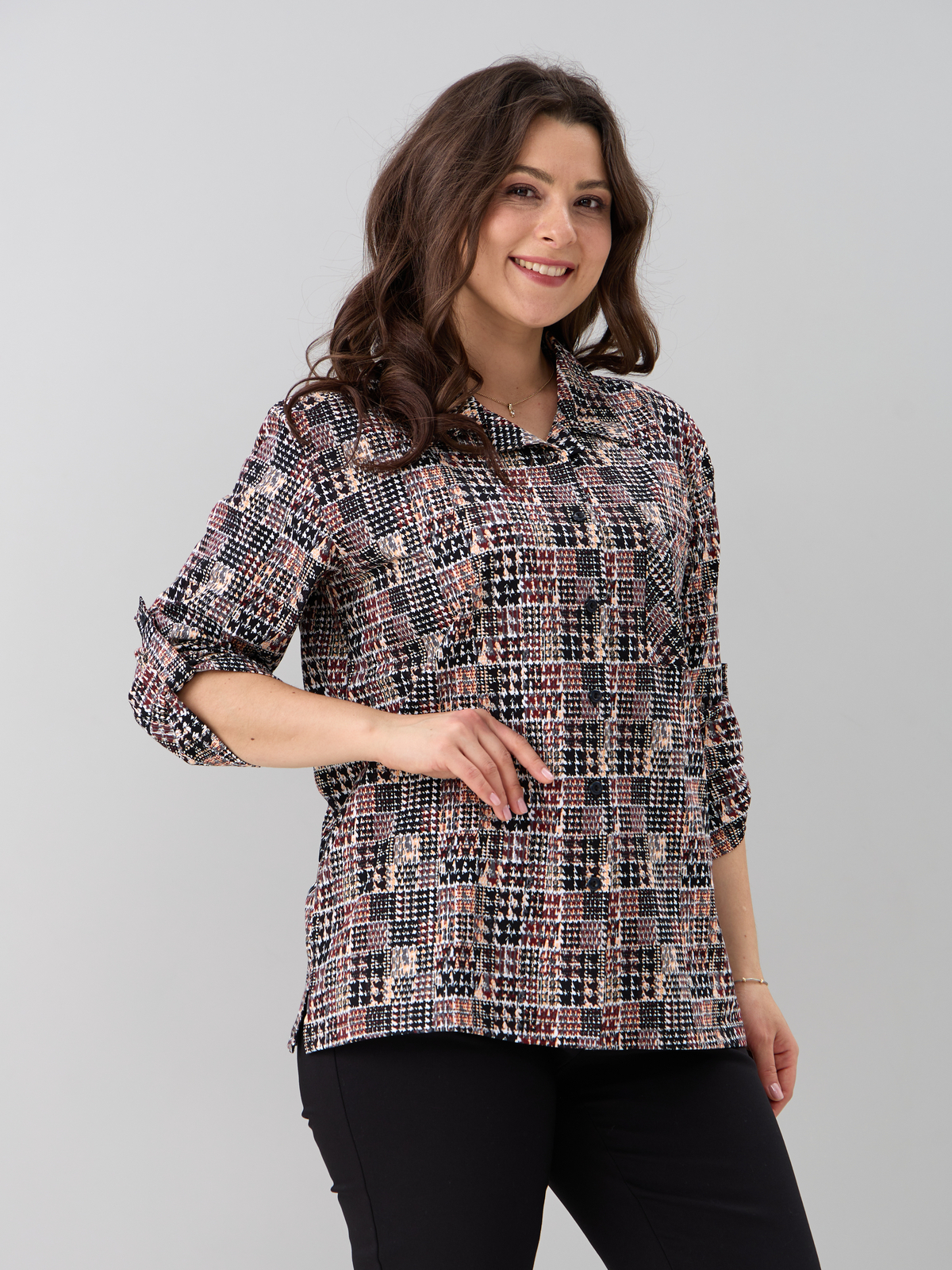 - Рубашка женская повседневная офисная выполнена из 100% хлопка, трикотажного полотна. Такая блузка женская больших размеров в офис будет отлично комбинироваться с юбками, джинсами, штанами и шортами. Рубашка больших размеров для беременных в клетку отделана отложным воротником, к полочке пришита планка на сквозной застежке, у рубашки рукав 3/4. Благодаря своей универсальности Вы можете надеть ее на работу, в гости, на отдыхе, даче и даже дома. Также уникальный крой позволит Вам выбрать свой идеальный размер, который выделит все ваши достоинства. Такая блузка женская больших размеров повседневная будет отличным подарком для девушки, жены, бабушки, мамы, дочки, подруги, коллеги на новый год, 8 марта, день рождения. Все товары бренда АЛТЕКС отшиты на собственном производстве в России. Благодаря отработанным лекалам и качественному пошиву наши изделия добротные и прекрасно сидят на любой фигуре!
