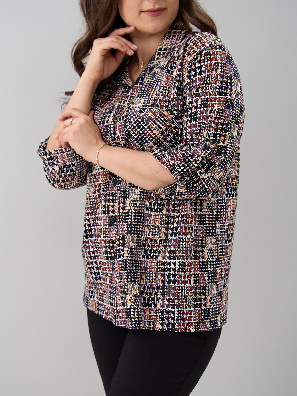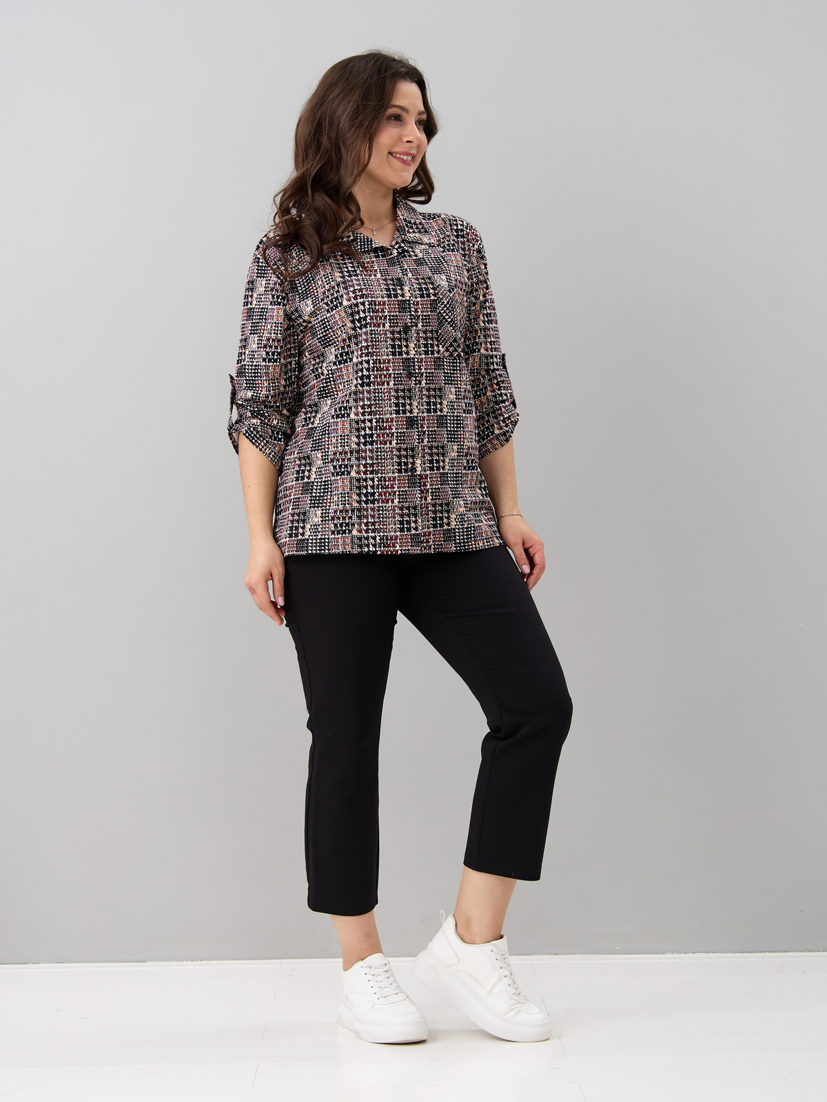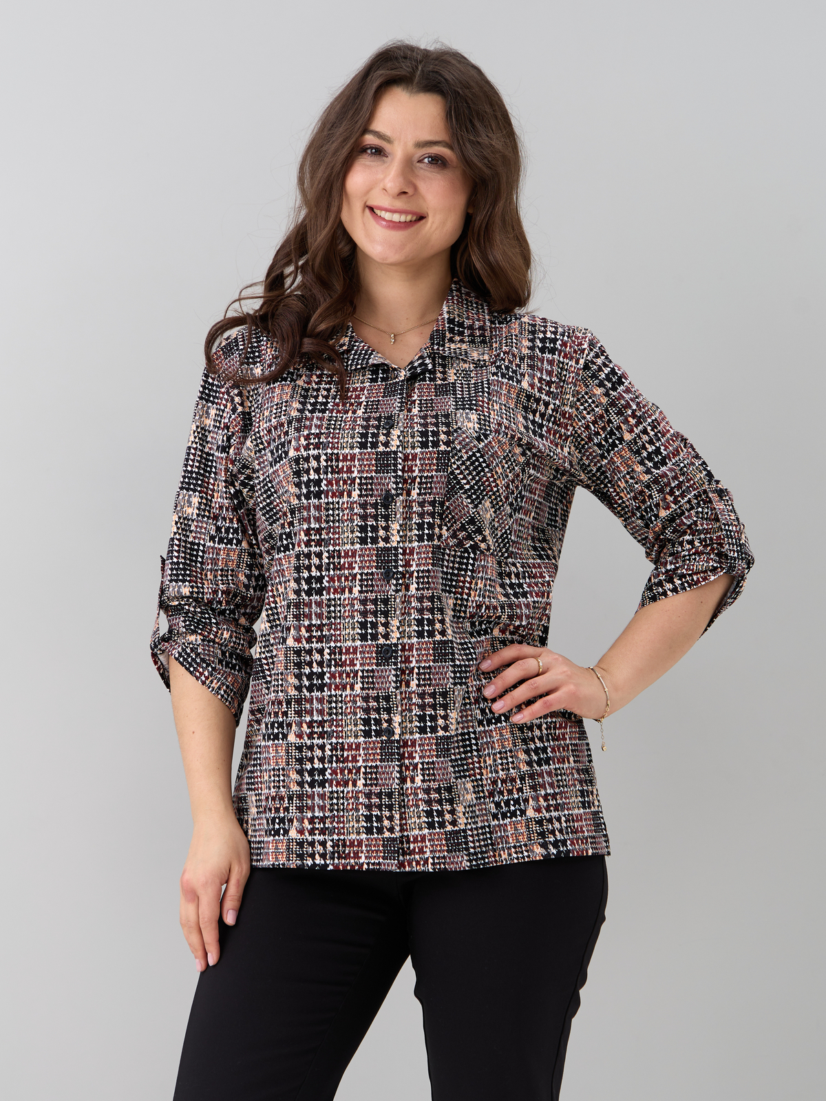 - Рубашка женская повседневная офисная выполнена из 100% хлопка, трикотажного полотна. Такая блузка женская больших размеров в офис будет отлично комбинироваться с юбками, джинсами, штанами и шортами. Рубашка больших размеров для беременных в клетку отделана отложным воротником, к полочке пришита планка на сквозной застежке, у рубашки рукав 3/4. Благодаря своей универсальности Вы можете надеть ее на работу, в гости, на отдыхе, даче и даже дома. Также уникальный крой позволит Вам выбрать свой идеальный размер, который выделит все ваши достоинства. Такая блузка женская больших размеров повседневная будет отличным подарком для девушки, жены, бабушки, мамы, дочки, подруги, коллеги на новый год, 8 марта, день рождения. Все товары бренда АЛТЕКС отшиты на собственном производстве в России. Благодаря отработанным лекалам и качественному пошиву наши изделия добротные и прекрасно сидят на любой фигуре!