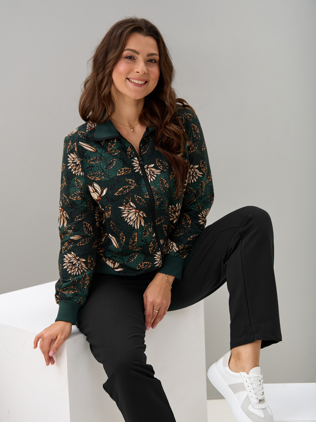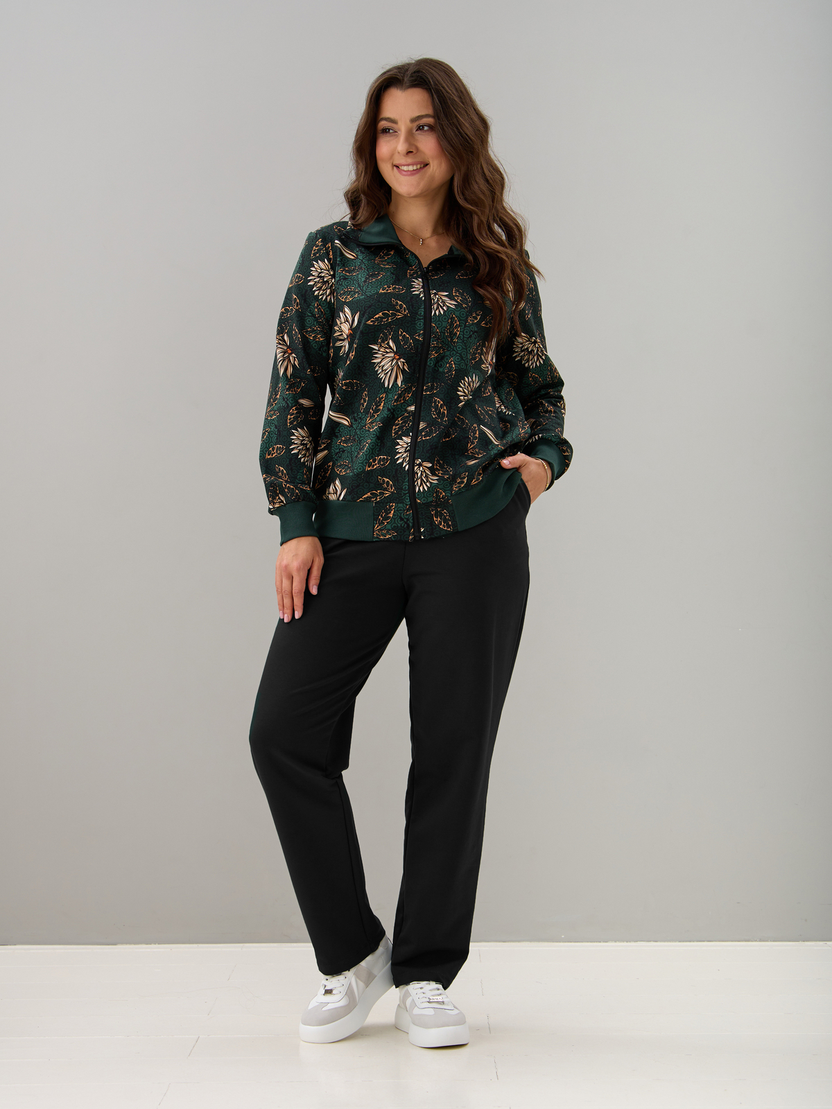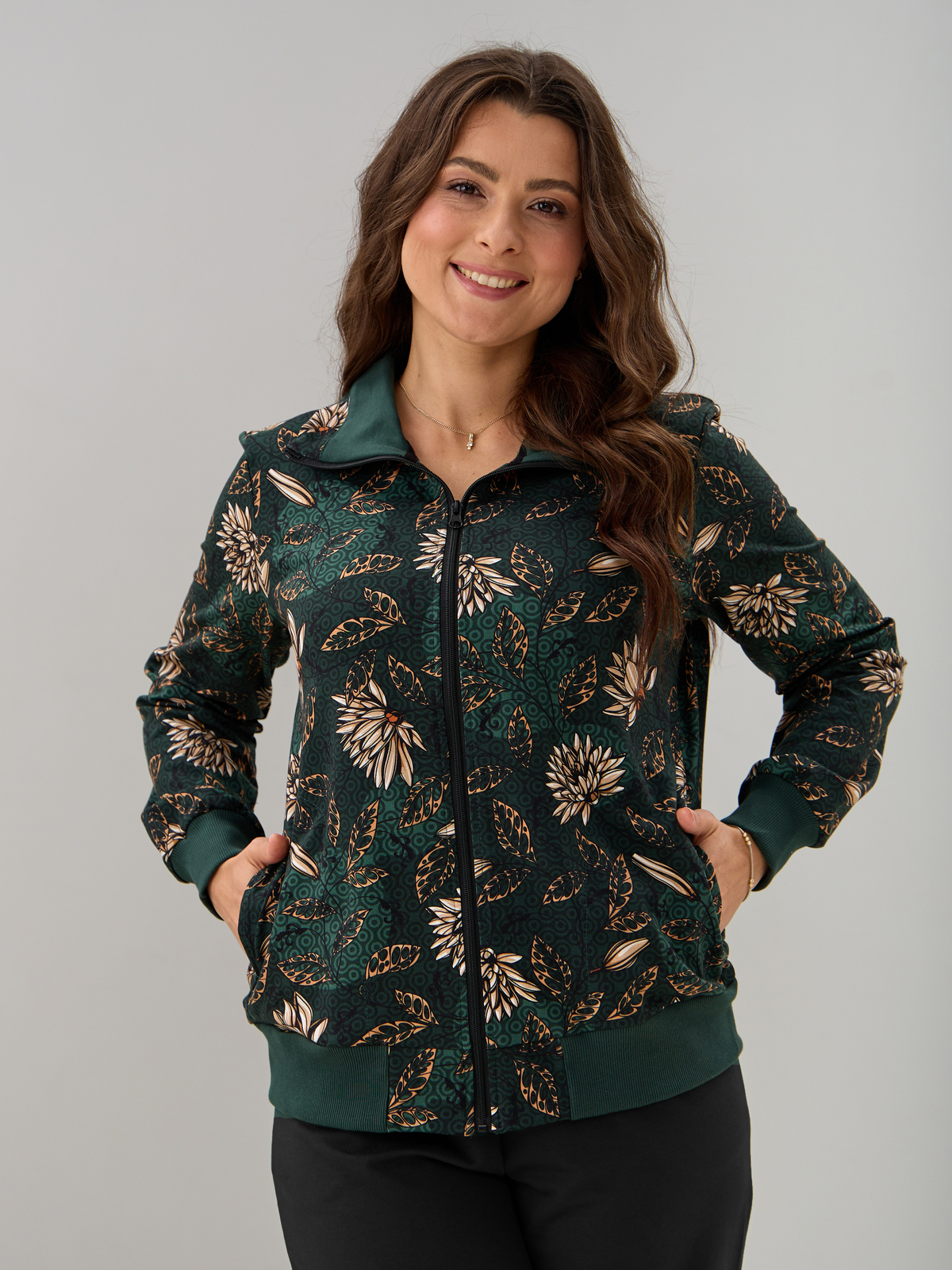 Толстовка К-184/изумрудный-хризантемы
