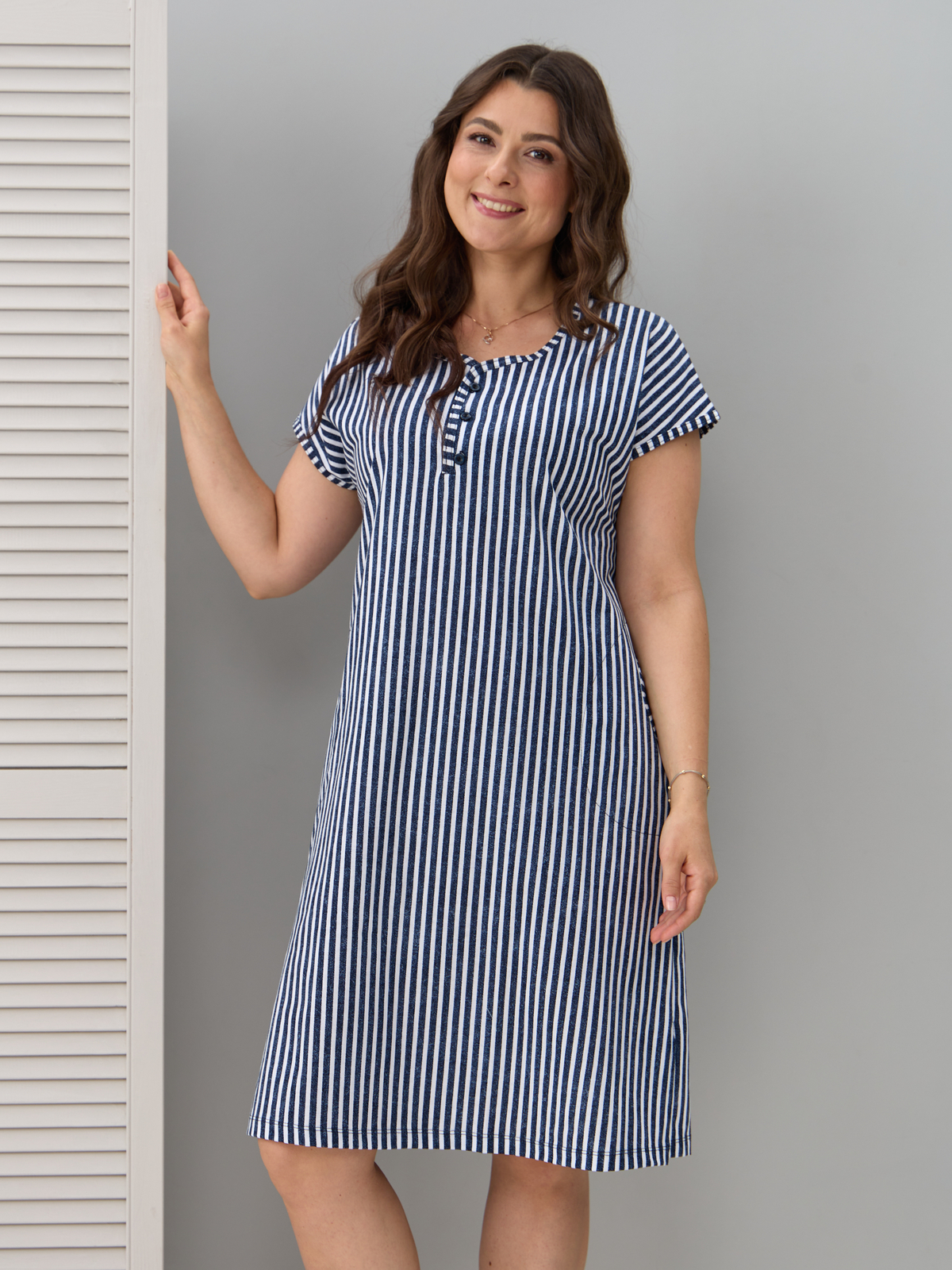 - Туника женская трикотажная хлопок выполнена из 100% хлопка. Модель с короткими рукавами и боковыми карманами. Горловина отделана бейкой и дополнена планкой на пуговицах, карманы также отделаны бейкой. Благодаря оптимальной длине и свободному крою в этой тунике будет комфортно и удобно в течение дня. Стильная и практичная туника женская больших размеров для дома и отдыха. Размерный ряд модели включает большие размеры. Мягкий трикотаж легко подчеркнёт линию талии и скроет любые недостатки. Платье женское домашнее больших размеров в роддом